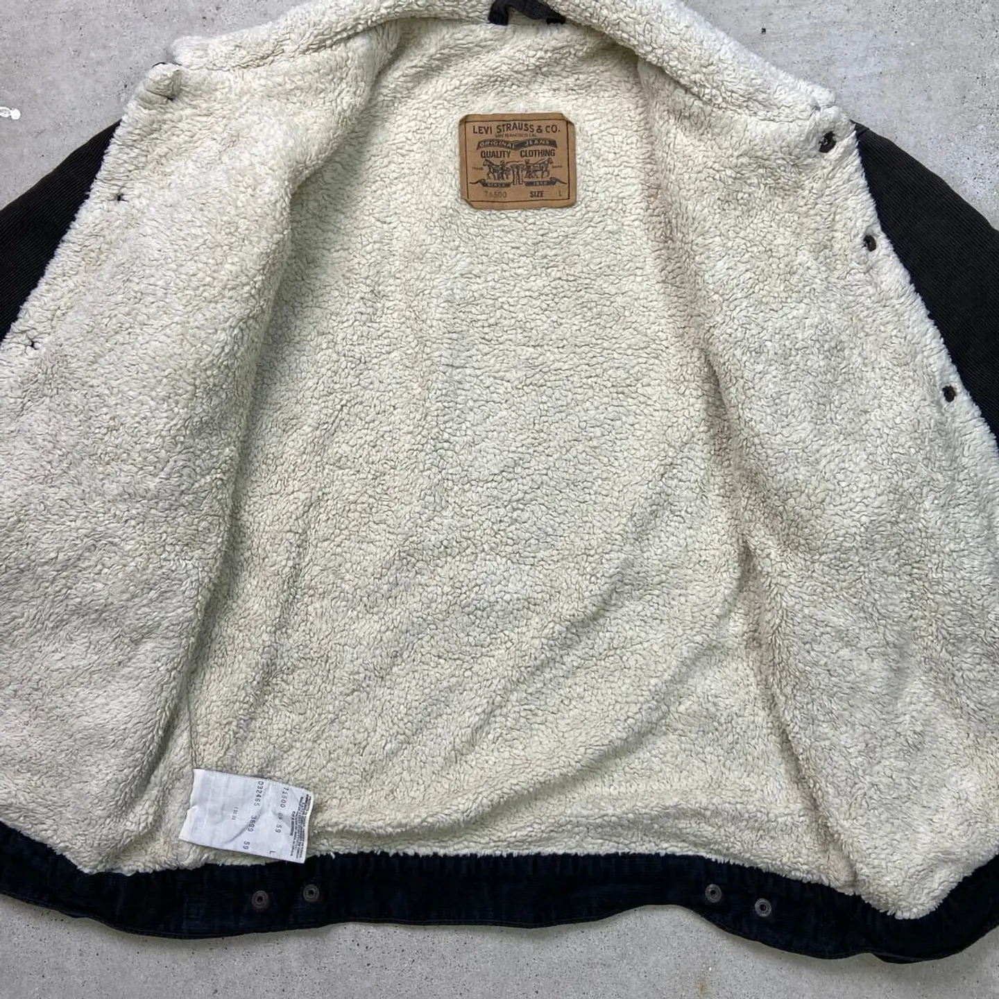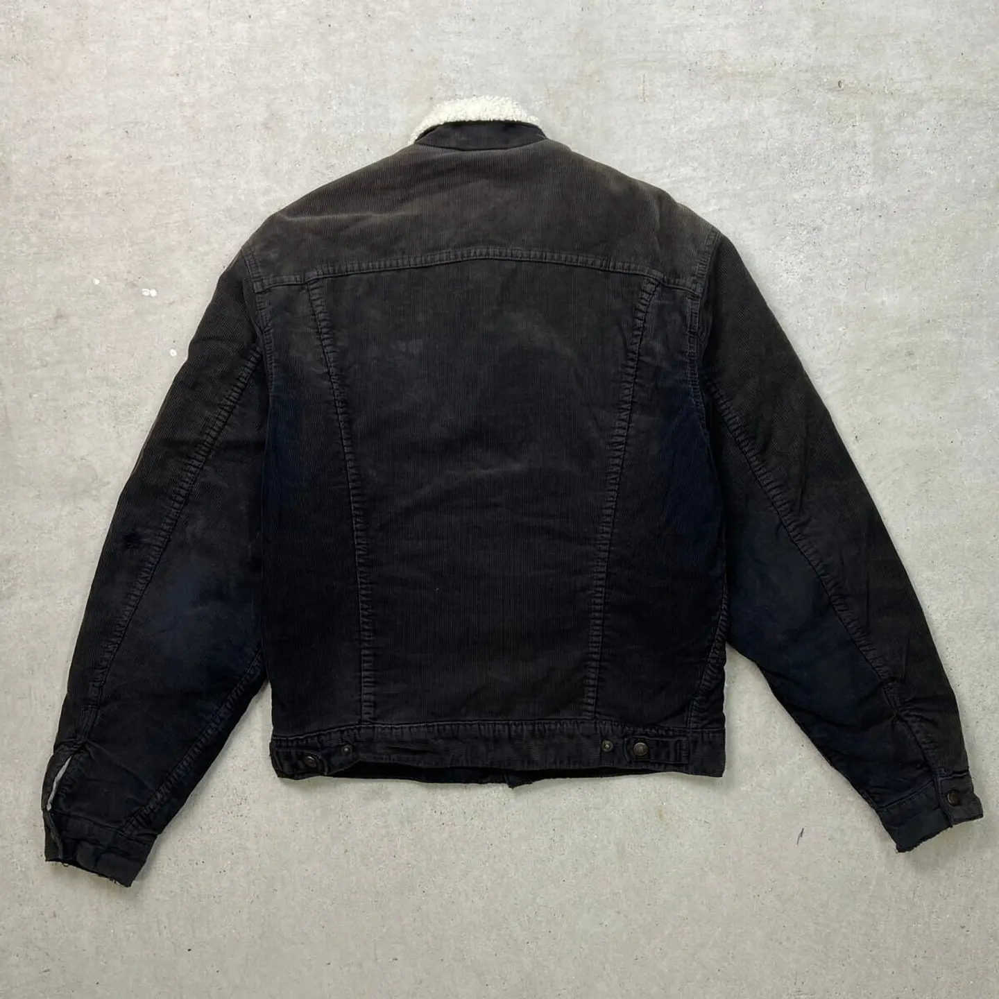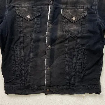 ■90年代 Levi's ユーロリーバイス 71500 コーデュロイボアジャケット メンズL 古着 90s ヴィンテージ VINTAGE アメカジ 細畝 サンフェード フェードブラック 黒色【デニムジャケット】/ブラック 【ブランド】Levi's リーバイス 【サイズ】表記 L ※計測値をご確認ください。 着丈…63.5 身幅…57.5 肩幅…51.5 袖丈…65.5 【生産国】チュニジア製 【素材】コットン100% 【状態】使用感による若干の色あせがございます。 サンフェードなどによる変色があります。 袖口にダメージによるほつれがあります。 画像にてご確認ください。 【c260102145】 ※古着は洗濯、検品などのケアを行っております。(新品・デッドストックは洗濯していません。)