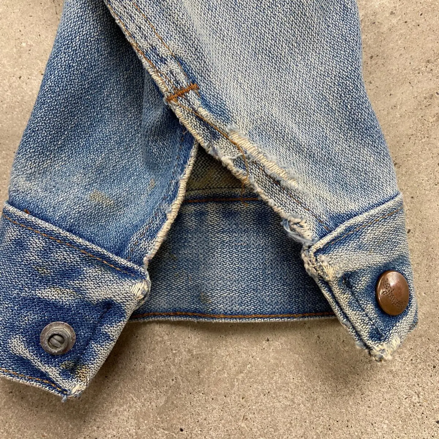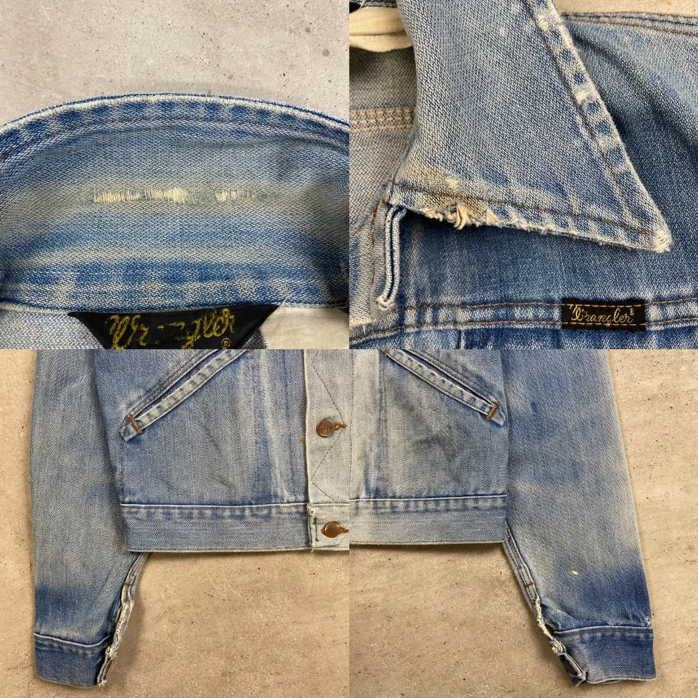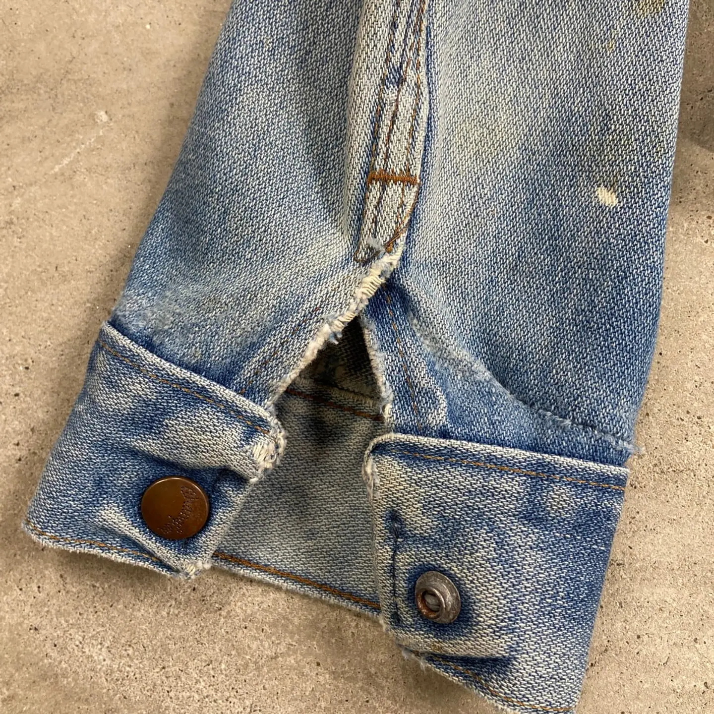 ■80年代 USA製 黒三角タグ Wrangler ラングラー 126MJ デニムジャケット 短丈 メンズS相当 古着 80s ヴィンテージ VINTAGE アメカジ ショート丈 4ポケット 青色【デニムジャケット】/ブルー ◎oasisのフロントマン、リアムギャラガーが着用していたことで 有名な'126MJ'モデル。 サイズ表記36と小さめではありますが、着丈は短く、袖丈が長くアームホールも ややスリムで、今風なシルエットに落とし込めるかと思います。 【ブランド】 Wrangler ラングラー 【サイズ】表記 36(実寸メンズS相当) ※計測値をご確認ください。 着丈…54.5 身幅…50 肩幅…44 袖丈…62.5 【生産国】USA製 【素材】コットン100% 【状態】全体的に使用感による色あせや擦れがございます。 襟や袖口付近に若干のダメージがあります。 フロントボタン付近や袖に薄汚れがあります。 画像にてご確認ください。 【c260228112】 ※古着は洗濯、検品などのケアを行っております。(新品・デッドストックは洗濯していません。) ※モニターの発色により実物と異なる場合がございます。予めご了承ください。 ※ 海外直輸入USED品になります。