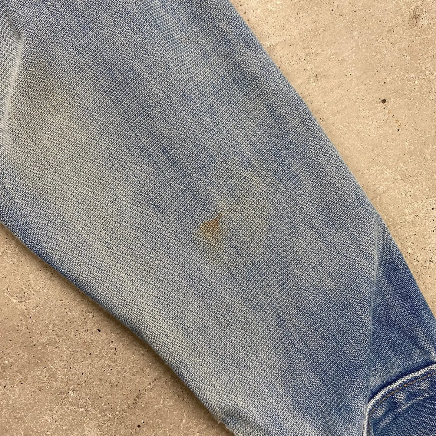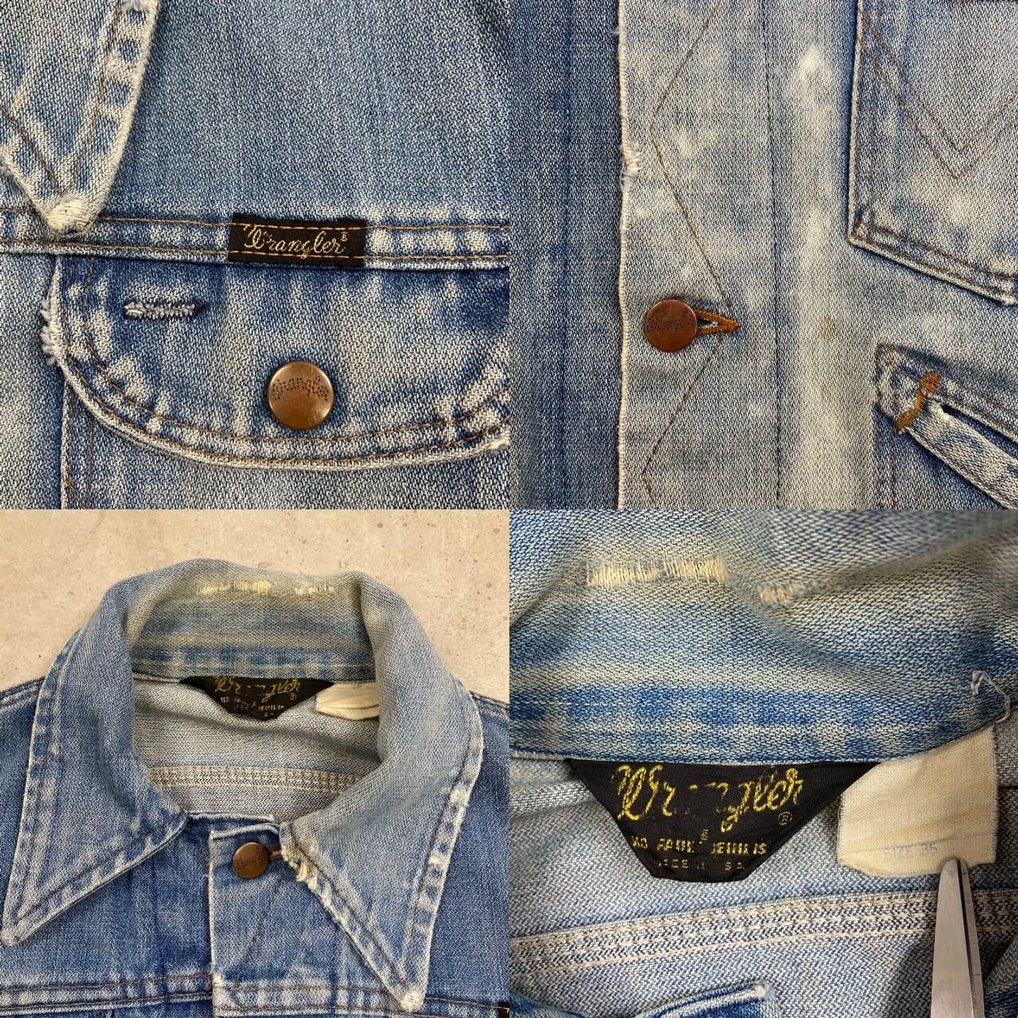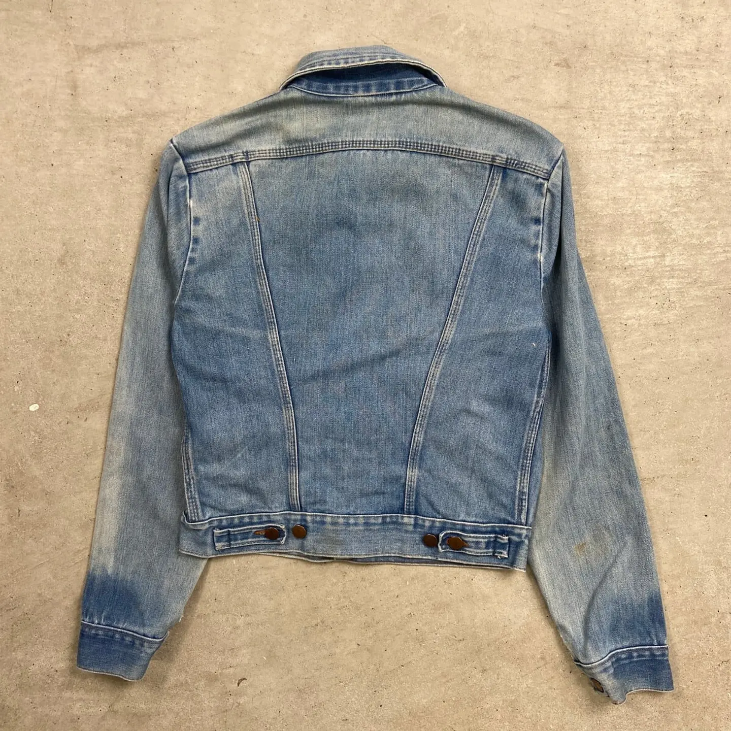 ■80年代 USA製 黒三角タグ Wrangler ラングラー 126MJ デニムジャケット 短丈 メンズS相当 古着 80s ヴィンテージ VINTAGE アメカジ ショート丈 4ポケット 青色【デニムジャケット】/ブルー ◎oasisのフロントマン、リアムギャラガーが着用していたことで 有名な'126MJ'モデル。 サイズ表記36と小さめではありますが、着丈は短く、袖丈が長くアームホールも ややスリムで、今風なシルエットに落とし込めるかと思います。 【ブランド】 Wrangler ラングラー 【サイズ】表記 36(実寸メンズS相当) ※計測値をご確認ください。 着丈…54.5 身幅…50 肩幅…44 袖丈…62.5 【生産国】USA製 【素材】コットン100% 【状態】全体的に使用感による色あせや擦れがございます。 襟や袖口付近に若干のダメージがあります。 フロントボタン付近や袖に薄汚れがあります。 画像にてご確認ください。 【c260228112】 ※古着は洗濯、検品などのケアを行っております。(新品・デッドストックは洗濯していません。) ※モニターの発色により実物と異なる場合がございます。予めご了承ください。 ※ 海外直輸入USED品になります。