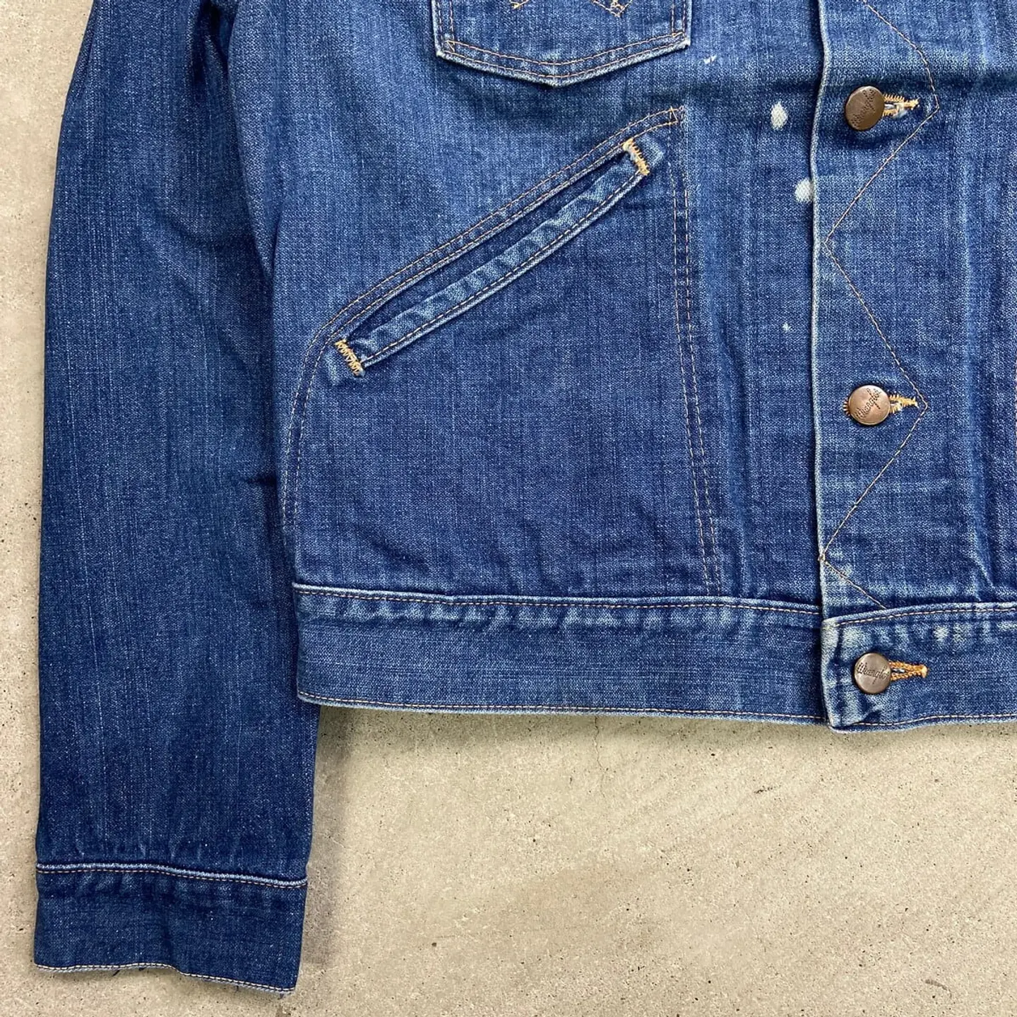■70年代 USA製 黒タグ Wrangler ラングラー 124MJ デニムジャケット メンズL相当 古着 70s ヴィンテージ VINTAGE アメカジ 4ポケット 青色【デニムジャケット】/ブルー 【ブランド】 Wrangler ラングラー 【サイズ】表記 42(実寸メンズL相当) ※計測値をご確認ください。 着丈…56.5 身幅…56 肩幅…46 袖丈…64 【生産国】USA製 【素材】コットン100% 【状態】全体的に使用感による色あせや擦れがございます。 フロントボタン付近に色抜けした箇所がありますが、 ダメージや汚れもなく、まだまだ愛用していただけます。 画像にてご確認ください。 【c260228110】 ※古着は洗濯、検品などのケアを行っております。(新品・デッドストックは洗濯していません。) ※モニターの発色により実物と異なる場合がございます。予めご了承ください。 ※ 海外直輸入USED品になります。