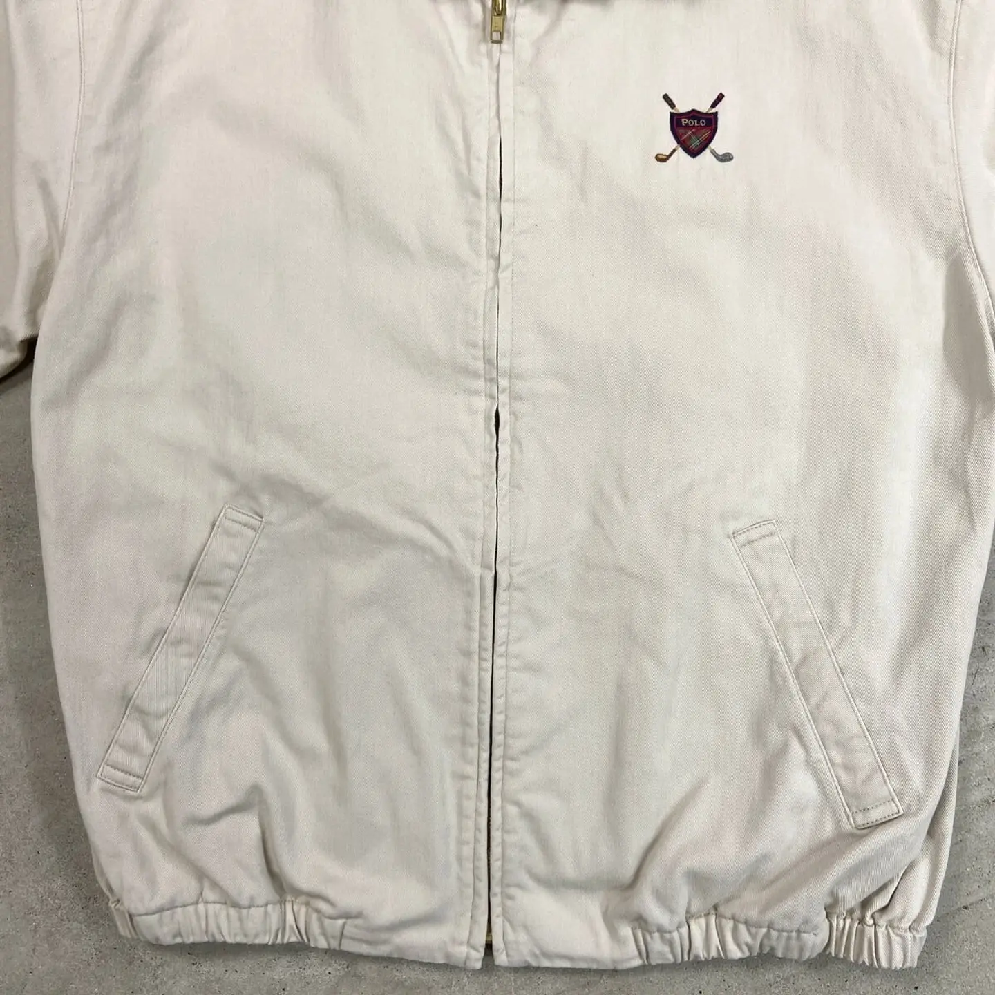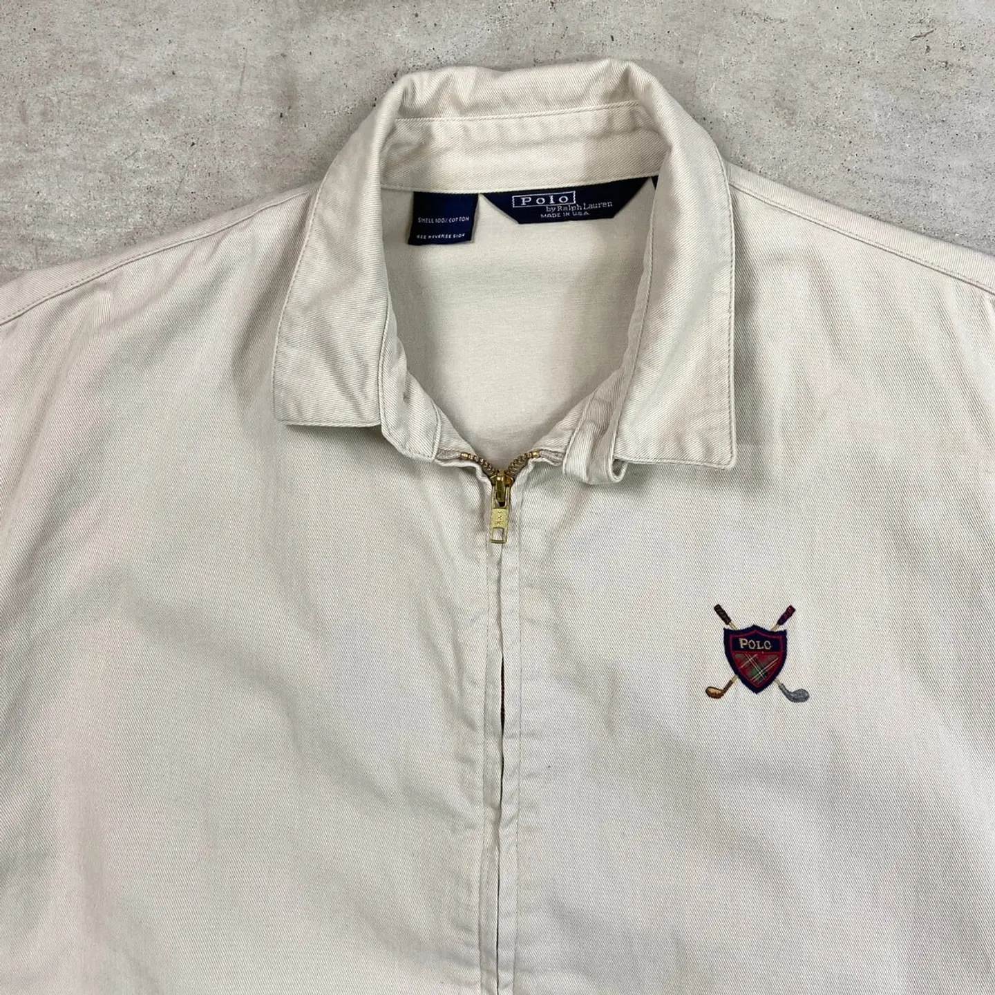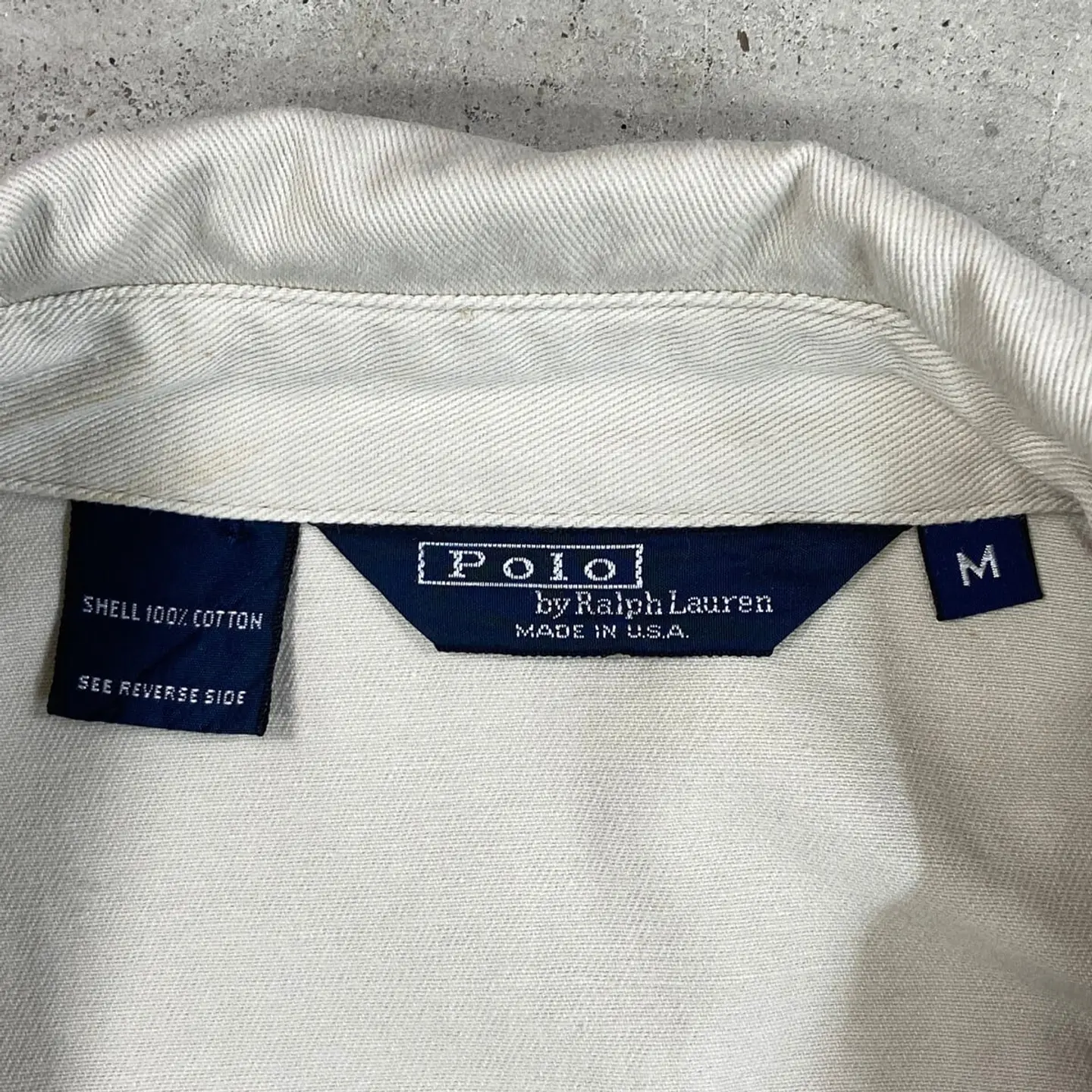 ■90年代 USA製 Polo by Ralph Lauren ポロバイラルフローレン スイングトップ メンズL相当 古着 90s ヴィンテージ VINTAGE アメカジ 三角タグ チンスト付き ワンポイントロゴ刺繍 ゴルフ スポーツジャケット ライトベージュ【ブルゾン・ジャケット】/ベージュ 【ブランド】Polo by Ralph Lauren ポロバイラルフローレン 【サイズ】表記 M(実寸メンズL相当) ※計測値をご確認ください。 着丈…64.5 身幅…62 肩幅…53 袖丈…62 【生産国】USA製 【素材】コットン100% 袖地 ポリエステル100% 【状態】フロント襟付近やバックサイド襟付近に一部小さなシミ汚れがあります。 その他目立ったダメージや汚れはありませんので、 まだまだ愛用していただけます。 画像にてご確認ください。 【c260301106】 ※古着は洗濯、検品などのケアを行っております。(新品・デッドストックは洗濯していません。) ※モニターの発色により実物と異なる場合がございます。予めご了承ください。 ※ 海外直輸入USED品になります。