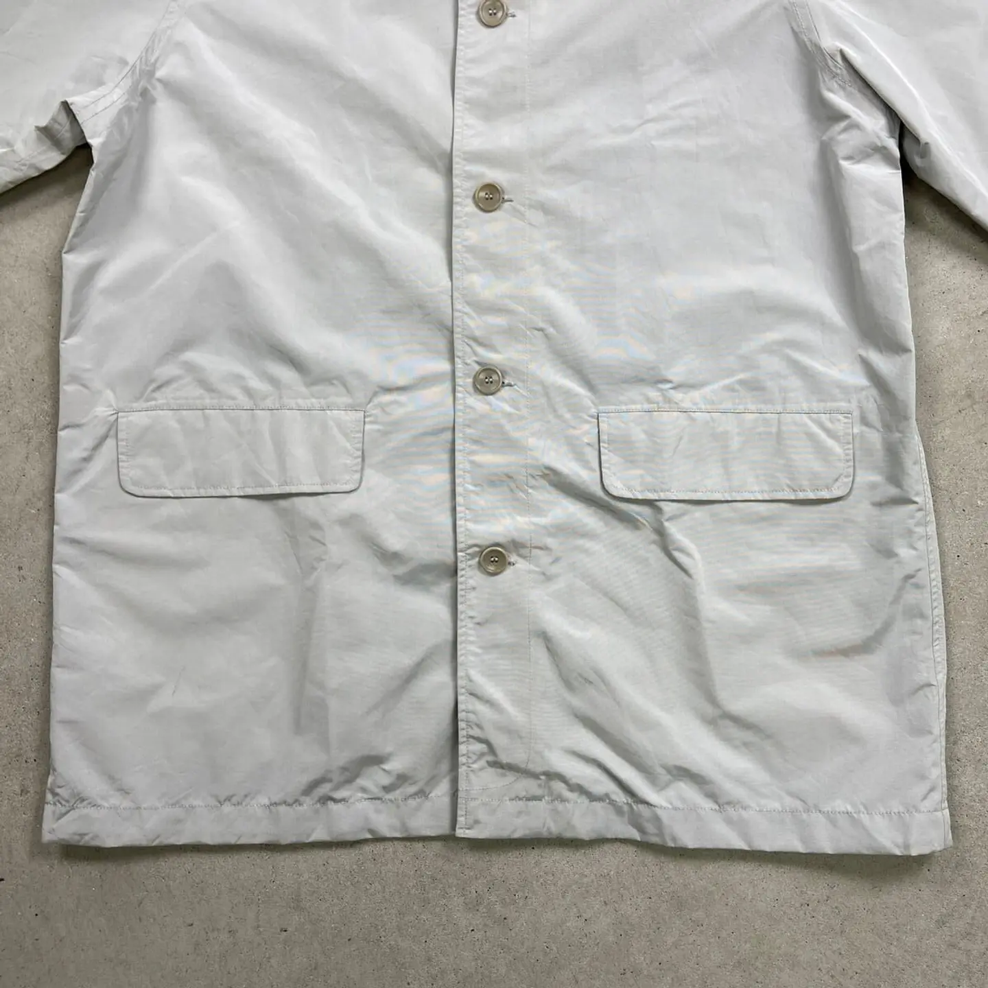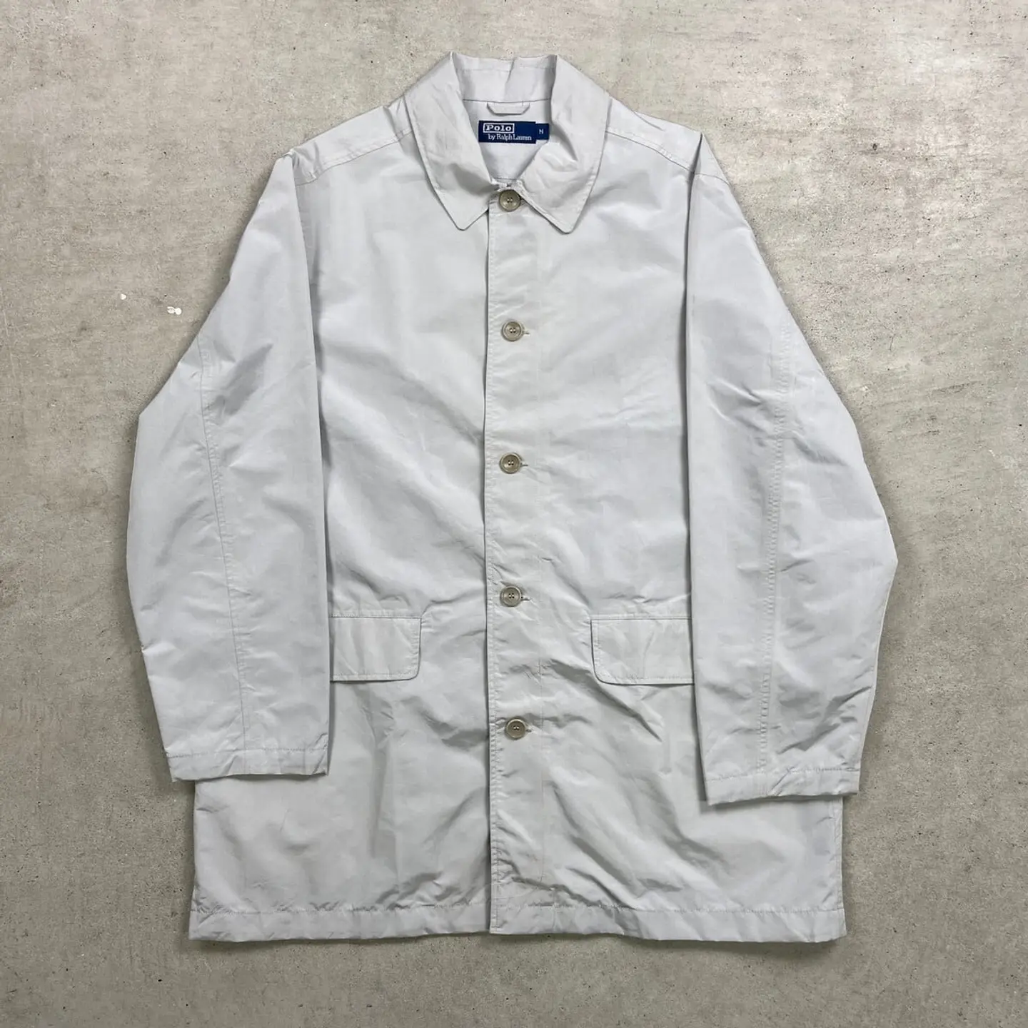 ■90年代 Polo by Ralph Lauren ポロバイラルフローレン GORE-TEX ゴアテックス ステンカラーコート メンズXL相当 古着 90s VINTAGE ヴィンテージ ロングコート シルバーグレー【コート】/ライトグレー 【ブランド】Polo by Ralph Lauren ポロバイラルフローレン 【サイズ】表記 M(着用感メンズXL相当) ※計測値をご確認ください。 着丈…85 身幅…66 肩幅...51 袖丈…64 【生産国】バングラデシュ製 【素材】GORE-TEX ナイロン60% ポリエステル40% 【状態】肩や袖、ポケット下に薄いシミ汚れが御座います。 画像にてご確認ください。 【c260207102】 ※古着は洗濯、検品などのケアを行っております。(新品・デッドストックは洗濯していません。)