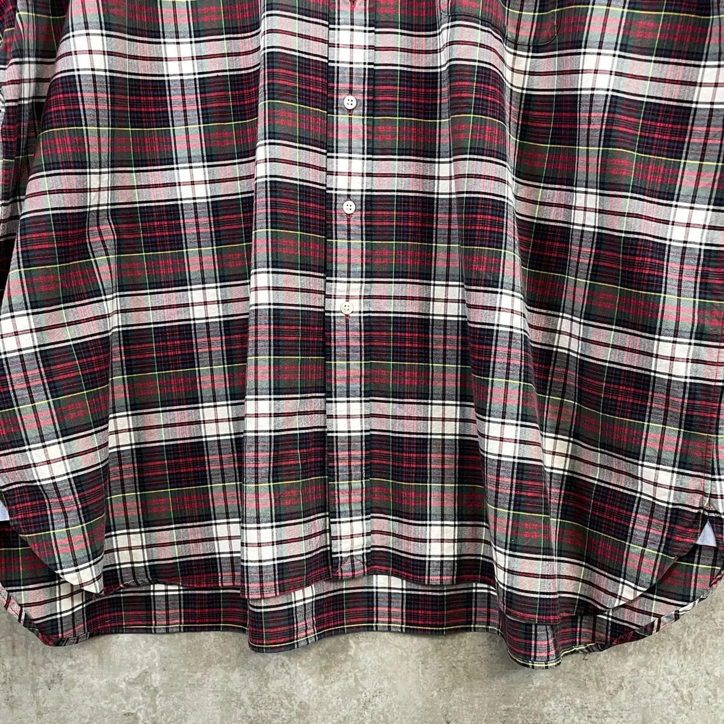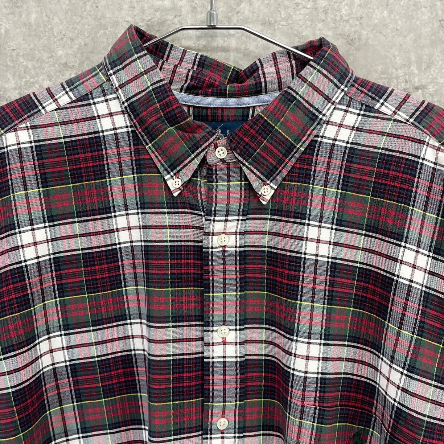 ■90年代 Ralph Lauren ラルフローレン チェック柄 ボタンダウンシャツ メンズ4XLT相当 古着 90s VINTAGE ヴィンテージ アメカジ マチ付き スーパービッグサイズ 大きいサイズ レッド グリーン ネイビー イエロー【長袖シャツ】/マルチカラー 【ブランド】Ralph Lauren ラルフローレン 【サイズ】表記 3XLT(実寸メンズ4XL相当) ※計測値をご確認ください。 着丈…92.5 身幅…82.5 肩幅…59.5 袖丈…71 【生産国】フィリピン製 【素材】コットン100% 【状態】多少の使用感ございますが、目立った汚れやダメージなくまだまだ愛用していただけます。画像にてご確認ください。 【c260127101】 ※古着は洗濯、検品などのケアを行っております。(新品・デッドストックは洗濯していません。) ※モニターの発色により実物と異なる場合がございます。予めご了承ください。 ※ 海外直輸入USED品になります。