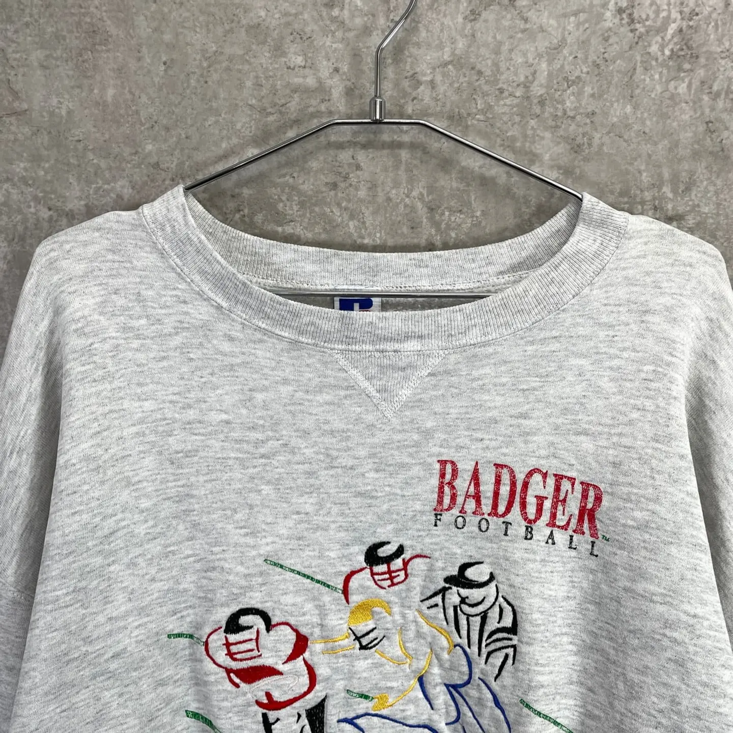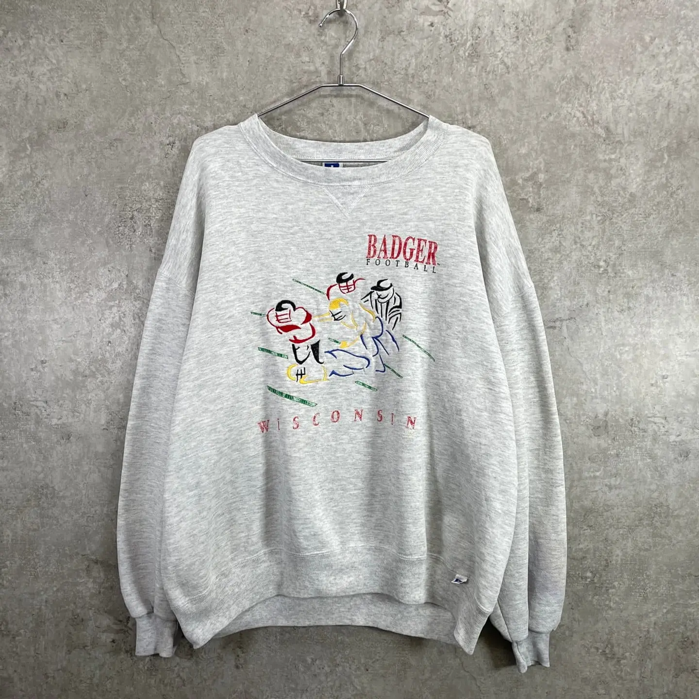 ■90年代 USA製 RUSSELL ATHLETIC アメフト チーム刺繍 スウェットシャツ メンズ2XL 古着 90s ヴィンテージ VINTAGE ラッセルアスレチック 前Vガゼット アメカジ トレーナー BADGER FOOTBALL WISCONSIN ビッグサイズ 大きいサイズ ライトグレー 杢グレー【スウェット】/グレー 【ブランド】RUSSELL ATHLETIC ラッセルアスレチック 【サイズ】表記 XXL ※計測値をご確認ください。 着丈…68.5 身幅…70.5 肩幅…72 袖丈…57.5 【生産国】USA製 【素材】コットン50% ポリエステル50% 【状態】プリント下や袖、わき腹付近に目立たない程度の薄いシミ汚れがあります。 画像にてご確認ください。 【c260124102】 ※古着は洗濯、検品などのケアを行っております。(新品・デッドストックは洗濯していません。) ※モニターの発色により実物と異なる場合がございます。予めご了承ください。 ※ 海外直輸入USED品になります。