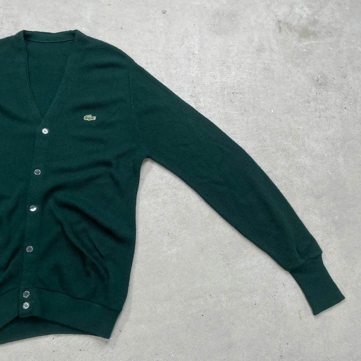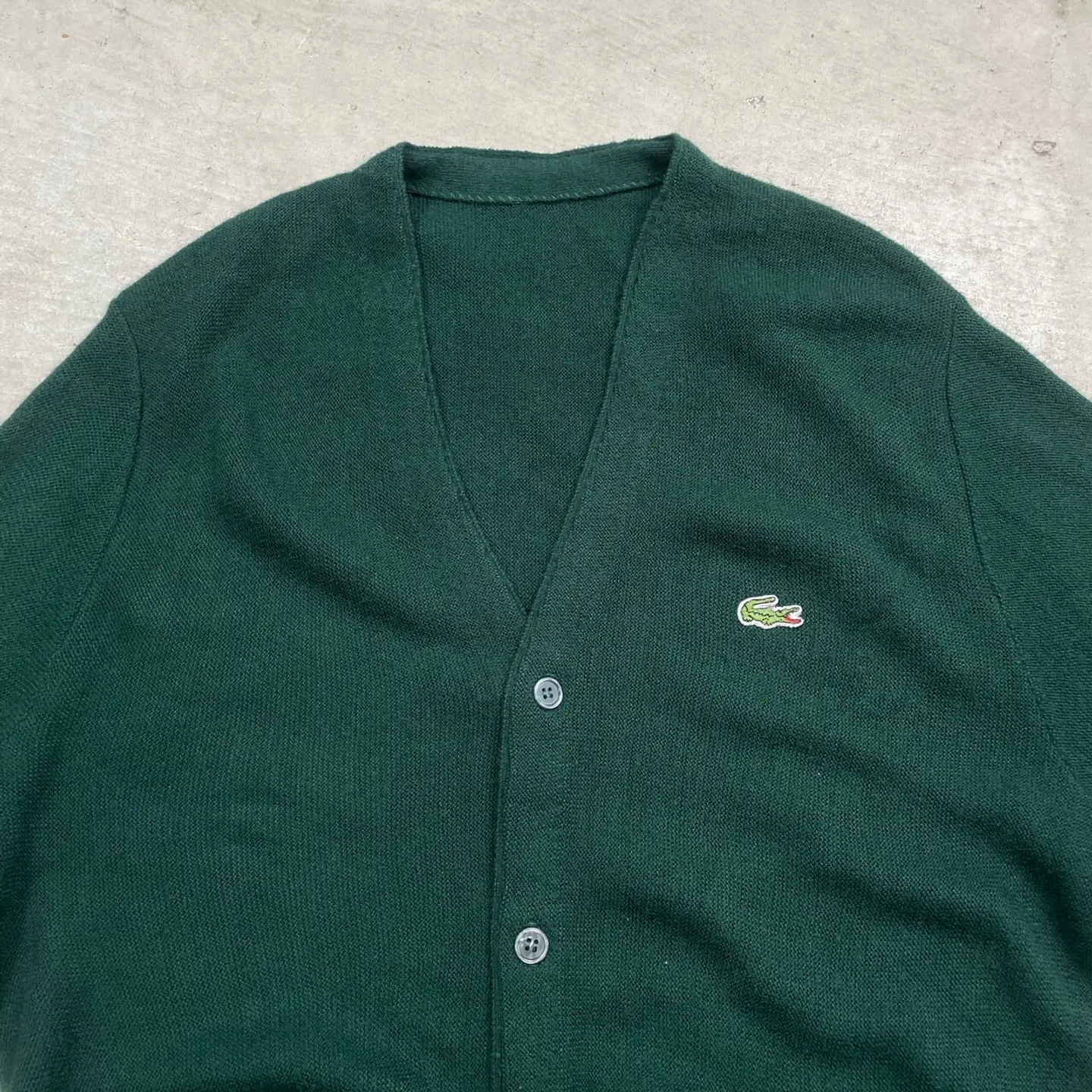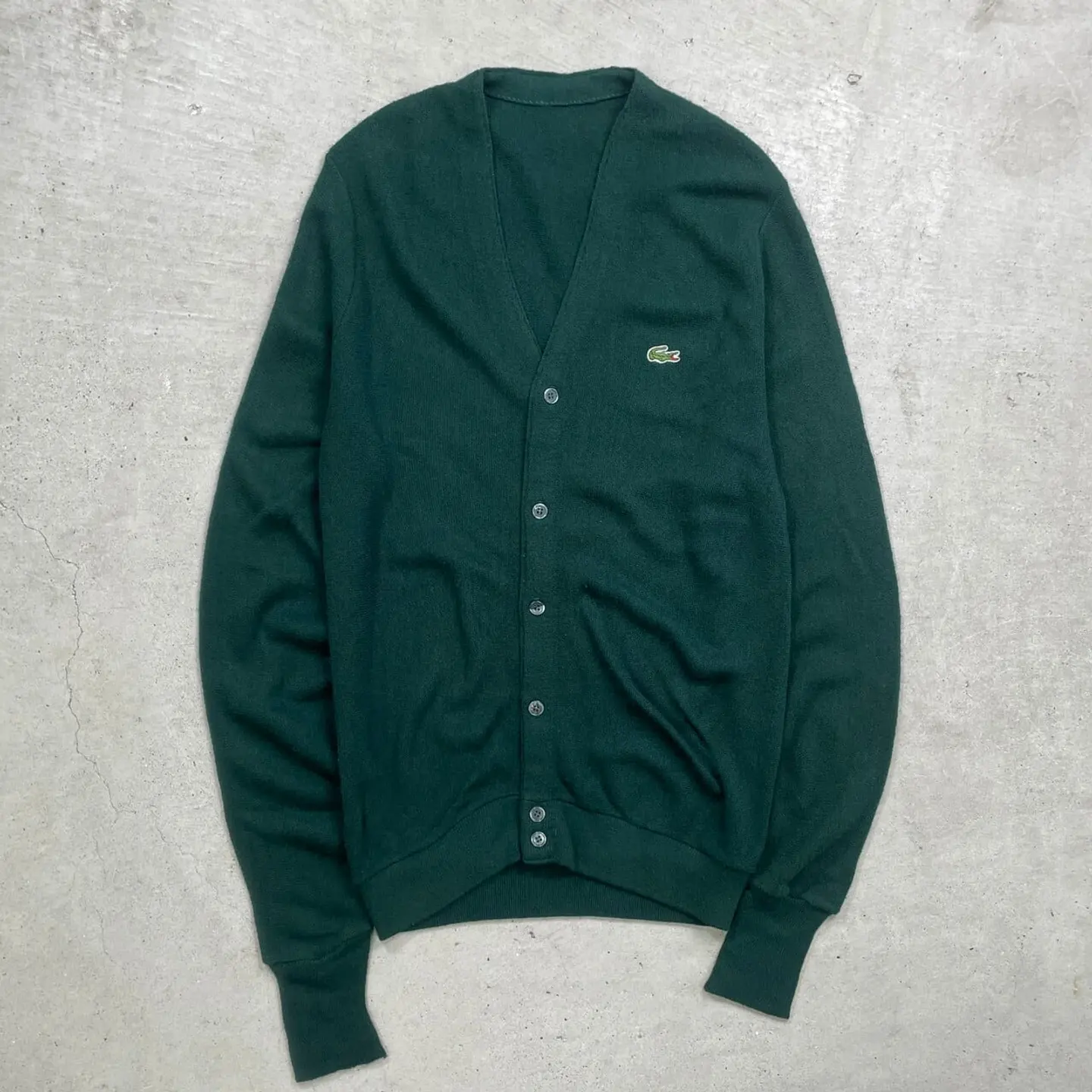■LACOSTE ラコステ ワンポイントロゴ刺繍 ニットカーディガン メンズXL相当 古着 深緑 【ニットセーター】/グリーン 【ブランド】LACOSTE ラコステ 【サイズ】表記 不明(計測値メンズXL相当) ※計測値をご確認ください。 着丈…76 身幅…58 肩幅…45 袖丈…90 【生産国】表記不明 【素材】表記不明 おそらくアクリルかと思われます。 【状態】タグと一番下のボタンが欠損しています。 多少の使用感はございますが、 目立った汚れやダメージ等は無くまだまだ長くご愛用していただけます。 画像にてご確認ください。 【c260126003】 ※古着は洗濯、検品などのケアを行っております。(新品・デッドストックは洗濯していません。) ※モニターの発色により実物と異なる場合がございます。予めご了承ください。 ※ 海外直輸入USED品になります。