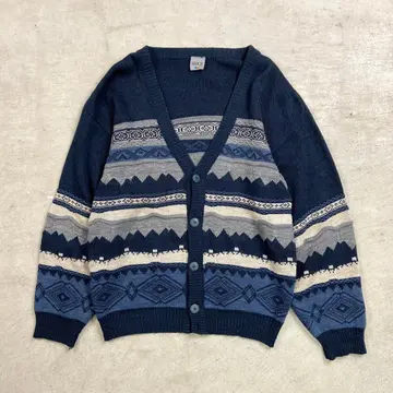 スペイン製 総柄 モヘア混 ニットベスト メンズM相当 古着 VINTAGE ヴィンテージ コインボタン