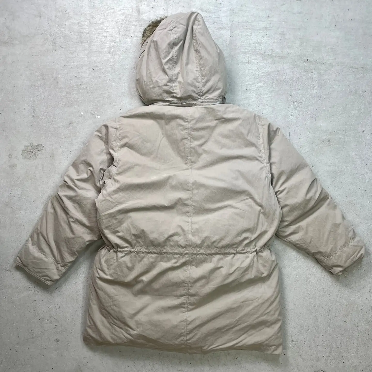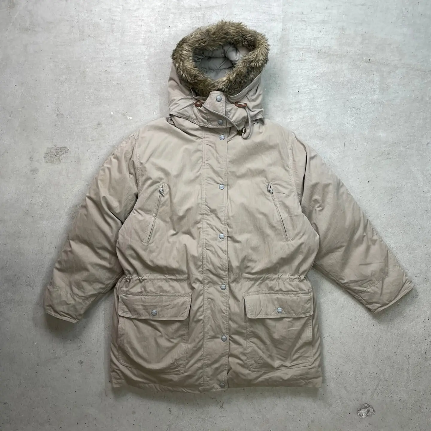 ■80年代 L.L.Bean エルエルビーン グースダウンジャケット レディースXL相当 古着 80s VINTAGE ヴィンテージ マウンテンパーカー フード着脱式【アウトドアジャケット】/ベージュ ◎ウエストドローコード付き ◎フェイクファー取り外し可能 【ブランド】L.L.Bean エルエルビーン 【サイズ】表記 WOMEN'S LARGE(実寸レディースXL相当) ※計測値をご確認ください。 着丈…83 身幅…66 肩幅…51 袖丈...59 【生産国】タイ製 【素材】コットン75% ナイロン25% 中綿 グースダウン 【状態】内タグにネームが記載されております。 フロント右ポケットや肩付近に汚れがあります。 画像にてご確認ください。 【c260102132】 ※古着は洗濯、検品などのケアを行っております。(新品・デッドストックは洗濯していません。) ※モニターの発色により実物と異なる場合がございます。予めご了承ください。 ※ 海外直輸入USED品になります。