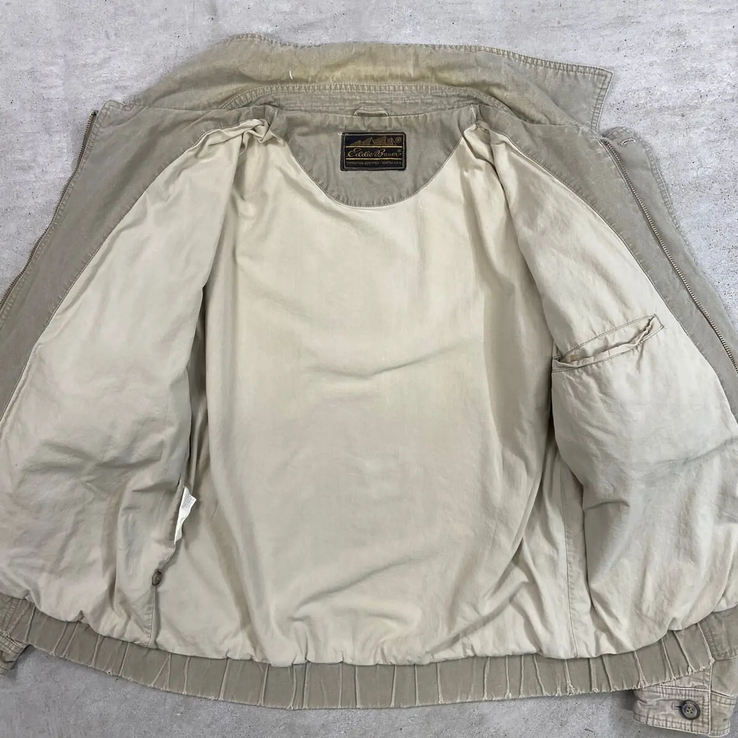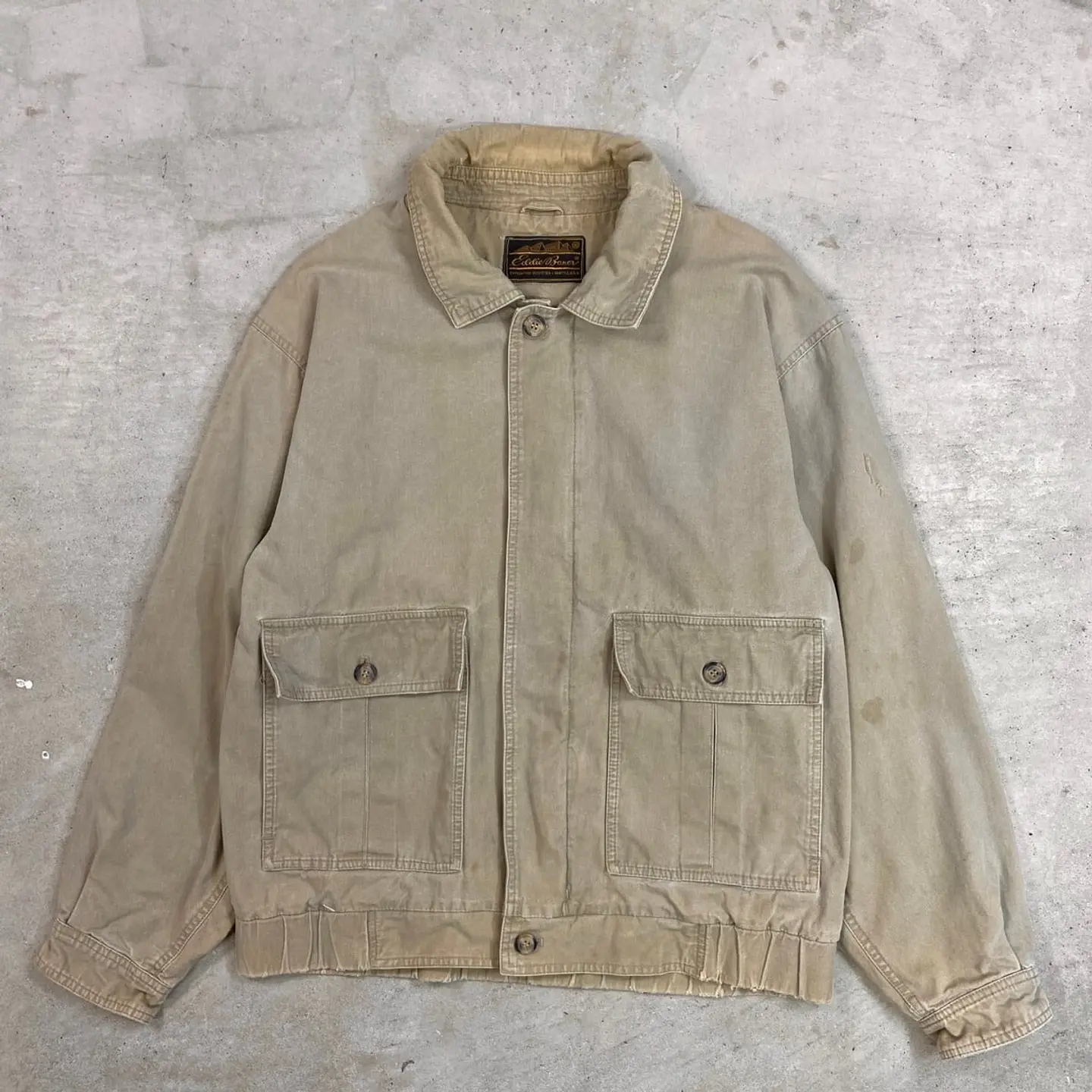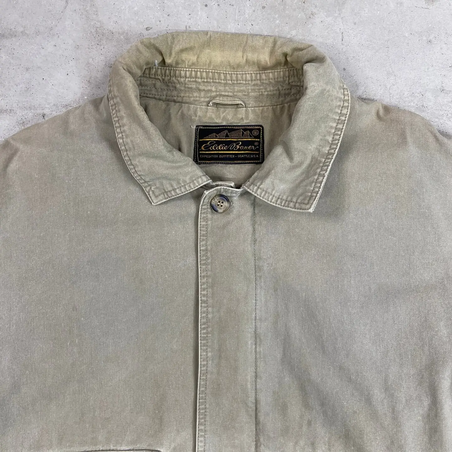 ■90年代 Eddie Bauer エディーバウアー ハンティングジャケット コーデュロイ襟 メンズ2XL 古着 90s VINTAGE ヴィンテージ 黒タグ後期 ビッグサイズ 大きいサイズ フェードモスグリーン【ナイロンジャケット】/グリーン 【ブランド】Eddie Bauer エディーバウアー 【サイズ】不明(実寸メンズXL相当) ※計測値をご確認ください。 着丈…67 身幅…63.5 肩幅…53 袖丈…61 【生産国】不明 【素材】不明(恐らくコットン) 【状態】袖やバックサイドなど数か所に薄いシミ汚れがあります。 左袖、バックサイドにリペア跡がございます。 画像にてご確認ください。 【c260301112】 ※古着は洗濯、検品などのケアを行っております。(新品・デッドストックは洗濯していません。) ※モニターの発色により実物と異なる場合がございます。予めご了承ください。 ※ 海外直輸入USED品になります。