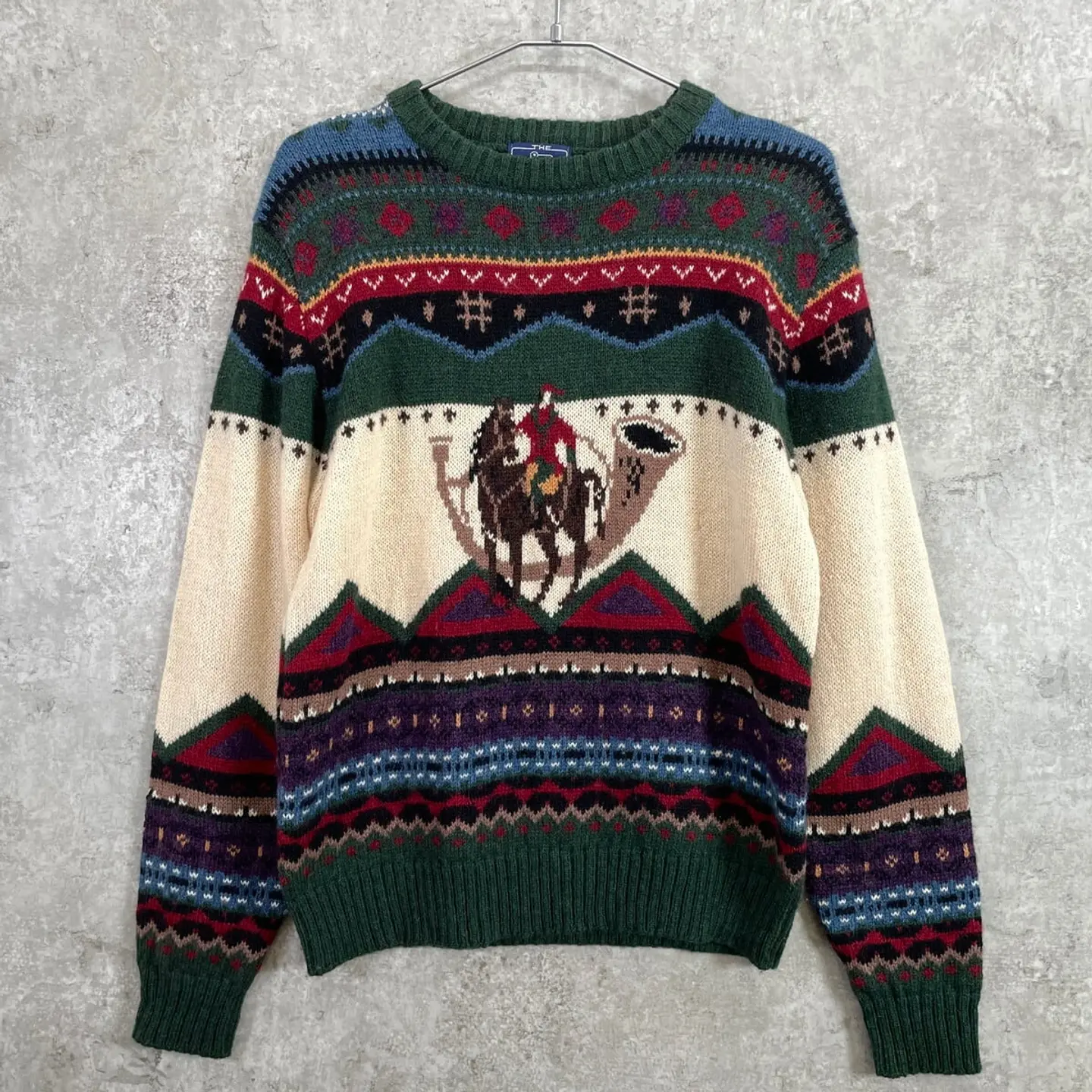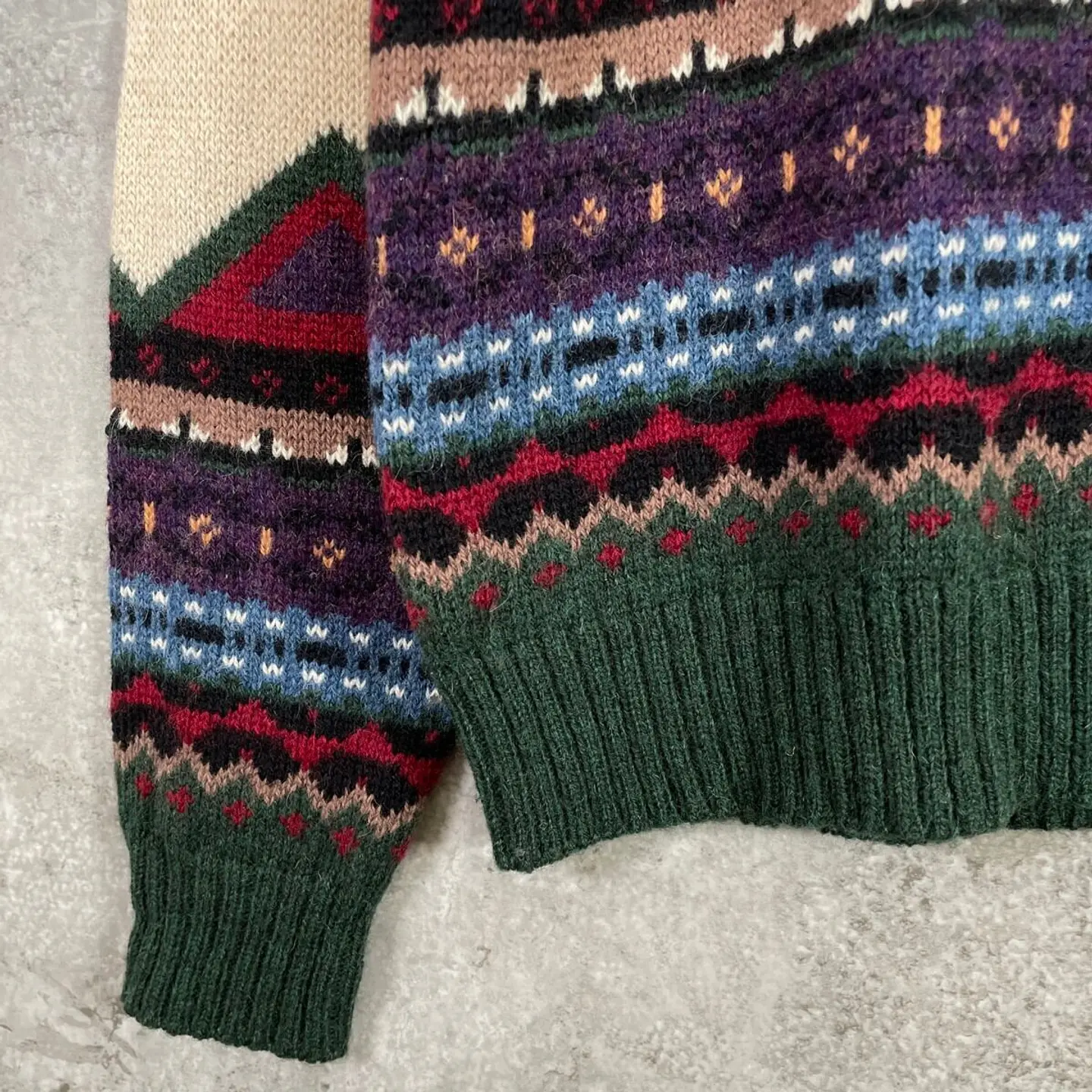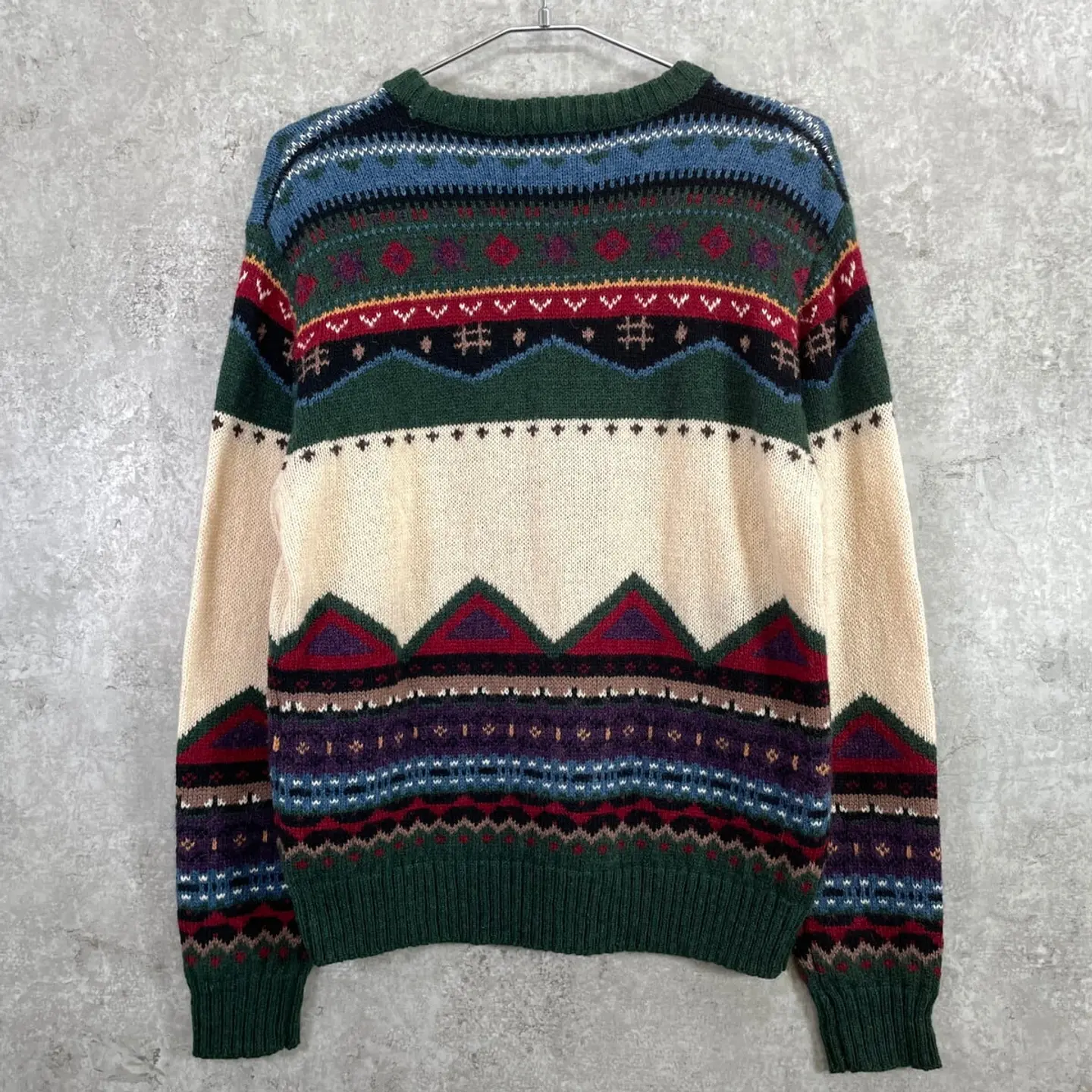 ■80年代 Woolrich ウールリッチ 乗馬 アニマル柄 ウールニットセーター レディースL相当 古着 80s ヴィンテージ VINTAGE 総柄 グリーン ベージュ レッド パープル ブルー【ニットセーター】/マルチカラー 【ブランド】Woolrich ウールリッチ 【サイズ】表記不明(着用感レディース?相当) ※計測値をご確認ください。 着丈…59.5 身幅…51 肩幅…45.5 袖丈…62 【生産国】表記不明 【素材】表記不明(おそらくウール) 【状態】フロントに一部ほつれがございます。 その他目立ったダメージや汚れはありません。 画像にてご確認ください。 【c260125105】 ※古着は洗濯、検品などのケアを行っております。(新品・デッドストックは洗濯していません。) ※モニターの発色により実物と異なる場合がございます。予めご了承ください。 ※ 海外直輸入USED品になります。
