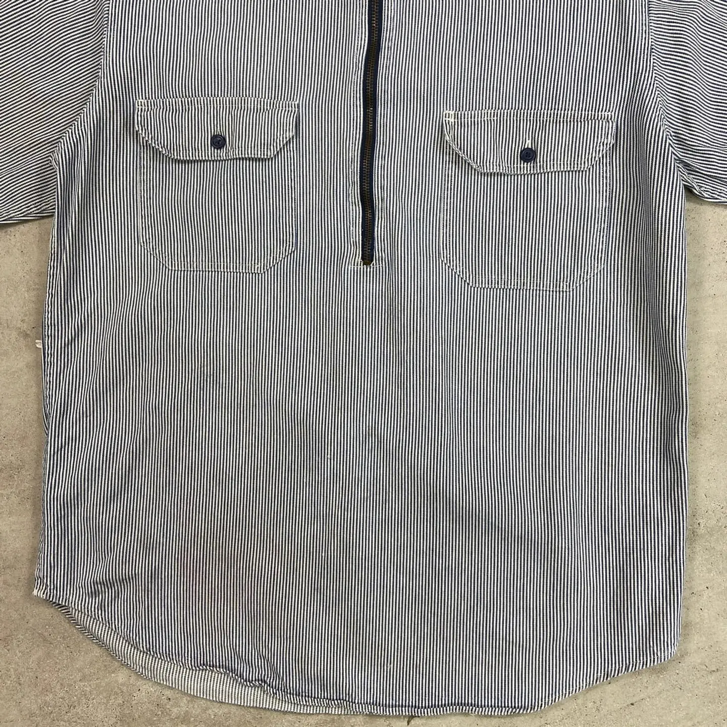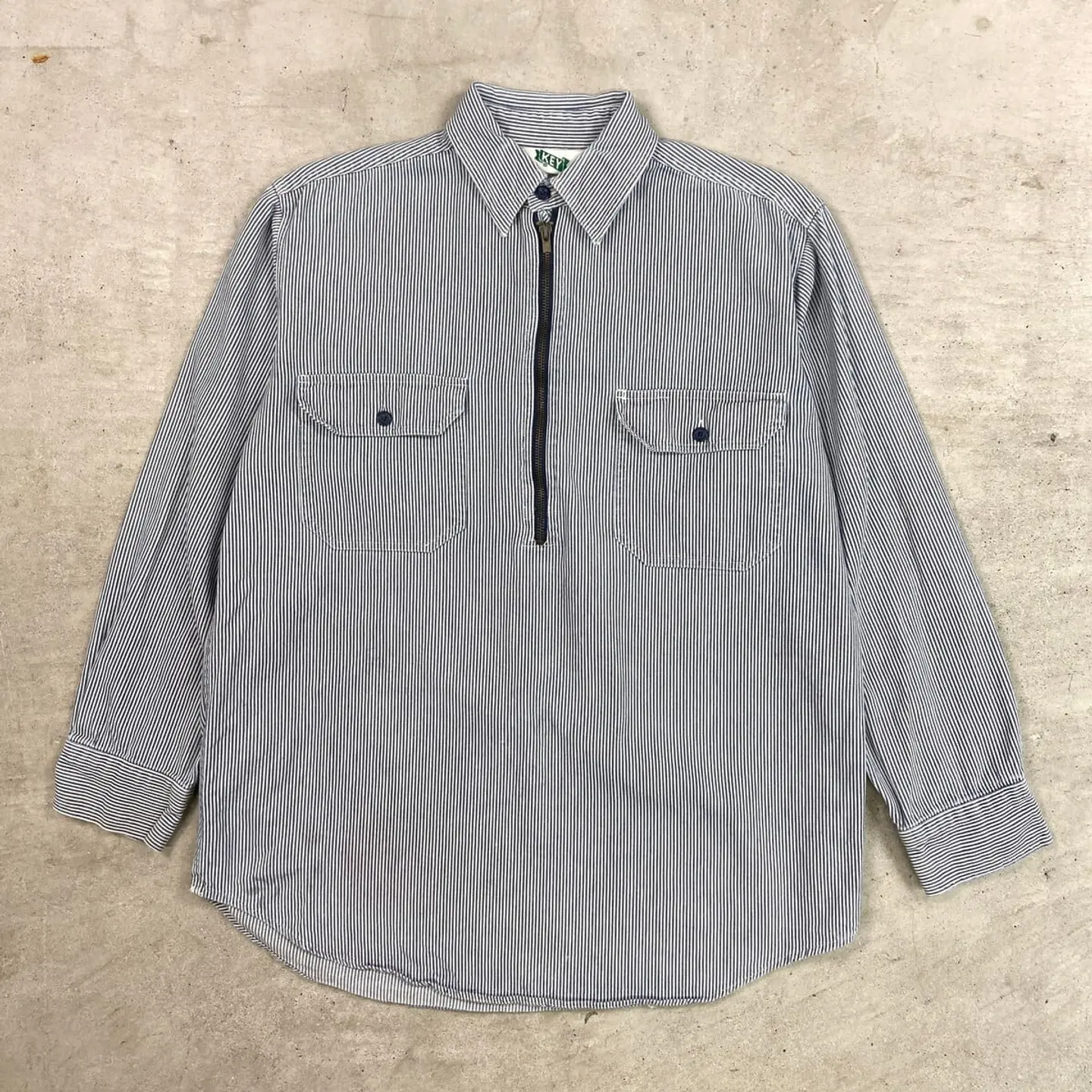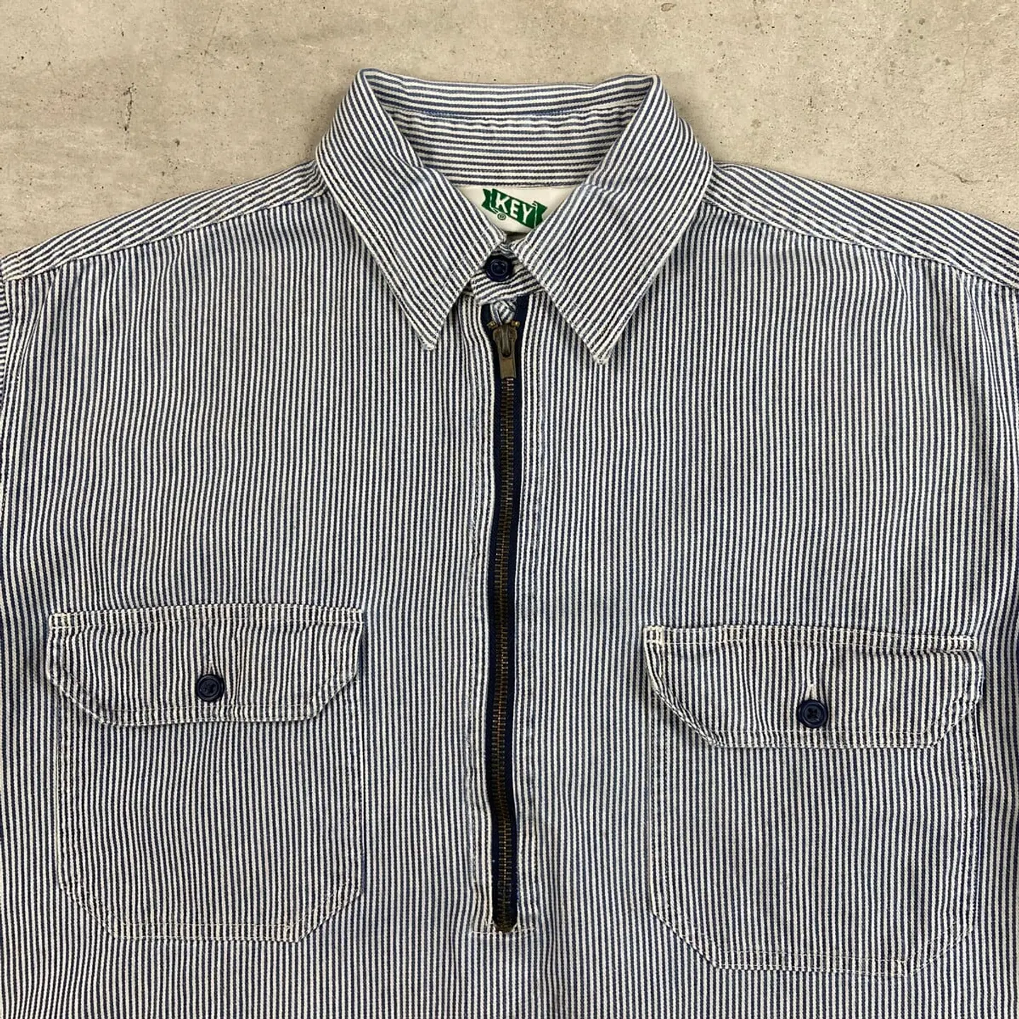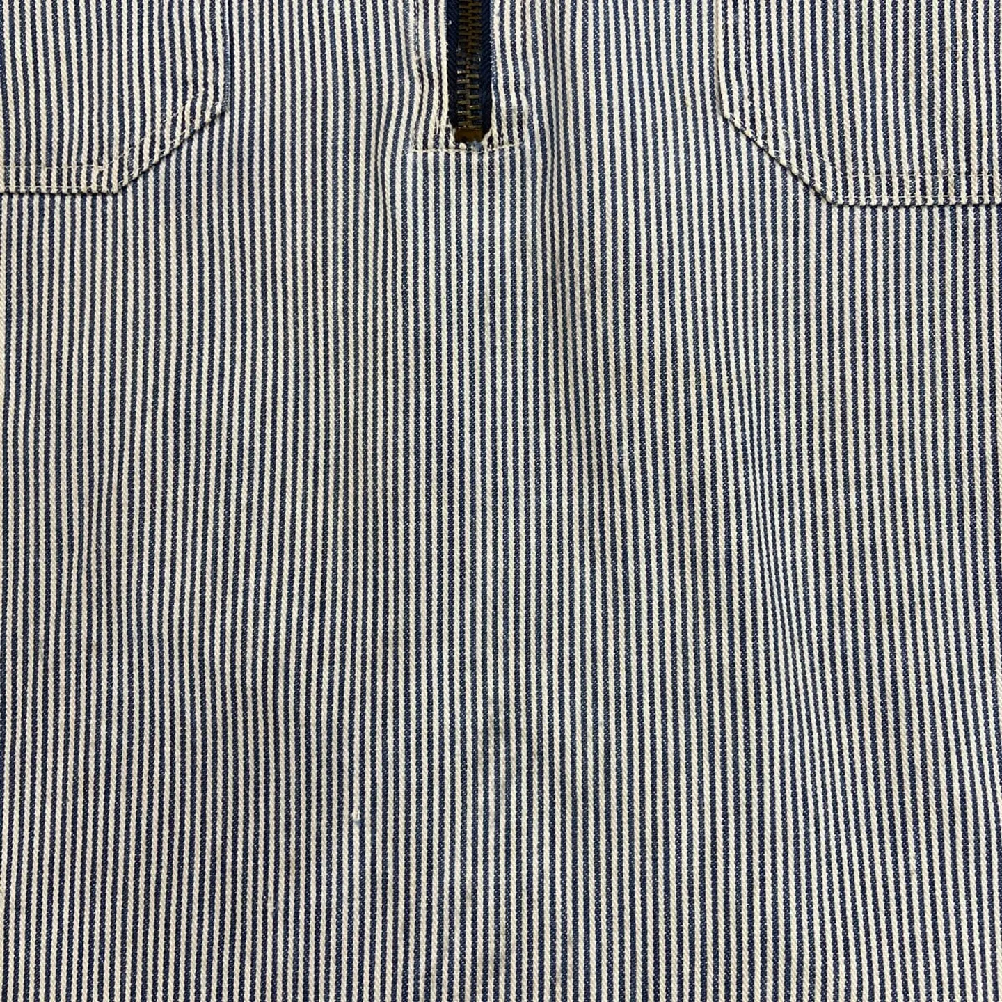 ■90年代 KEY ヒッコリーストライプ プルオーバーコットンシャツジャケット メンズL相当 古着 90s VINTAGE ヴィンテージ ハーフジップ ダブルポケット ブルー×ホワイト【ワークジャケット】/マルチカラー 【ブランド】 KEY キー 【サイズ】不明(実寸メンズL相当) ※計測値をご確認ください。 着丈…75 身幅…60 肩幅…46 袖丈…57 【生産国】不明 【素材】不明(おそらくコットン) 【状態】ジッパーが一部破損しております。 フロント左胸ポケット付近、裾付近に若干の汚れや色移りがあります。 画像にてご確認ください。 【c260301105】 ※古着は洗濯、検品などのケアを行っております。(新品・デッドストックは洗濯していません。) ※モニターの発色により実物と異なる場合がございます。予めご了承ください。 ※ 海外直輸入USED品になります。