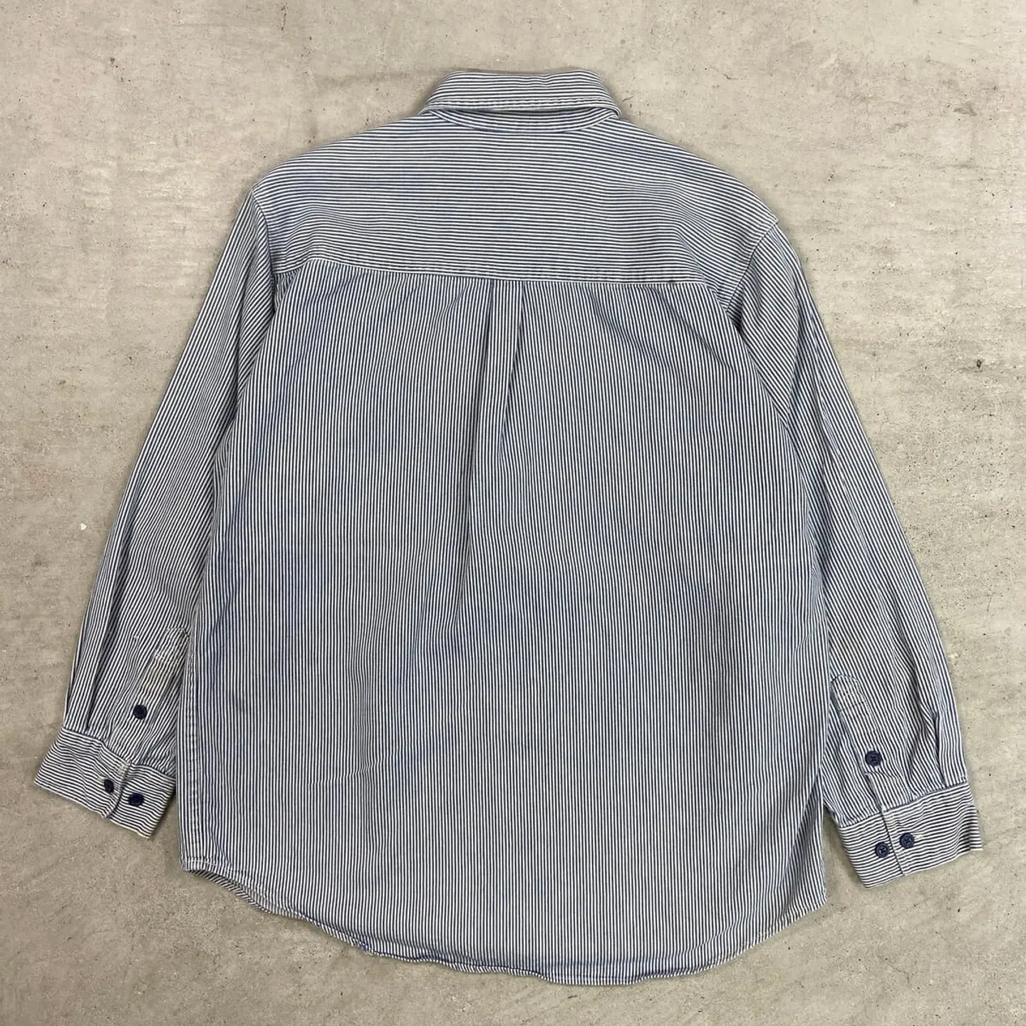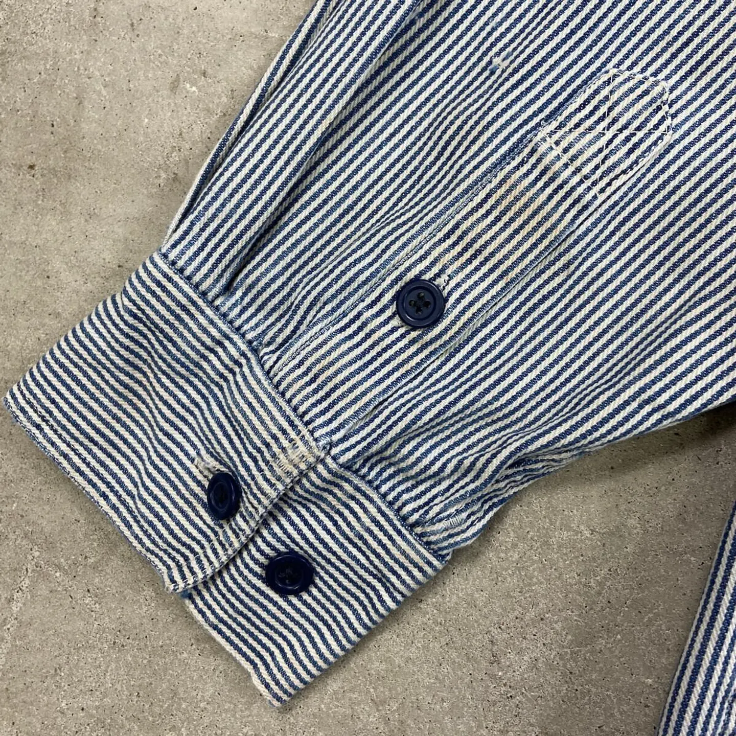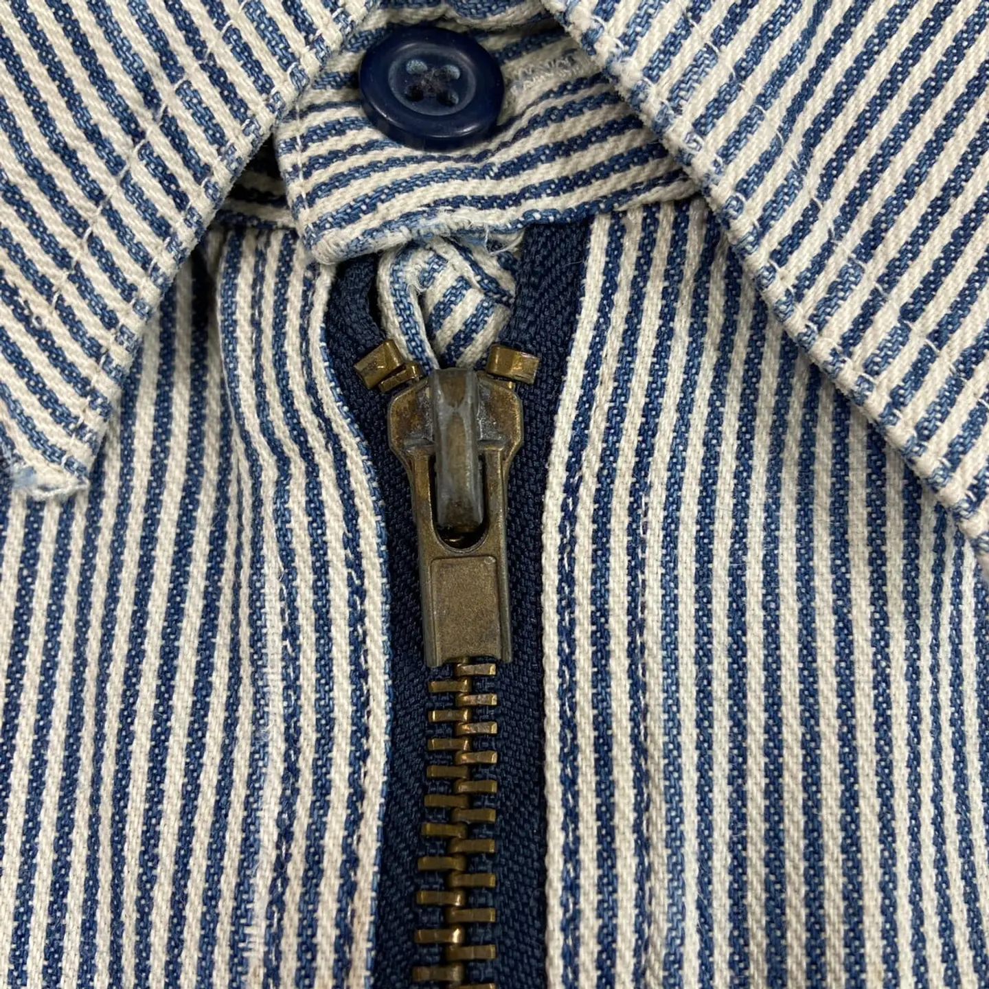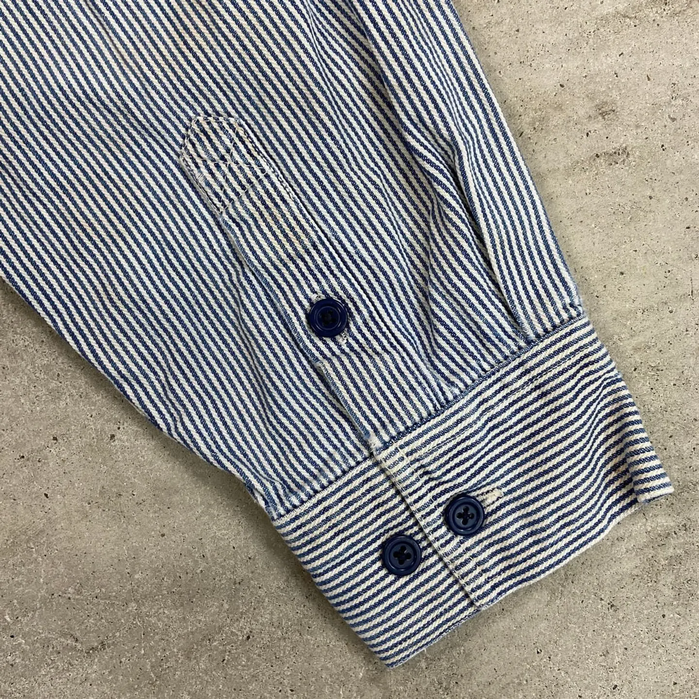 ■90年代 KEY ヒッコリーストライプ プルオーバーコットンシャツジャケット メンズL相当 古着 90s VINTAGE ヴィンテージ ハーフジップ ダブルポケット ブルー×ホワイト【ワークジャケット】/マルチカラー 【ブランド】 KEY キー 【サイズ】不明(実寸メンズL相当) ※計測値をご確認ください。 着丈…75 身幅…60 肩幅…46 袖丈…57 【生産国】不明 【素材】不明(おそらくコットン) 【状態】ジッパーが一部破損しております。 フロント左胸ポケット付近、裾付近に若干の汚れや色移りがあります。 画像にてご確認ください。 【c260301105】 ※古着は洗濯、検品などのケアを行っております。(新品・デッドストックは洗濯していません。) ※モニターの発色により実物と異なる場合がございます。予めご了承ください。 ※ 海外直輸入USED品になります。