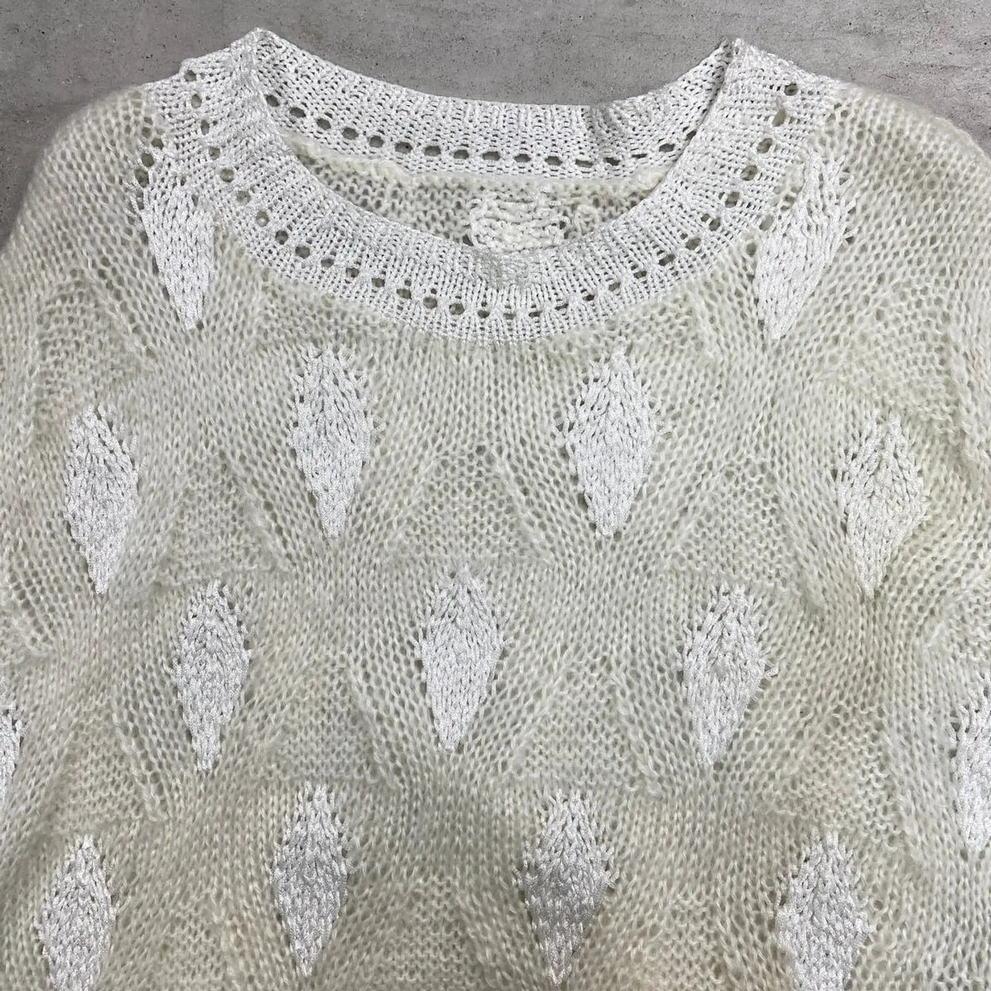 ■UNKNOWN モヘアライク シアーニット レディース2XL相当 メンズ2XL相当 古着 VINTAGE ヴィンテージ 透かし編み ビッグサイズ 大きいサイズ 白色【ニットセーター】/ホワイト ◎素材表記不明のため、光沢感や毛足が長いためモヘアライクとしております。 【ブランド】不明 【サイズ】不明(実寸レディース2XL相当) ※計測値をご確認ください。 着丈…71 身幅…71 肩幅…60.5 袖丈…73.5 【生産国】不明 【素材】不明 【状態】多少の使用感は御座いますが、目立ったダメージや汚れは御座いません。 画像にてご確認ください。 【c260129105】 ※古着は洗濯、検品などのケアを行っております。(新品・デッドストックは洗濯していません。) ※モニターの発色により実物と異なる場合がございます。予めご了承ください。 ※ 海外直輸入USED品になります。