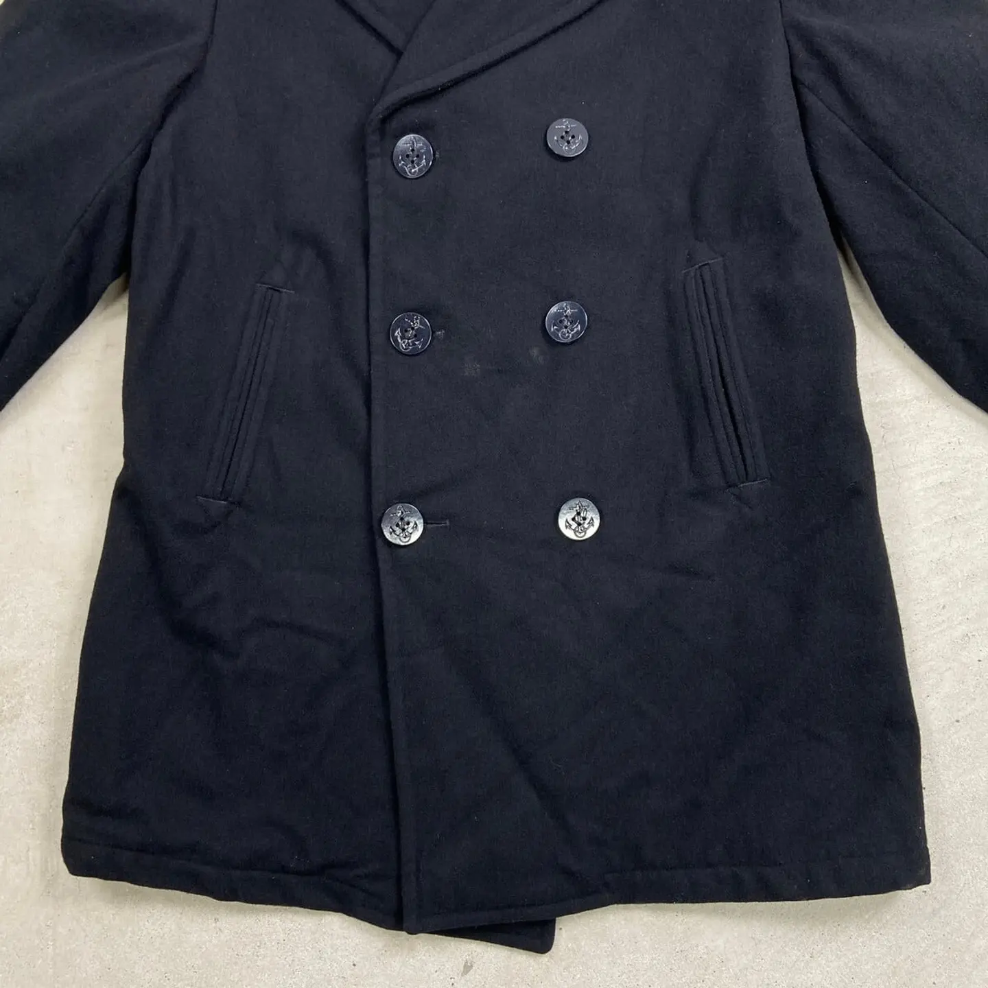 ■U.S.NAVY 米軍実品 DSCP Pコート ミリタリーコート メンズM~L相当 古着 ウール ピーコート ブラック 黒【コート】/ブラック 【サイズ】表記42L(実寸メンズM~L相当) ※計測値をご確認ください。 着丈…88 身幅…58.5 肩幅…53 袖丈…66 【生産国】 【素材】不明 おそらくウールかと思われます。 【状態】フロントの真ん中ボタン付近に薄汚れがあります。 画像にてご確認ください。 【c260127114】 ※古着は洗濯、検品などのケアを行っております。(新品・デッドストックは洗濯していません。) ※モニターの発色により実物と異なる場合がございます。予めご了承ください。 ※ 海外直輸入USED品になります。