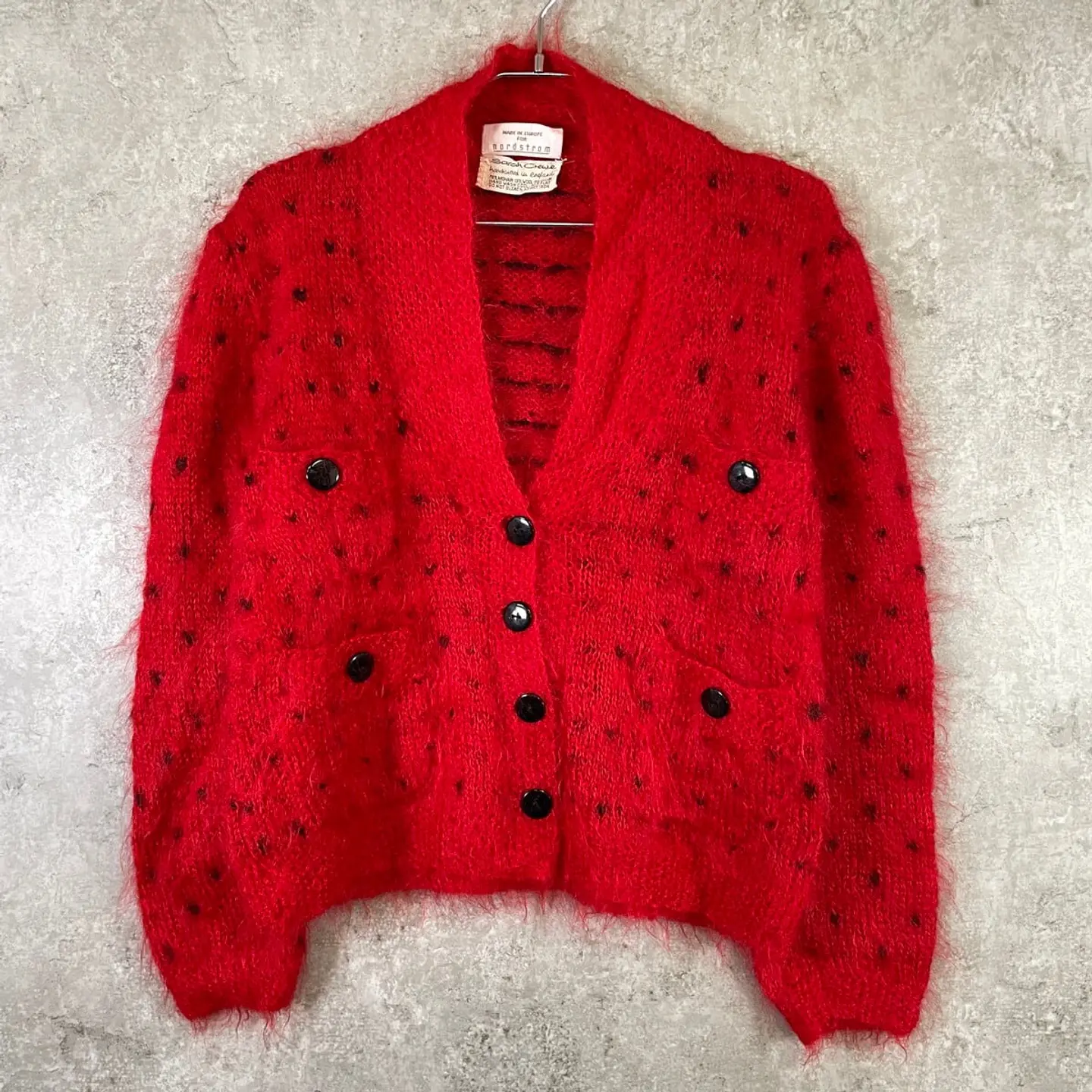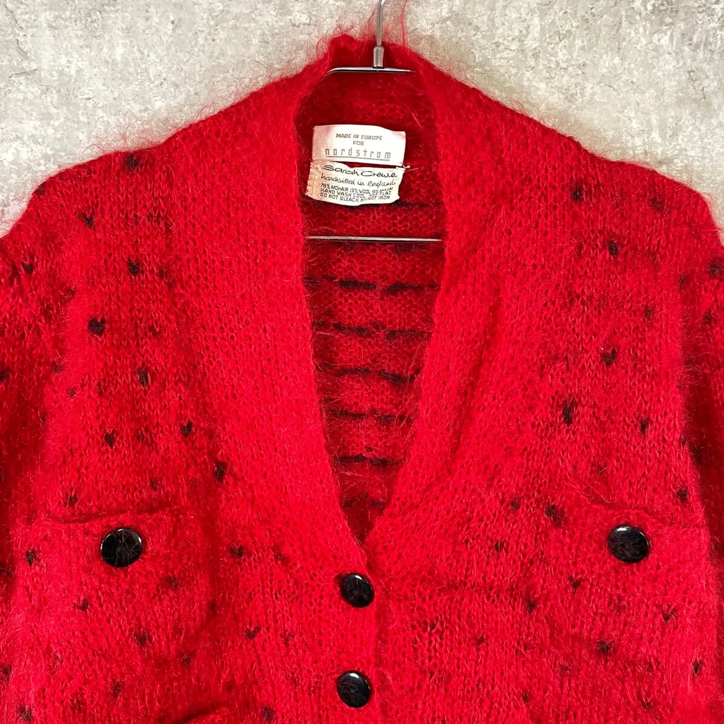 ■nord strom バーズアイ モヘアニットカーディガン レディースL相当 古着 VINTAGE ヴィンテージ 総柄 ユーロ 赤【ニットセーター】/レッド 【ブランド】nord strom 【サイズ】表記 不明(着用感レディースL相当) ※計測値をご確認ください。 着丈…54 身幅…53 肩幅…44 袖丈…59 【生産国】ヨーロッパ製 【素材】モヘア78% ウール13% ナイロン9% 【状態】 多少の使用感はございますが、 目立った汚れやダメージ等は無くまだまだ長くご愛用していただけます。 画像にてご確認ください。 【c260127001】 ※古着は洗濯、検品などのケアを行っております。(新品・デッドストックは洗濯していません。) ※モニターの発色により実物と異なる場合がございます。予めご了承ください。 ※ 海外直輸入USED品になります。