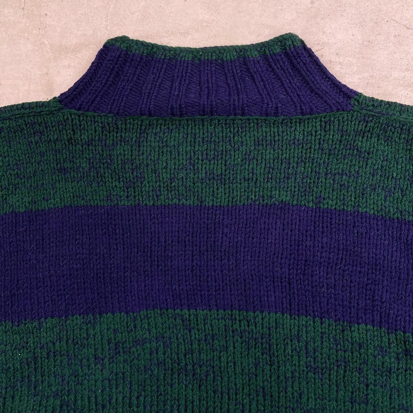 ■ビッグサイズ UNKNOWN モックネック ボーダー ニットセーター メンズ4XL相当 古着 スーパービッグサイズ 大きいサイズ ネイビー グリーン【ニットセーター】/マルチカラー 【ブランド】不明 【サイズ】不明(実寸メンズ4XL相当) ※計測値をご確認ください。 着丈…81.5 身幅…83.5 肩幅…80.5 袖丈…58 【生産国】不明 【素材】不明(おそらくアクリル×コットンかと思われます) 【状態】裾に一部裂けているところがございます。 画像にてご確認ください。 【c260126106】 ※古着は洗濯、検品などのケアを行っております。(新品・デッドストックは洗濯していません。) ※モニターの発色により実物と異なる場合がございます。予めご了承ください。 ※ 海外直輸入USED品になります。
