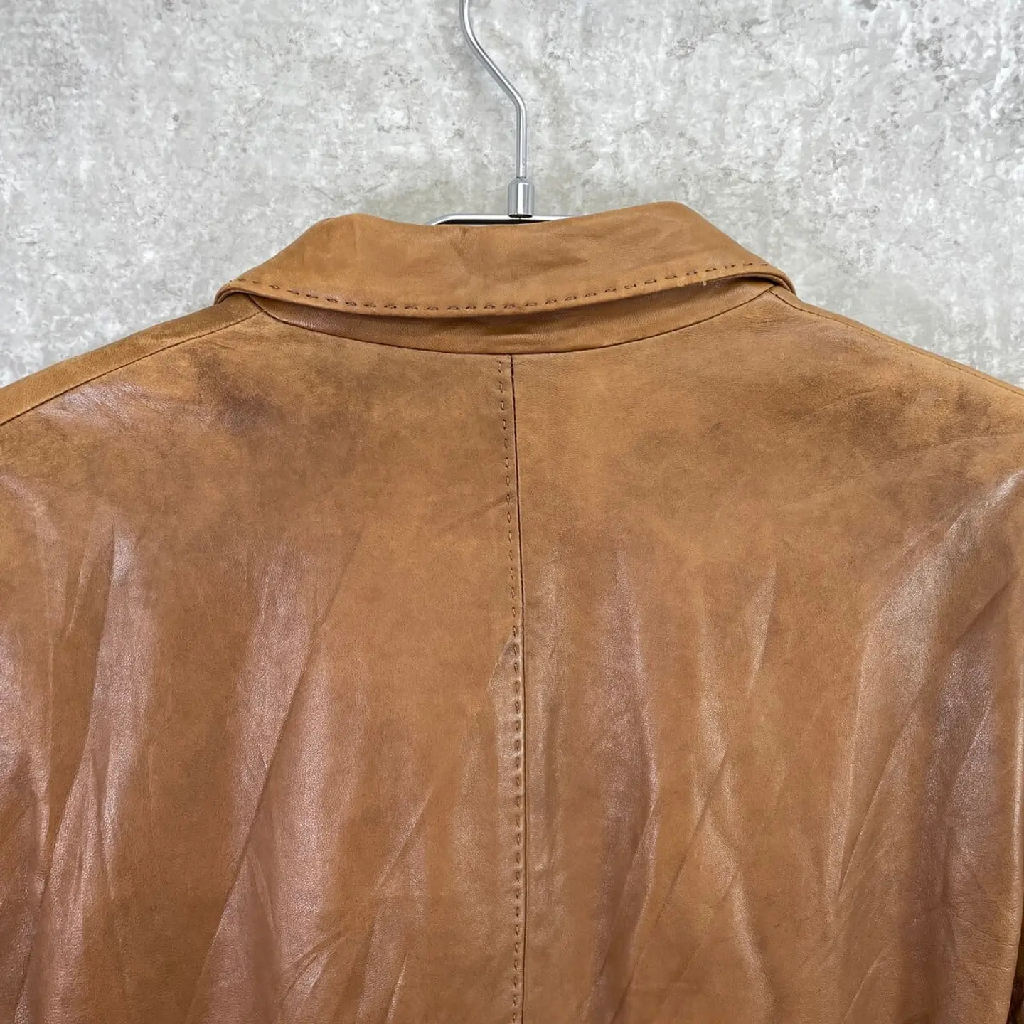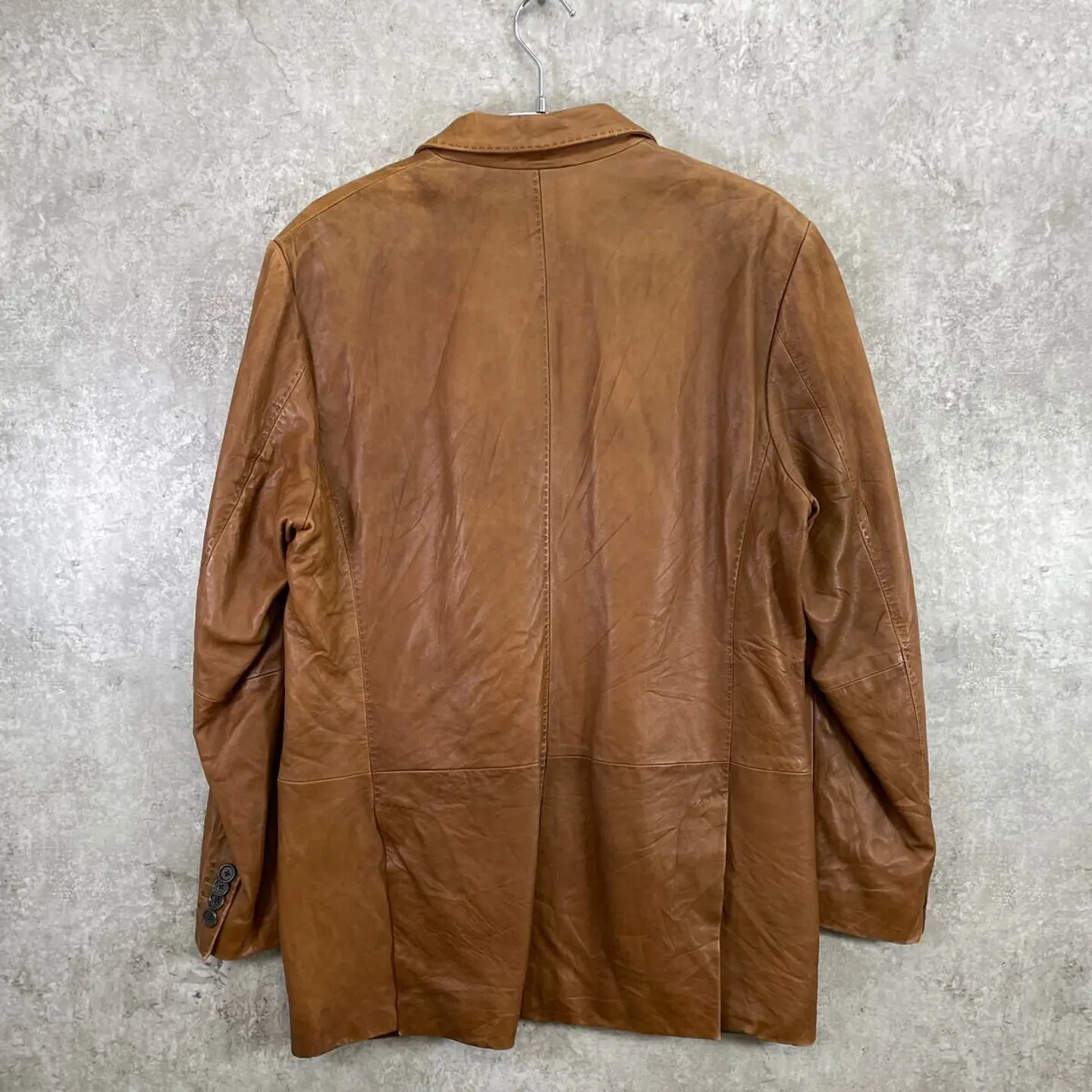 ■BANANA REPUBLIC バナナリパブリック レザー テーラードジャケット メンズXL相当 古着 バナリパ キャメルブラウン 茶色【レザージャケット】/ブラウン 【ブランド】BANANA REPUBLIC バナナリパブリック 【サイズ】表記 42(着用感メンズXL相当) 計測値をご確認ください。 着丈…78 身幅…54 肩幅…47 袖丈…63 【素材】 本革レザー 【状態】全体的にレザー特有の擦れや色あせが御座います。 右袖のボタンに1か所割れがございます。 画像にてご確認ください。 【c260123003】 ※古着は洗濯、検品などのケアを行っております。(新品・デッドストックは洗濯していません。) ※モニターの発色により実物と異なる場合がございます。予めご了承ください。 ※ 海外直輸入USED品になります。