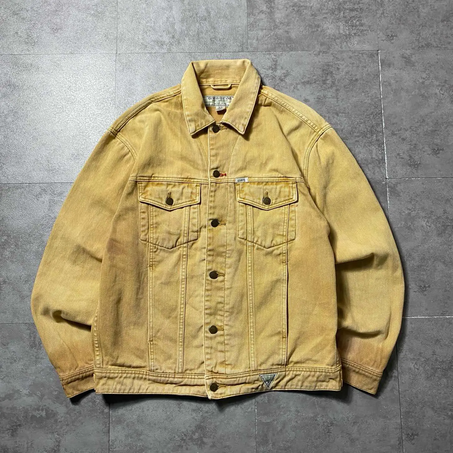 90's GUESS JEANS バックプリント ブラウン デニムジャケット
