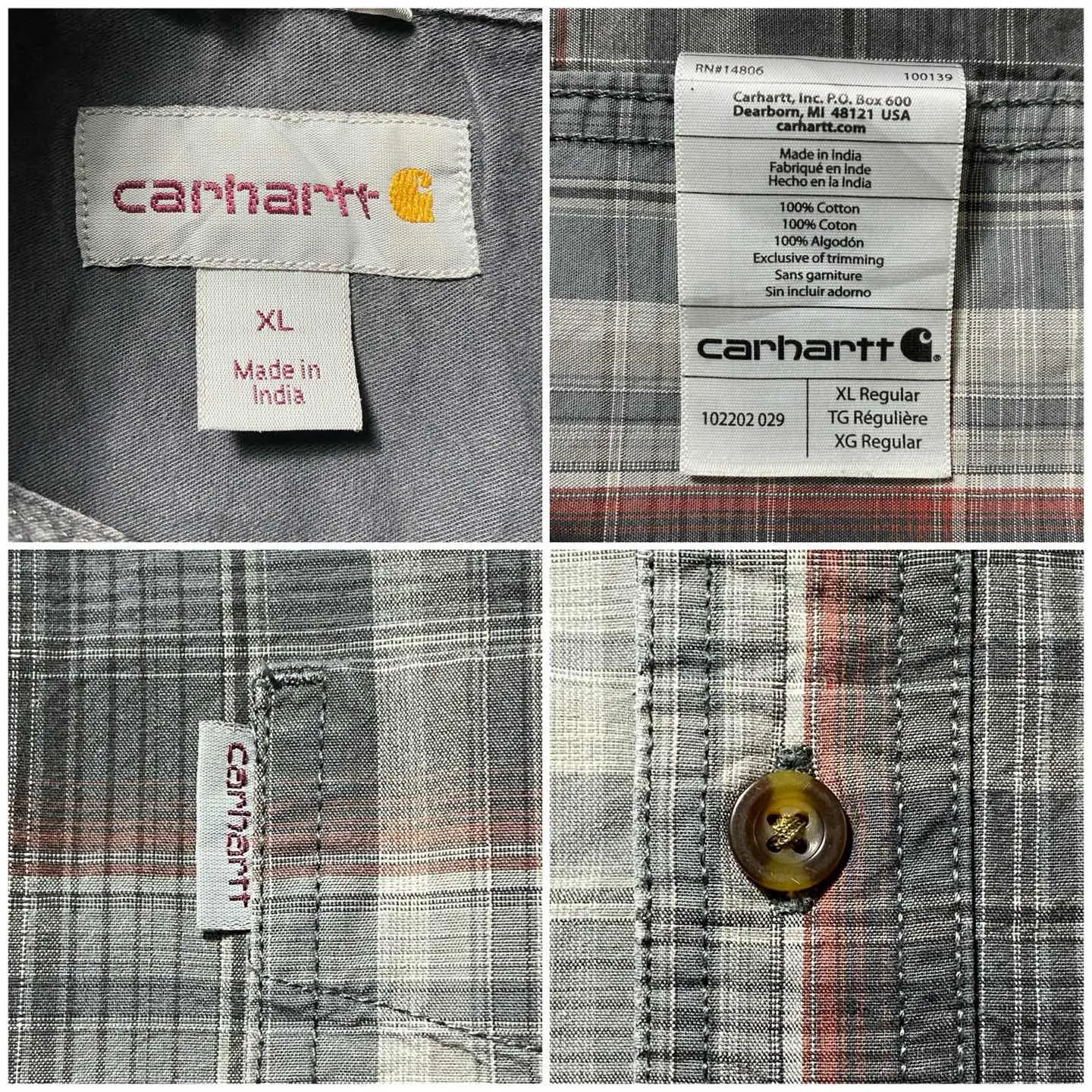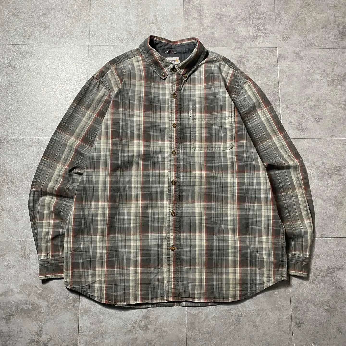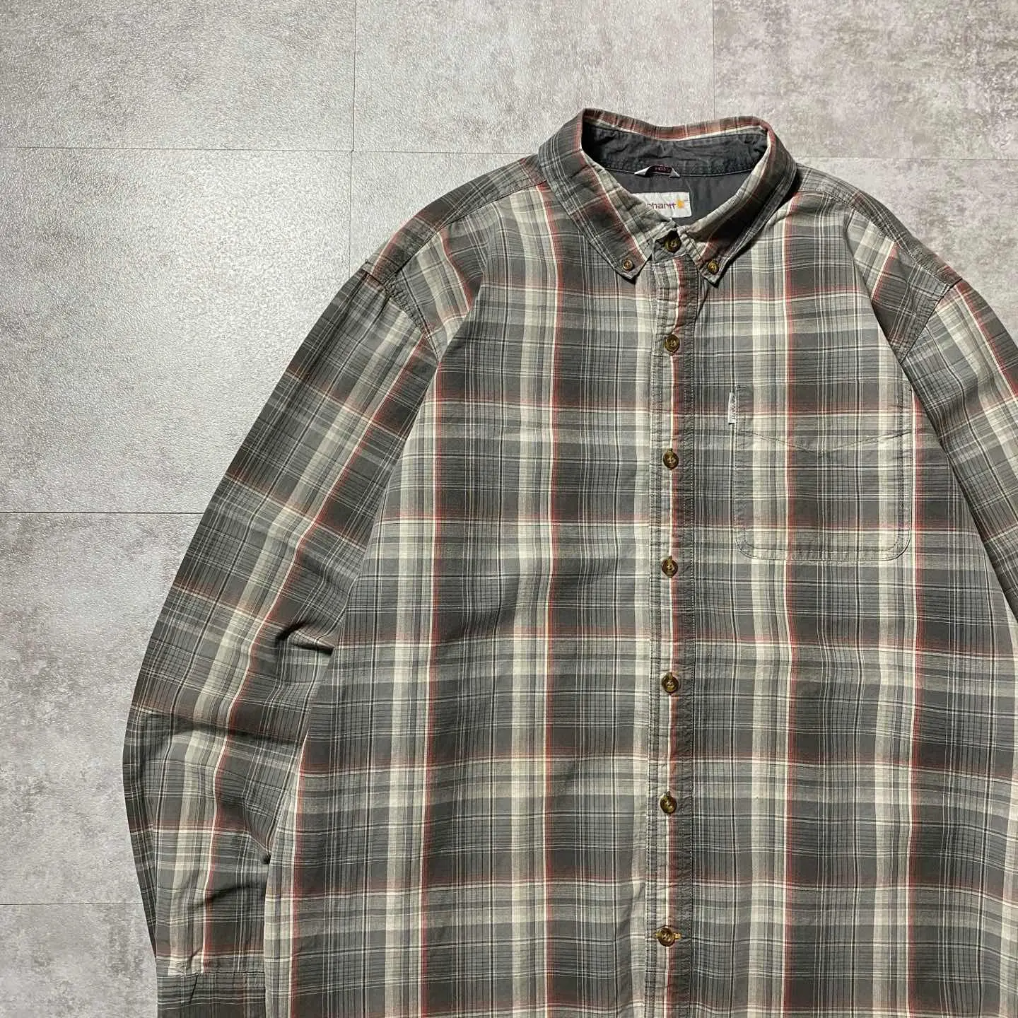 【XL】carharttカーハート チェック総柄 胸ポケット ボタンダウンシャツ