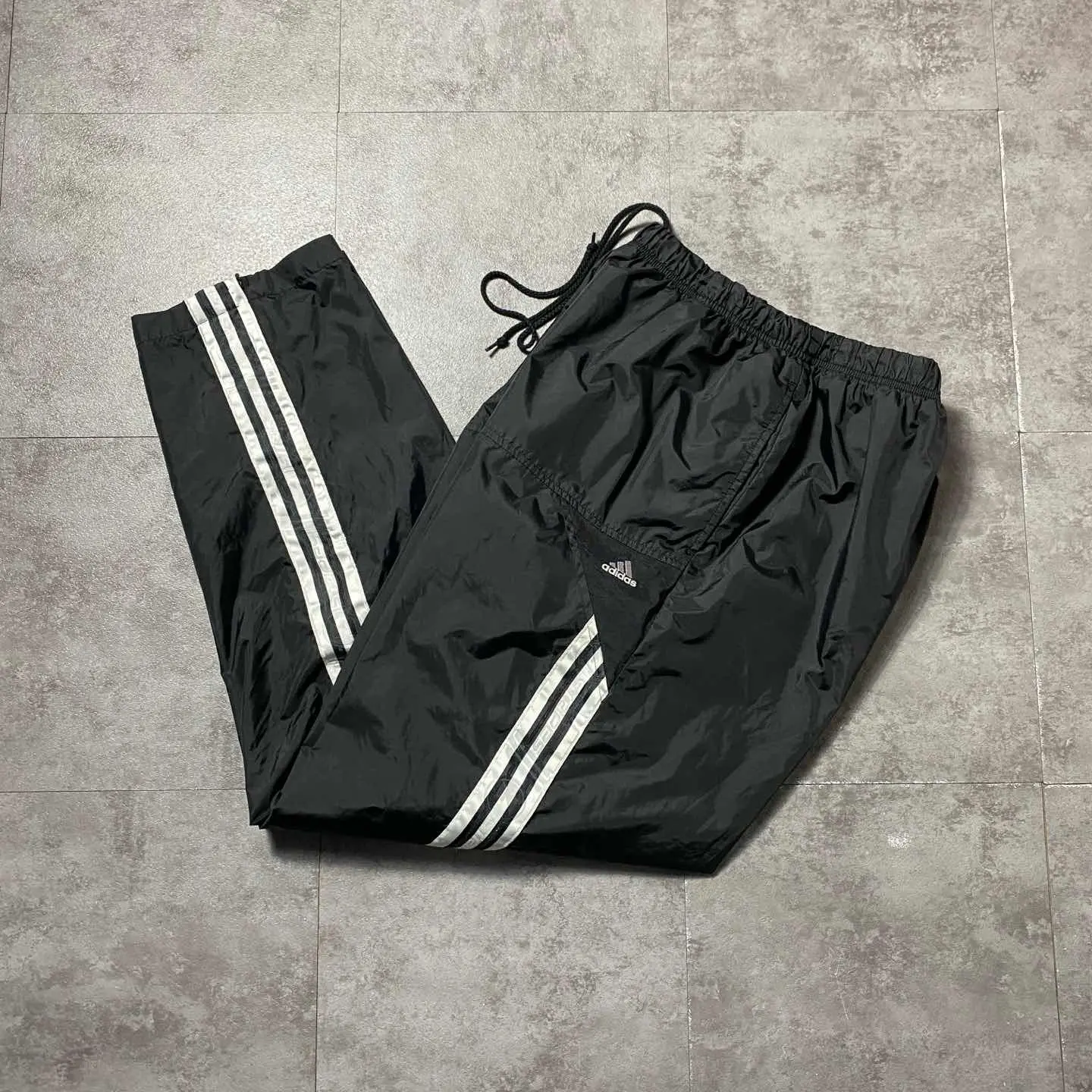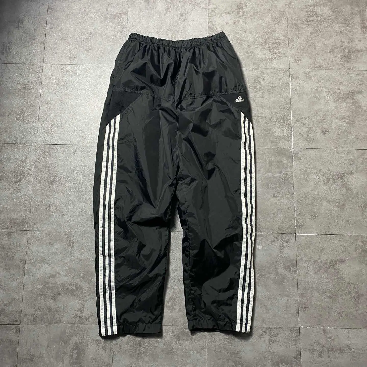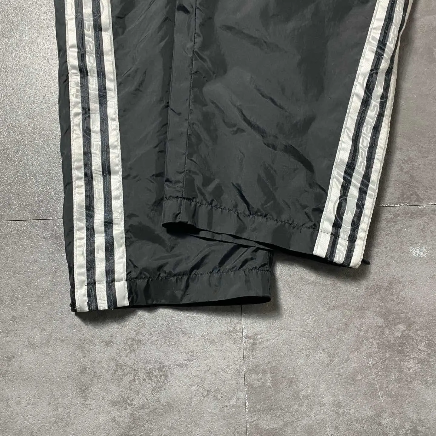 00s adidas 刺繍パフォーマンスロゴ ストライプ ナイロントラックパンツ