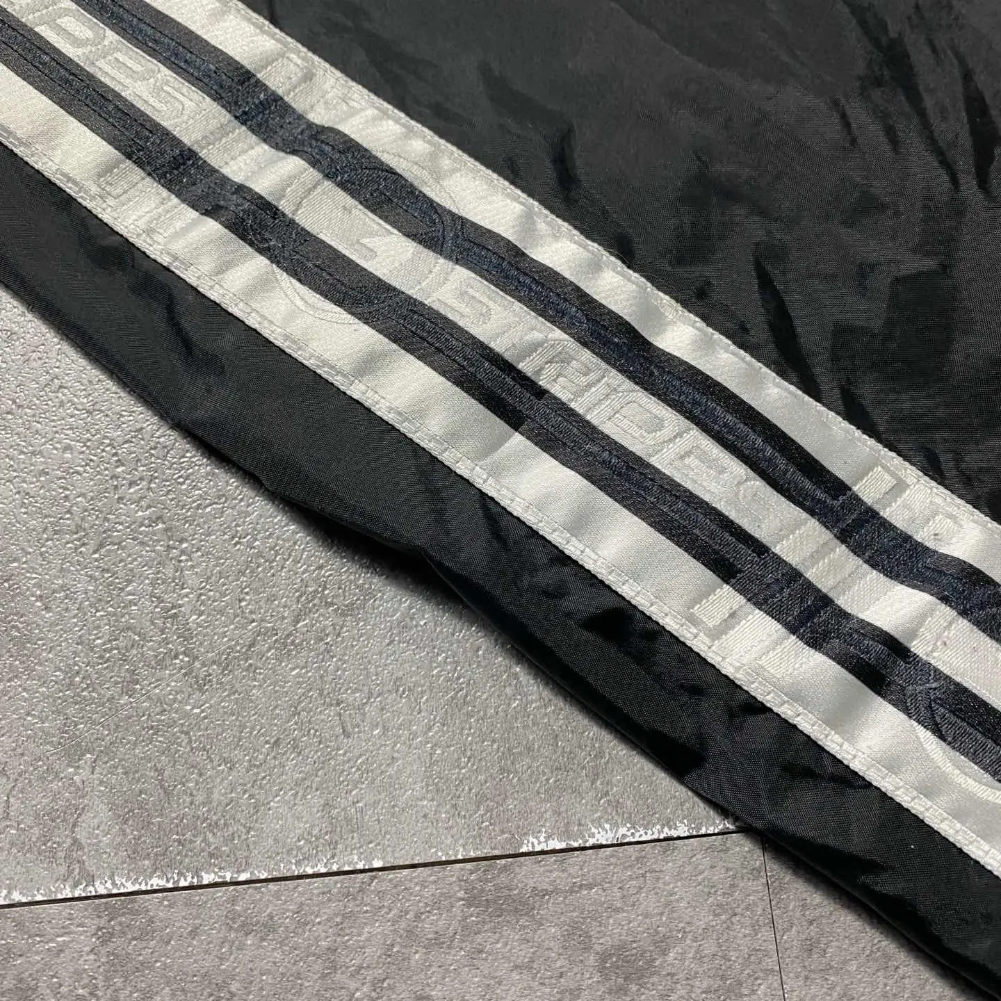 90s adidas 刺繍パフォーマンスロゴ ストライプ ナイロントラックパンツ