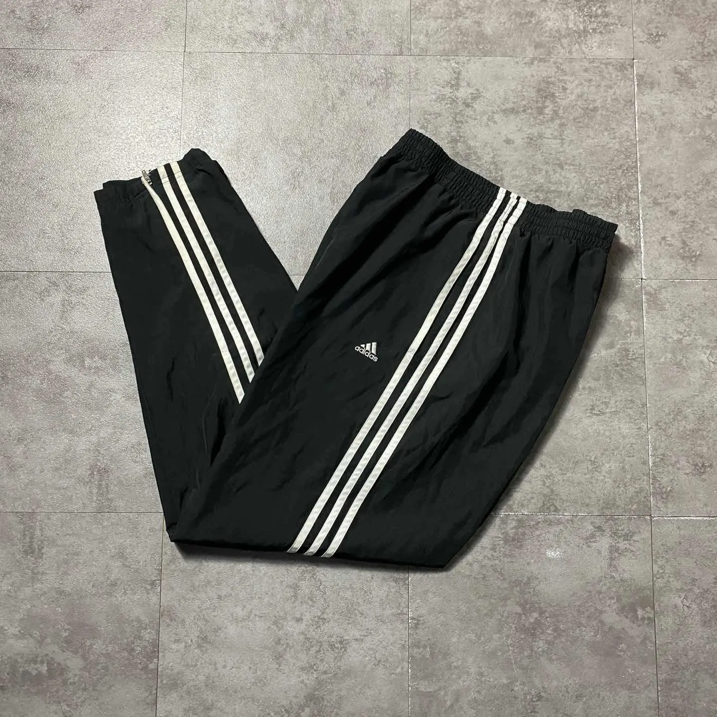 90s adidas 刺繍パフォーマンスロゴ ストライプ ナイロントラックパンツ
