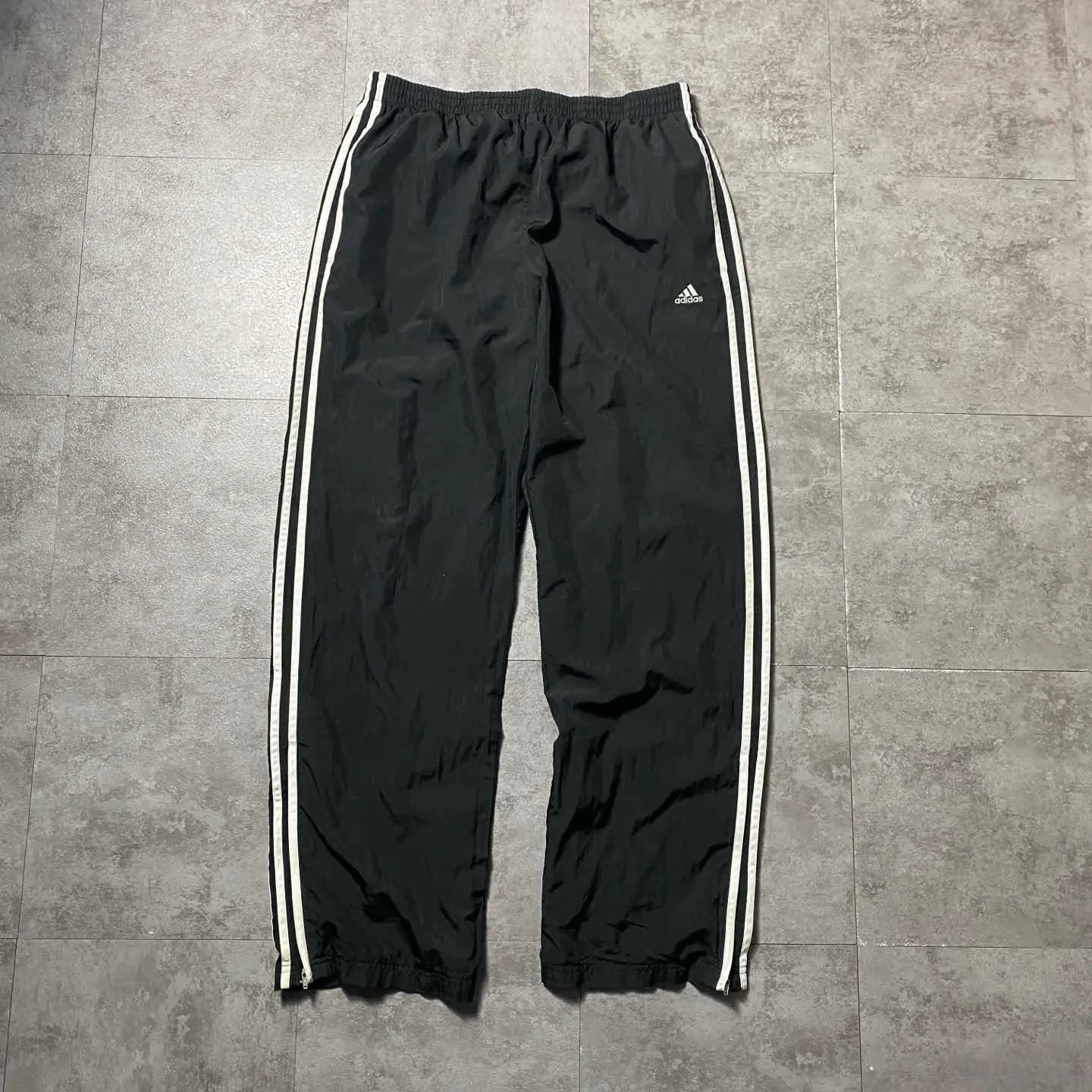 00s adidas 刺繍パフォーマンスロゴ ストライプ ナイロントラックパンツ