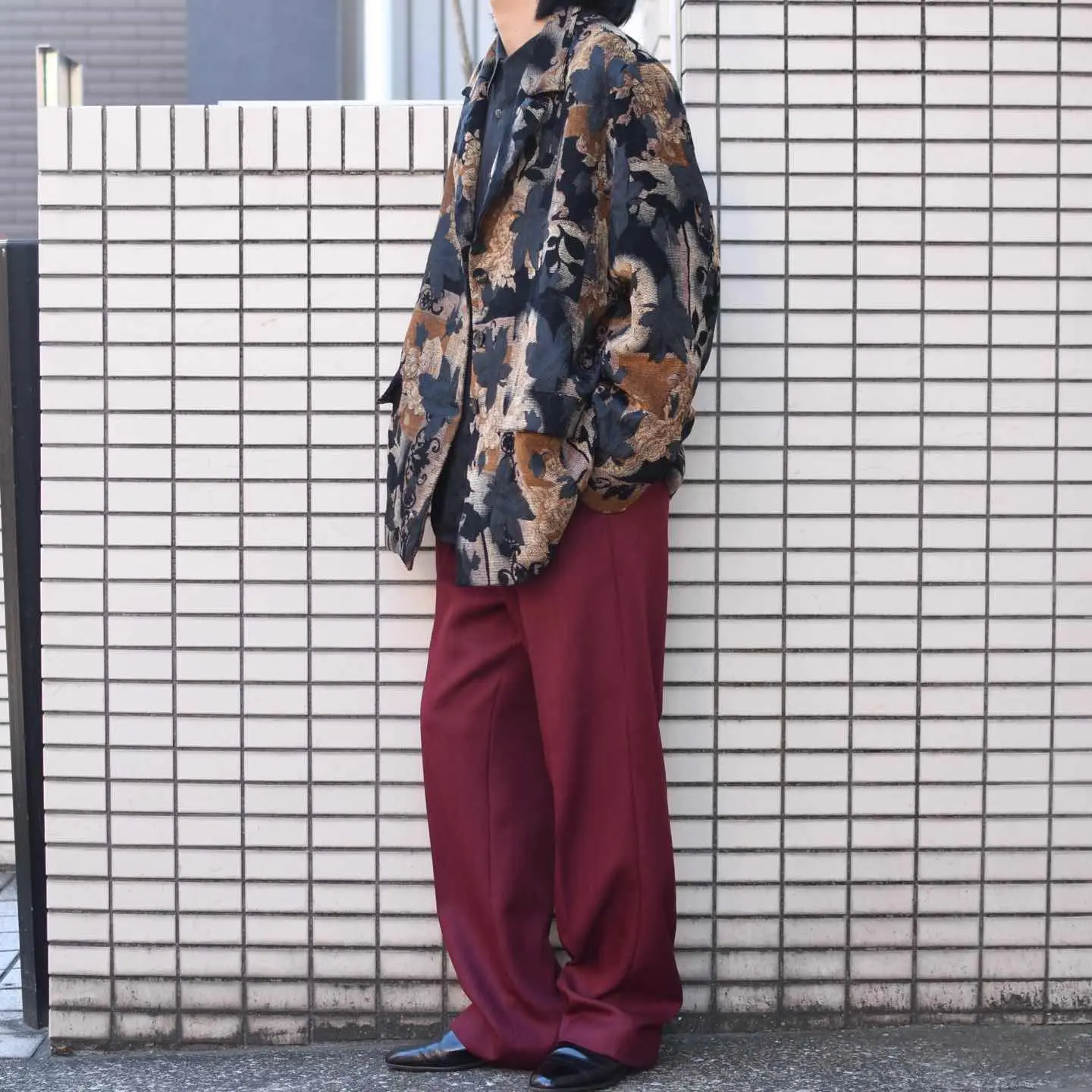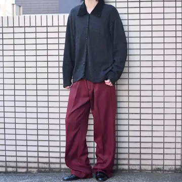 SIZE:33 ウエスト84cm 総丈106cm 股下77cm わたり37cm 裾幅25cm fabric/poly 着用画像 173cm/58kg 個人的に、カラースラックスの中でも 落とし込みやすさを感じるワインレッド。 そしてこちらはヘリンボーン織りで 仕立てられているからこそ、より上品さが 際立ったスラックスです。 裾まで太さを残した太いシルエットと、 そんな上品さのある印象のバランスが◎ 柄シャツやドレスシャツなど、きれいに纏めた スタイリングにこんなパンツはどうでしょう。 ※裾上げ等のレングス直しにつきましては、 購入前に、必ずご連絡お願い致します。 ※撮影状況により、実物と多少色が異なる 場合がございます。 ※古着を取り扱っているため、気づかない汚れや ほつれがある場合がございます。 ※サイズは着用感で選んでおり、 表記サイズは説明欄の最初に記載しております。 old vintage ヴィンテージ used 80's 90's アメリカ古着 ユーロ古着 POLO RALPH LAUREN Eddie Bauer OLD GAP LANDS' END ランズエンド LLBean エルエルビーン オールドギャップ エディーバウアー ラルフローレン ブルックスブラザーズ Brooks Brothers バーガンディ ワイドパンツ スラックス 赤 レッド などがお好きな方 #vintage #old #used #90s #80s #古着 #ヴィンテージ #アメリカ古着 #ユーロ古着 #LLBean #エルエルビーン #EddieBauer #エディーバウアー #oldgap #オールドギャップ #LANDSEND #ランズエンド #NAUTICA #ノーティカ #ラルフローレン #POLORALPHLAUREN #ブルックスブラザーズ #BrooksBrothers #ワイドパンツ #カラースラックス #タックパンツ #スラックス