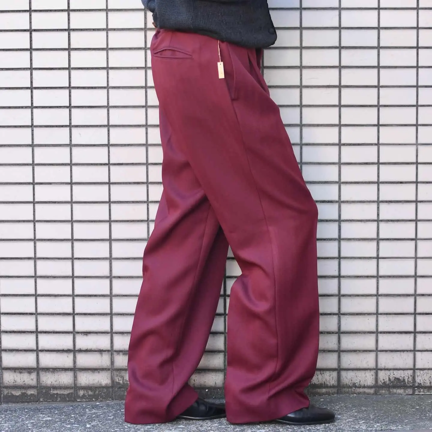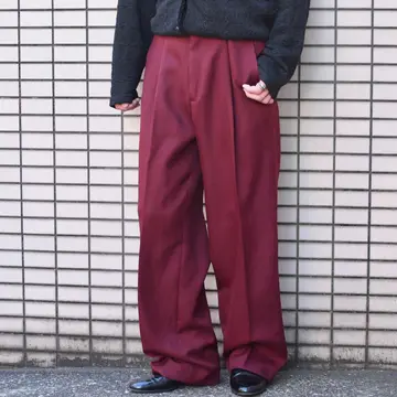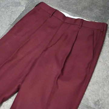 古着 ヘリンボーン織り ワインレッド カラースラックス タックパンツ
