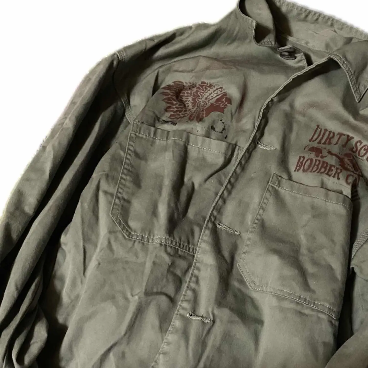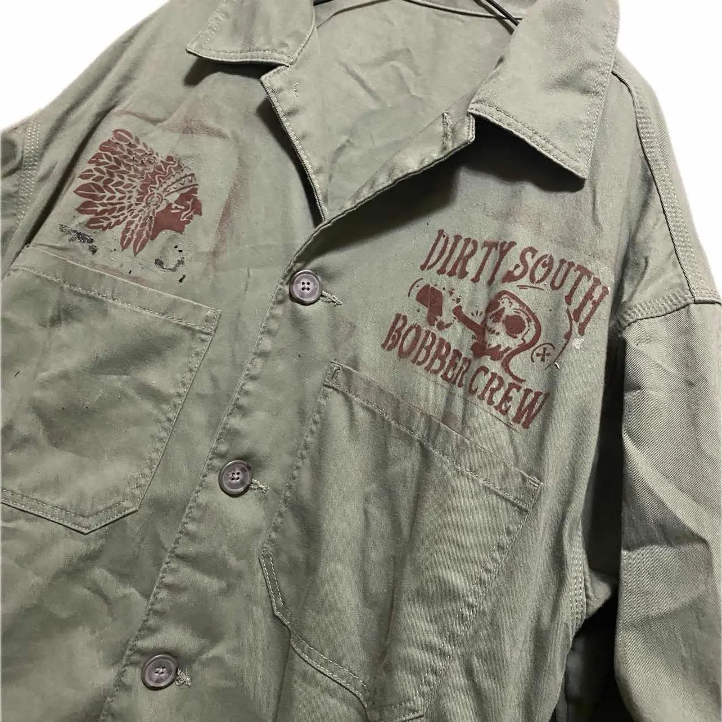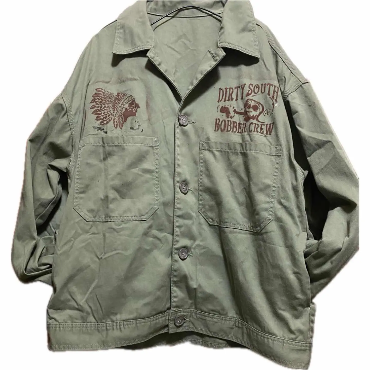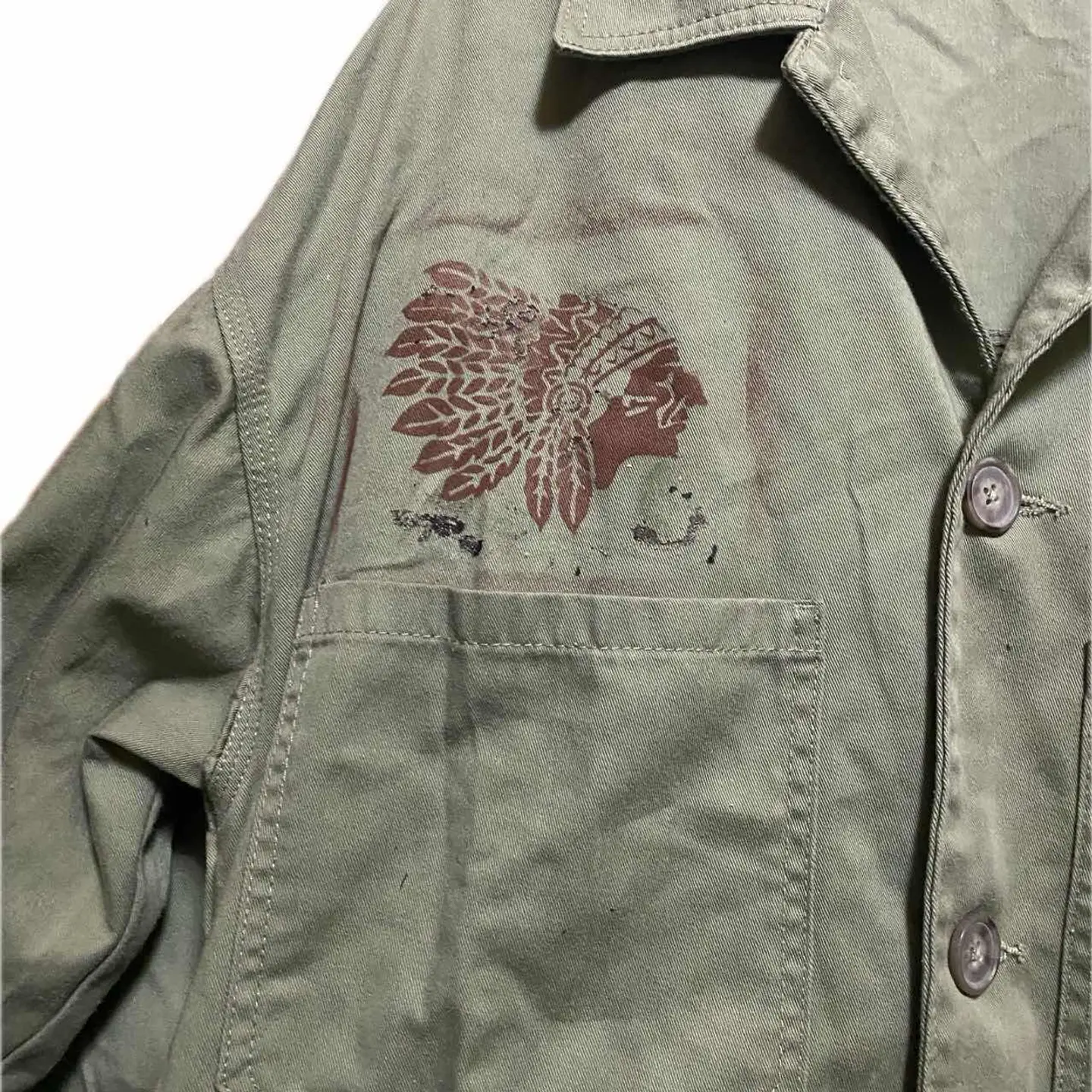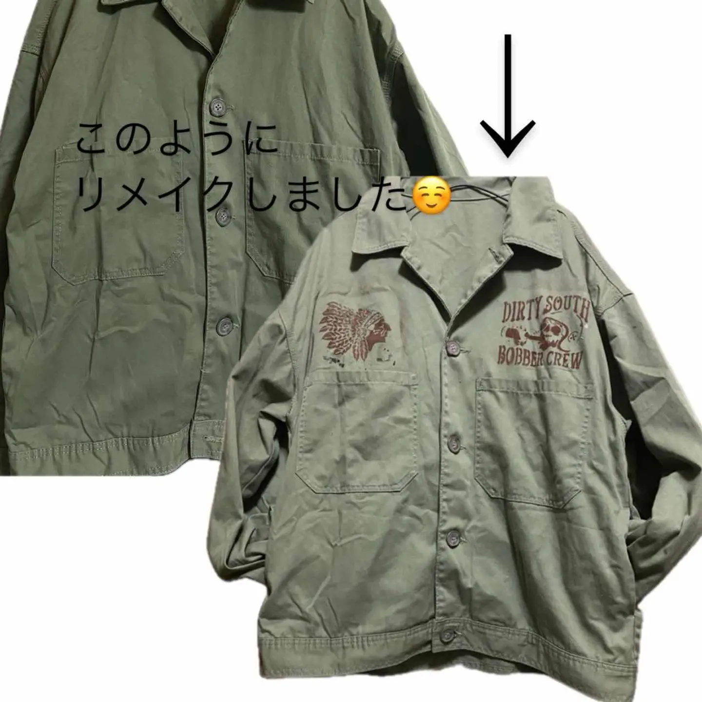 90s サンプル リメイク UTILITYシャツ ボバー、インディアン F 90年代の80年をイメージして作られたゆるだぼのボックスシルエットにユーティリティに入るのですが、サイドにポケットを施すことで、胸にニコのポケット サイド二個ポケットで、 ユーティリティの弱点を払拭した。 デザイナーネイティブのサンプル品となります。それをせっかくこんなにシルエットがかっこいいんだから、リメイクしたらもっとかっこよくならないかなと思ってしてみました。 ボバースモーキースカル インディアン スプレーアート施し 世界に1つの年中活躍するユーティリティシャツを作ってみましたのでコーディネートのように少しレイヤードを決めれるのか、ボックスシルエットの魅力を生かし、カジュアルなベージュのリメイクボトムでニューバランスを決めたらなんかかっこよくなったので、参考にしてもらえたらかなり嬉しいです。そしてゲットしてもらえたらさらに嬉しいです。笑 ちょっとふざけて書いており見えるかもしれませんが、かなり手間をかけて丁寧に仕上げましたので、確実にあなたの教えを格上げする事は保証いたします。自信作です。 ▷color◁ オリーブグリーン【ミリタリーカラーだが、このカラーもnativeオリジナル】 ※ブラウザで異なる場合ありますがかなり実物には、近づけてます、 ▷size◁ 平置き片面採寸【㎝表記】 表記size F oneoff マテタグは、1点ものは、無い、義務が、ないから、量産には、義務がある、 着丈/70 身幅/66 肩幅/63Boxds 袖丈 /65↓ ボタンあるから、長さ関係ない、 DSは袖はハンガー採寸 ※多少の誤差は理解下さい 170/Mジャスト体型の私が着て、✔️参考に ジャスト オーバーサイズ ビックサイズ✔︎ 【素材】 コットン 【状態】 美品 検品、洗濯、検品で、3回チェックして発送しますので、ご安心して、お買い求め下さい!!