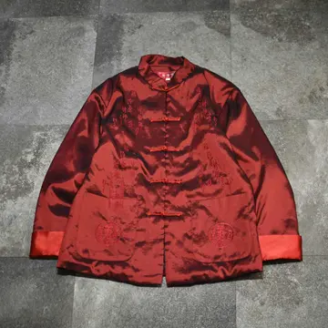 古着 チャイナジャケット キルティングジャケット ジャケット デザイン レッド