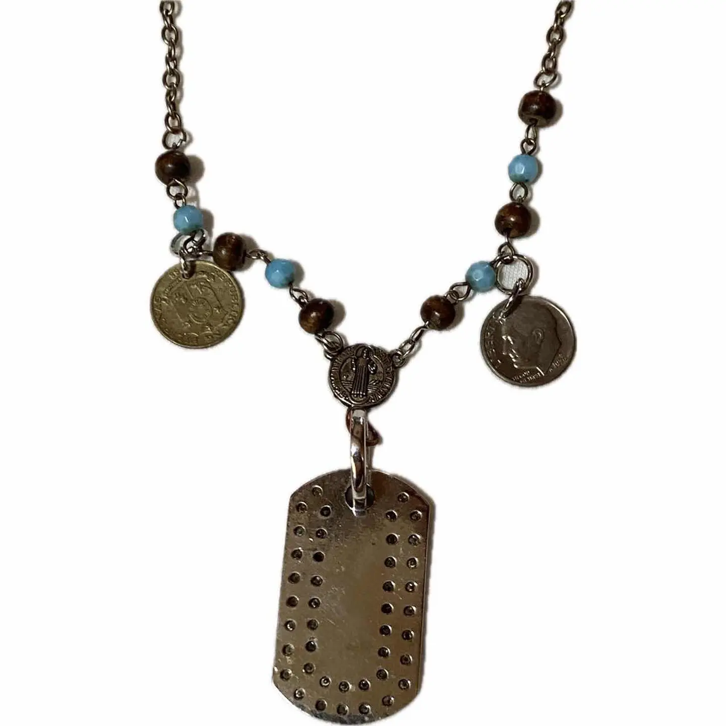 90s 世界に1つ o.e.m 975silver 75年コイン ネックレス 【サイズ】【material】は、 長々となりそうなんで、画像にわかりやすく明記しました、サイズや、着画参考なったら、即ゲット、最高級925とかやかましい、と言わんばかりの、975silverまでつかってる、 カッコ良すぎる!! 迷わずゲット、季節かわる、何で、個性だします。 【アクセです!!】 o.e.m.90s 特注、被るわけない、全てオリジナルですね、 まず少し不思議な話をしましょう。アクセサリーは良いものを身につけると運気まで上がるんすよ、 なんか、不思議なんすけどね、あっそ、って方は、うん、カッコいいから、しらんで、いいよ、です、 とにかくかぶるわけがないんです。全て特注でつくられた個性的なエラーコインまで使っている半端ないオペラタイプのネックレスです。ごめんね。でもほんとに説明すら何を言っていいかわからないからなかなかなりそう。なんで画像ご確認ください。 トラッドスタイルにアクセントで軽くアクセを決めるだけでめちゃくちゃかっこよくなりますので、 これ持っていったほうがいいですね。シルバーとかガンガン価格あがってるんだし、迷う必要ないっすね、 ちなみに、特注で作られているやつなので、エクスプレスのパーツまで作られている使われているめちゃくちゃぜいたくなアクセサリーです。この価格で手に入るのはほんとに奇跡に近いと思いますよ。 それでは検討してくださいと言いたいですが、検討する必要ないんで、即ゲットください。 【状態】 最高、最強!!