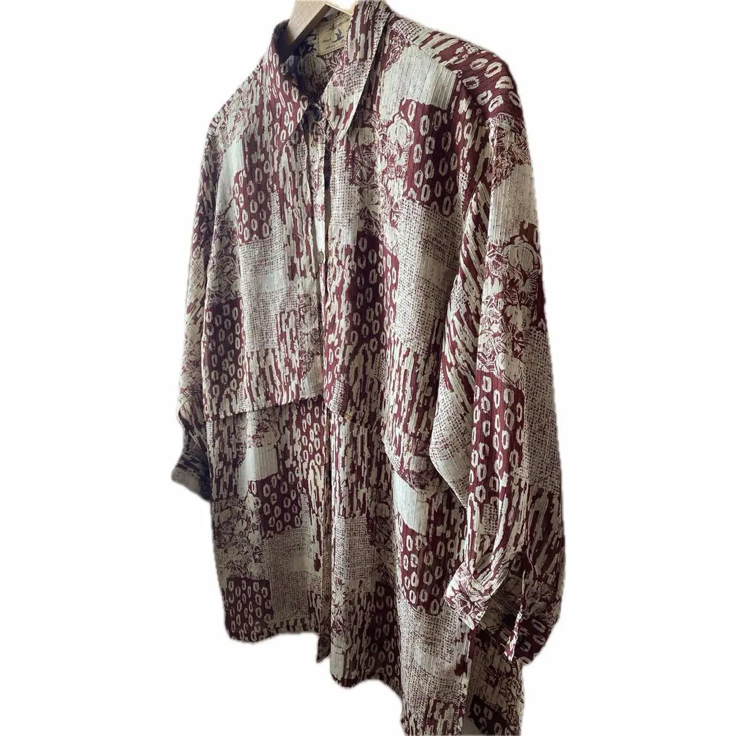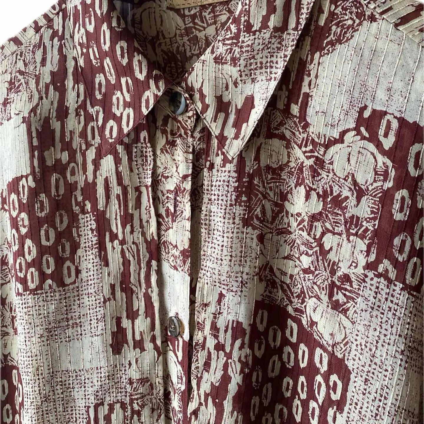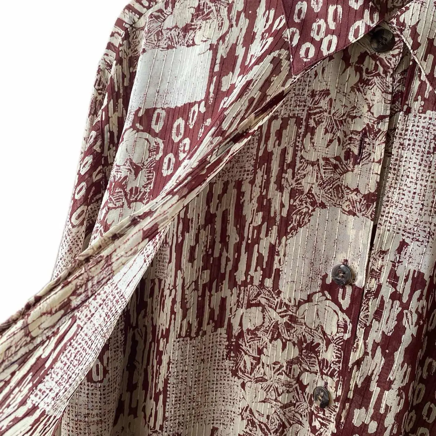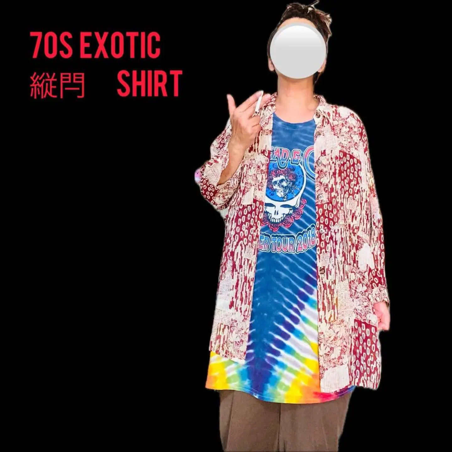 70s ハの字襟 エキゾチックジオメトリー、オーバーサイズシャツ 閂