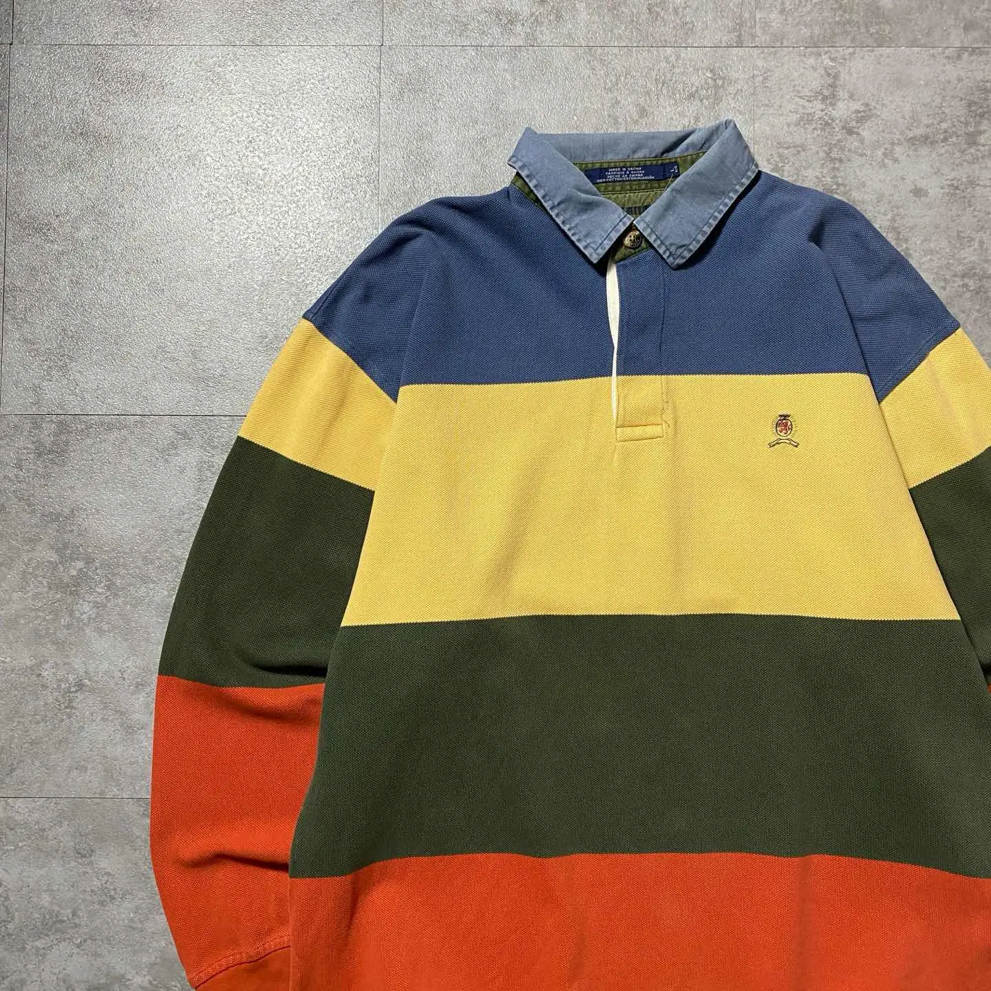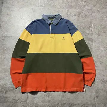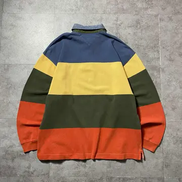90sトミーヒルフィガー 刺繍ワンポイント マルチボーダー ロンT ポロシャツ