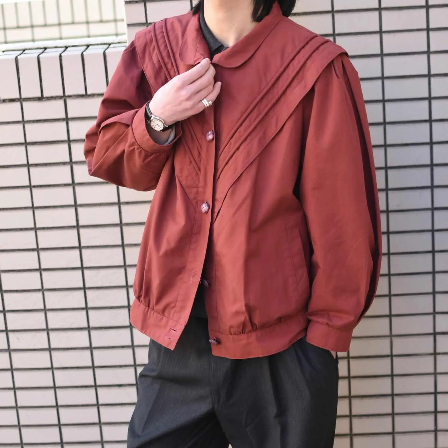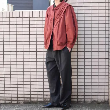 古着 デザイン ブルゾン ワインレッド 赤 レッド バーガンディ