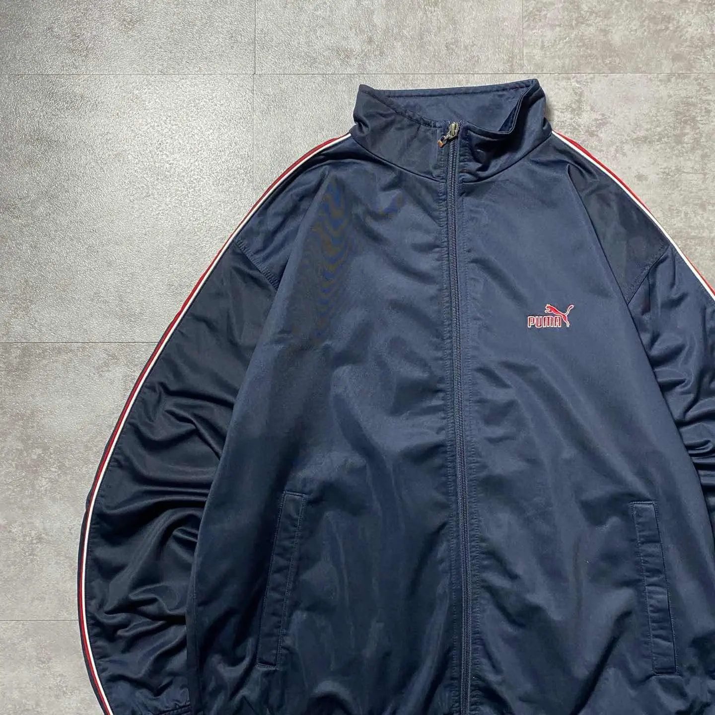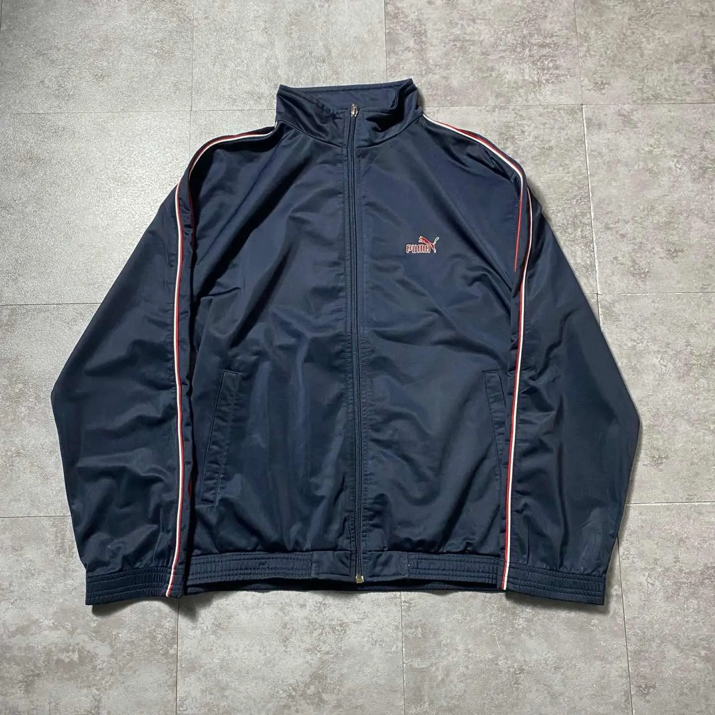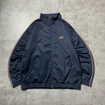 90s PUMA 刺繍ワンポイント サイドライン ネイビー トラックジャケット