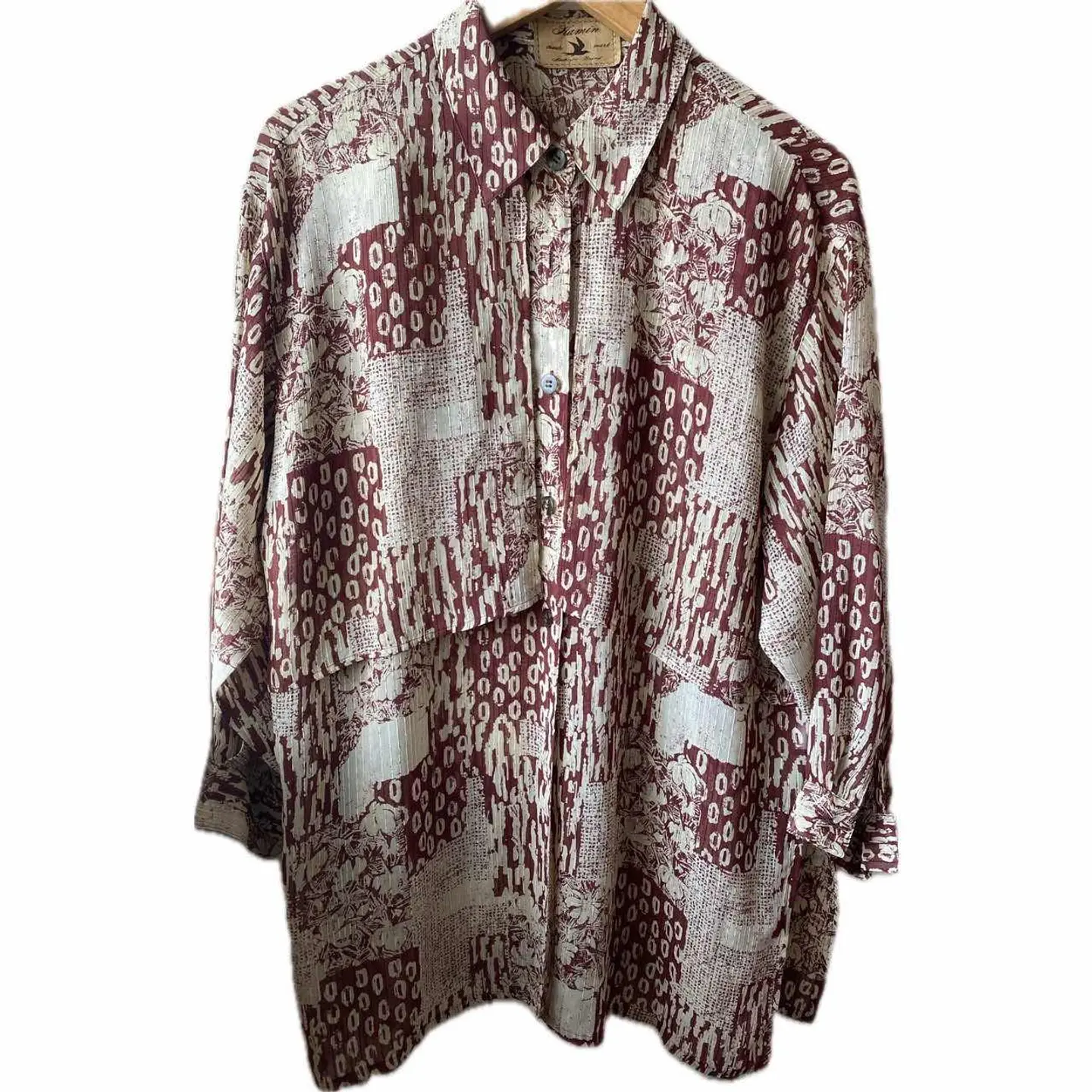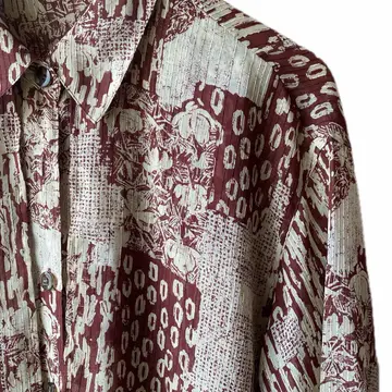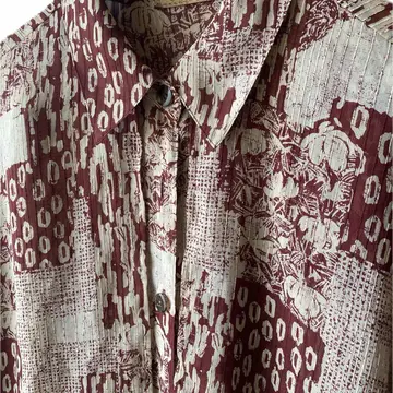 70s 【極上美品】テクスチャー凹凸 年中活躍 サイケ幾何学シャツ F テクスチャー素材 凹凸の様々な技法をライトに仕上げ さらにこれだからかっこいい サイケデリックのジオメトリー 柄が乗るというマルチな技法をふんだんに施した 70年代のヴィンテージのシャツです 長めの着丈 なのに 珍しい オーバーサイズタックインを決めるだけで 一気に エキゾチックなのにセンス抜群のコーディネートになりますので ぜひ参考になりましたらよろしくお願いいたします まる確実にあなたのコーディネートはこれで格上げすることは保証いたします ▷color◁ 総柄壁掛けが、実物 ※ブラウザで異なる場合ありますがかなり実物には、近づけてます、 ▷size◁ 平置き片面採寸【㎝表記】 表記size F 着丈/79 身幅/65 肩幅/56DS 袖丈 /64 DSは袖はハンガー採寸 ※多少の誤差は理解下さい 170/Mジャスト体型の私が着て、✔️参考に ジャスト オーバーサイズ ビックサイズ✔︎ 【素材】 テクスチャー 【状態】 美品 検品、洗濯、検品で、3回チェックして発送しますので、ご安心して、お買い求め下さい!!