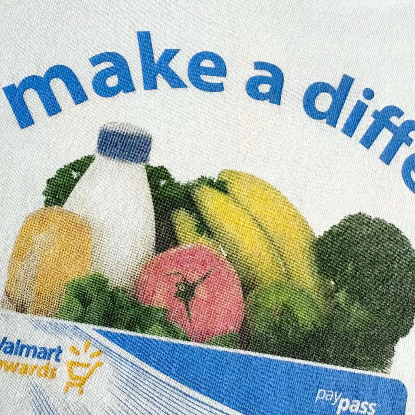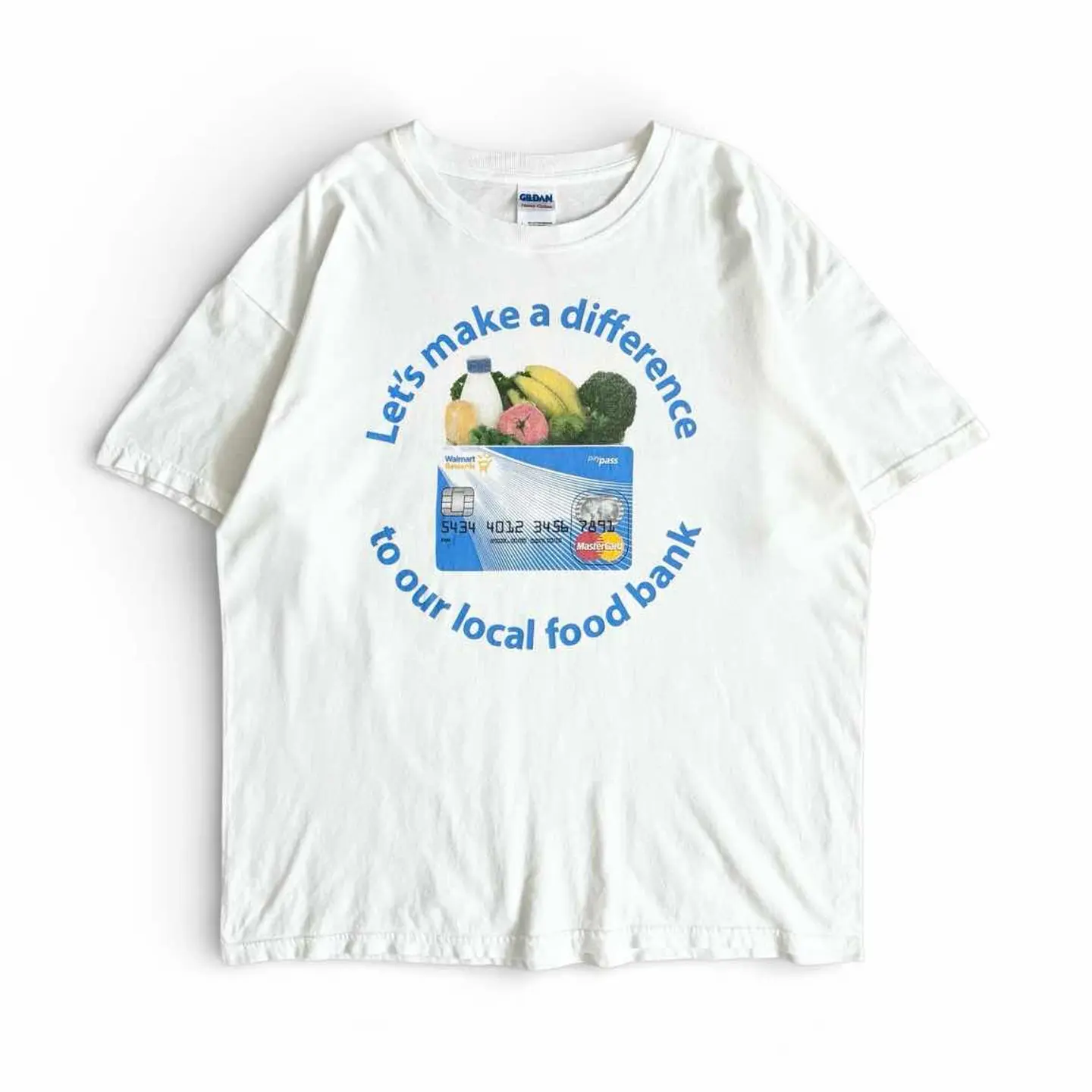 ○商品説明 GILDAN ウォルマートのフードバンク支援キャンペーン Tシャツ。 マスターカード× 新鮮な野菜や果物、ミルクが 大胆にプリントされています。 企業らしさ全開の一枚となっております。 Let's make a difference to our local food bank 地域のフードバンクに貢献しよう 面白いですね。笑 気になった方は是非。 ○サイズ 表記L 平置き ・肩幅56cm ・身幅56cm ・袖丈19cm ・着丈67cm ○商品の状態B A:使用感がほとんどなく、汚れやシミもなし B:多少使用感はあるが、汚れやシミも少ない C:使用感があり、汚れやシミがある D:使用感があり、大きな汚れや破れあり #GILDAN#ギルダン#Walmart#ウォルマート#MasterCard#マスターカード#Tシャツ