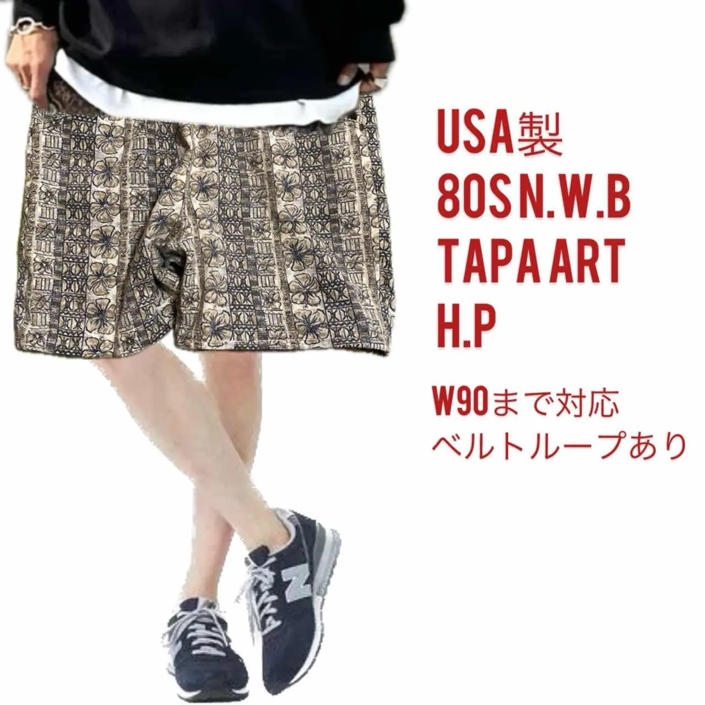 80s USA製N.W.B custom タパ柄 膝上ハーフパンツ 1点物、