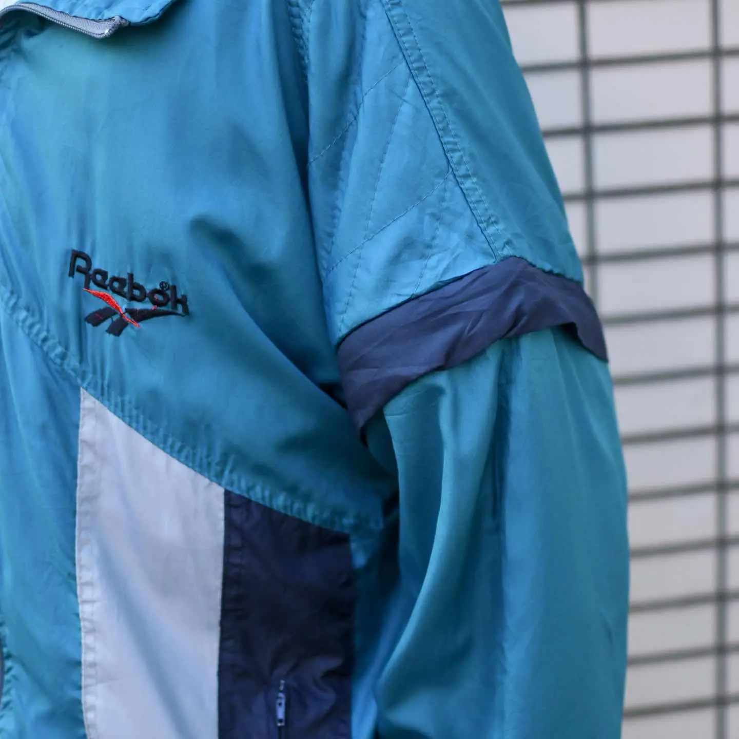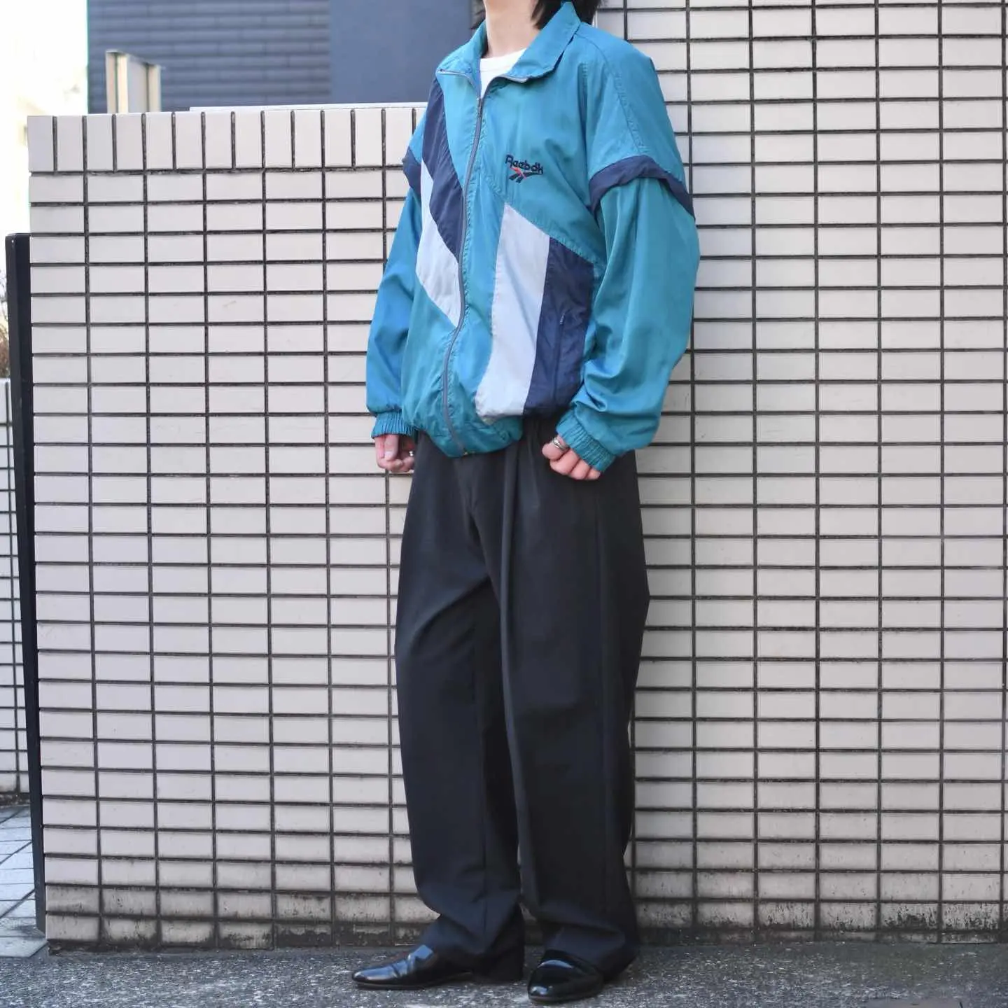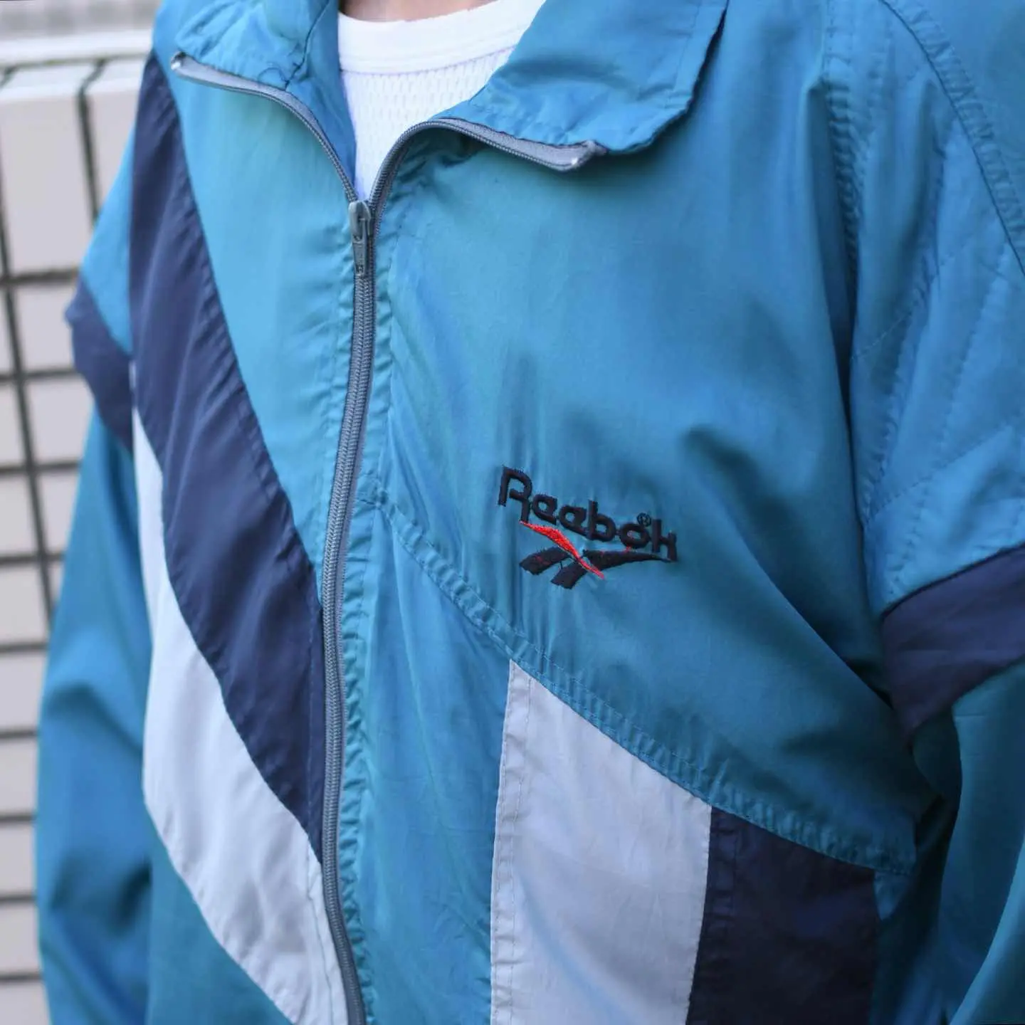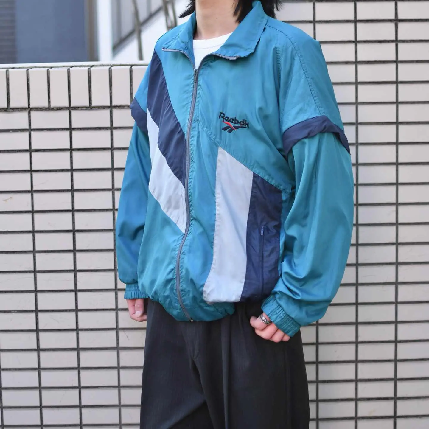 古着 Reebok デザイン ナイロンジャケット ジャケット ブルゾン 水色