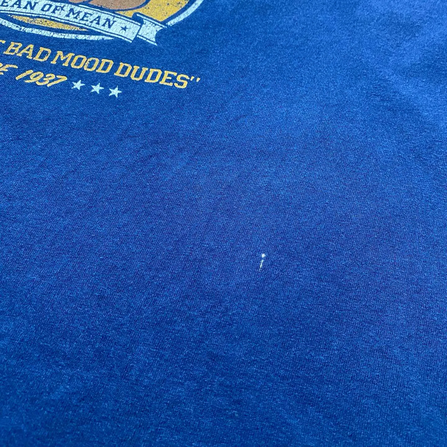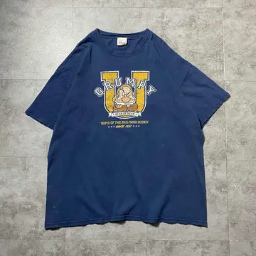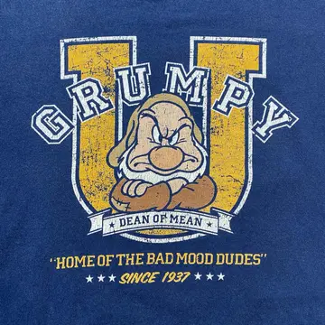 ◯ Explanation ◯ ディズニー作品『白雪姫と七人のこびと』より、“最も気難しいキャラクター”として知られるGRUMPY(グランピー)を落とし込んだ一枚。 フロントには大学ロゴを模した「GRUMPY U」デザイン。 “DEAN OF MEAN(意地悪学部長)”や “HOME OF THE BAD MOOD DUDES(不機嫌なやつらの巣窟)”といった皮肉の効いたワードが並び、キャラクターの性格をユーモラスに表現しています。 ネイビーボディにイエロー×ホワイトの配色は王道ながら、ひび割れたプリントの風合いがヴィンテージライクな雰囲気をプラス。 ストリートにも馴染む、抜け感のあるディズニーアイテムです。 サイズはXLで、ゆったりとしたシルエット。 ワイドパンツやデニムとの相性も抜群で、 一枚でもレイヤードでも活躍する万能な一着。 “可愛さ”ではなく“毒っ気”で魅せるディズニー。 人と被らないキャラクターTを探している方におすすめです。 ○Size○ 表記→XL ・着丈72 ・身幅63 ・肩幅58 ・袖丈20 (cm) ○Color○ ・ネイビー ○Material○ ・100%コットン ○Condition○ ・フロントロゴ付近に薄汚れ箇所あり ・左脇下小さなほつれあり ○Caution○ 当店で取り扱っている商材は全て『古着』となっております。 そのため、多少の状態難(ほつれ、傷、汚れ、リブの伸び、使用感、擦れ、色あせ、etc)がある場合がございます。 新品同様の完璧なお品物をお求めの方は当店でのお買い物を控えて頂きますよう宜しくお願いします。 また、購入された商品に関しましては、購入日時から起算して『72時間以内に』発送手続きの方を取らせて頂きます。 お急ぎの場合は購入前に当店オンラインストアの方にお問い合わせ頂きますよう宜しくお願いします。 26/362