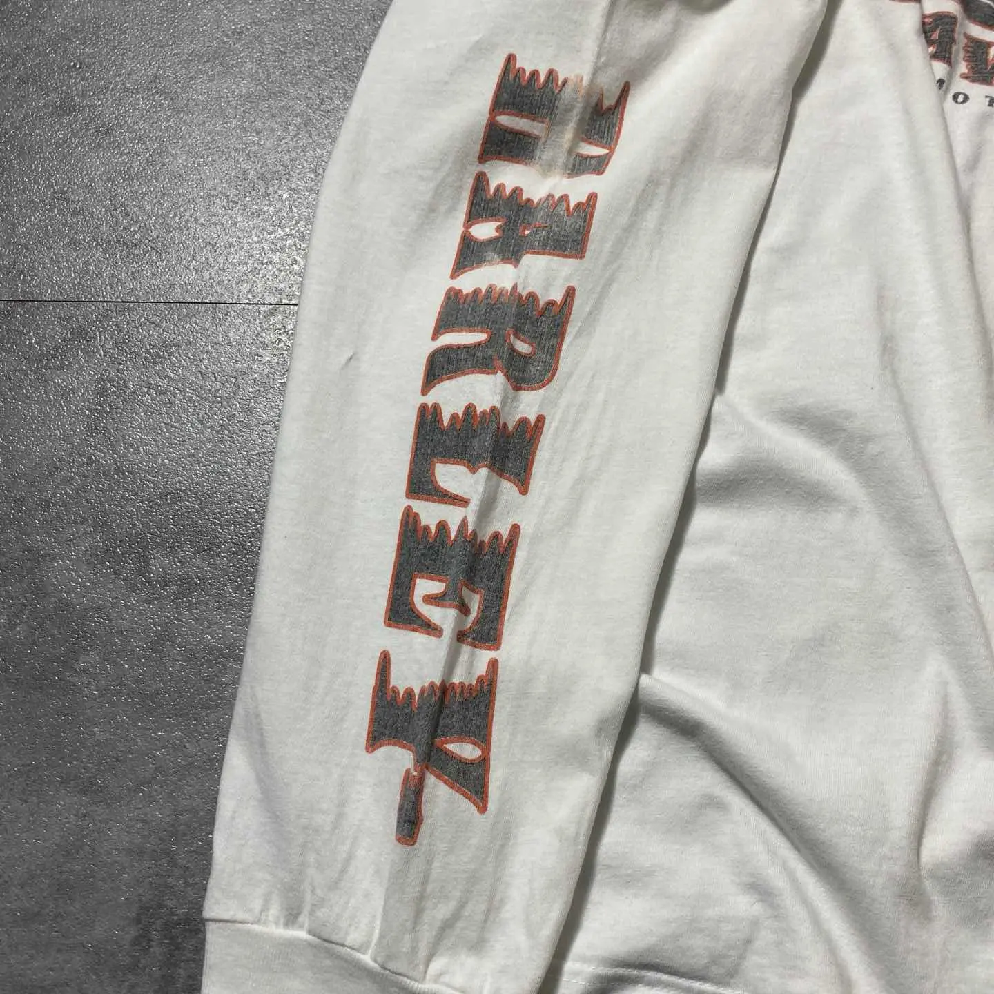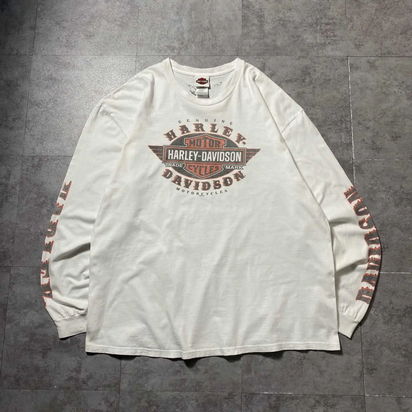 00s ハーレーダビッドソン スカル センター刺繍ロゴ 白 Tシャツ ロンT