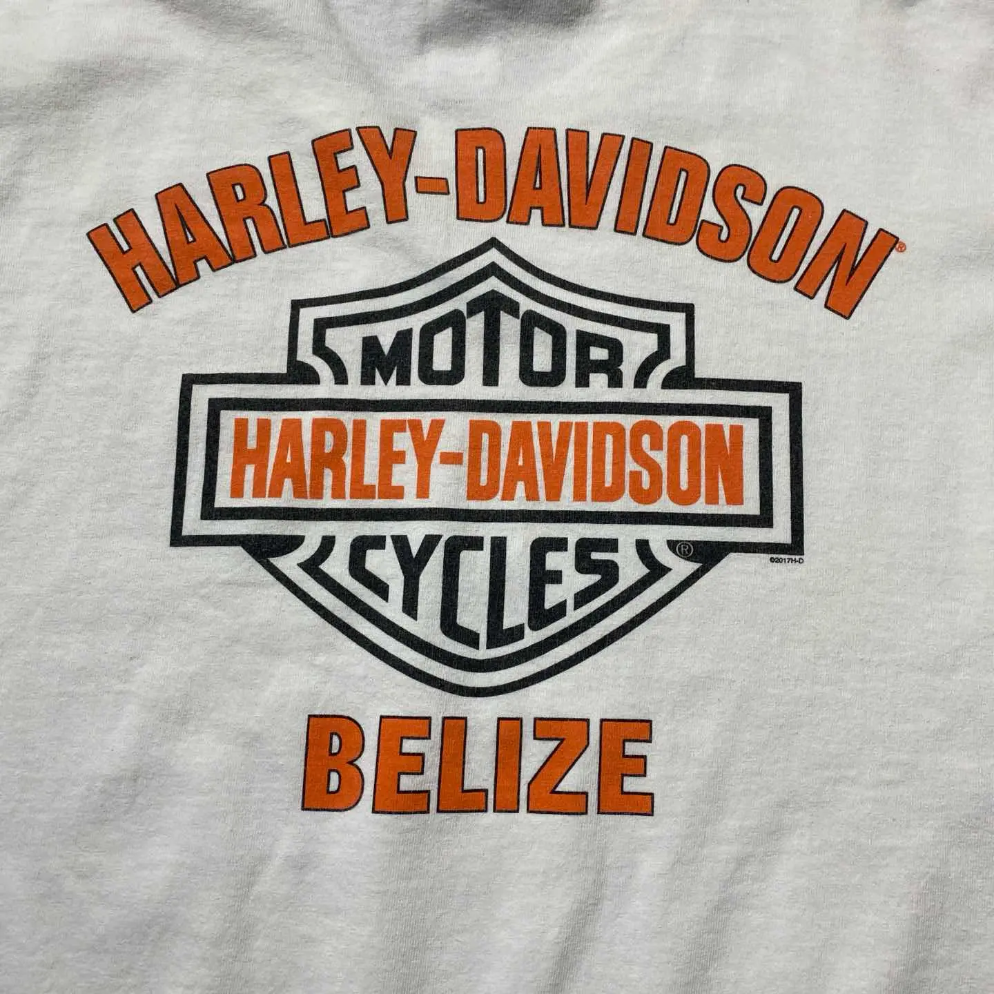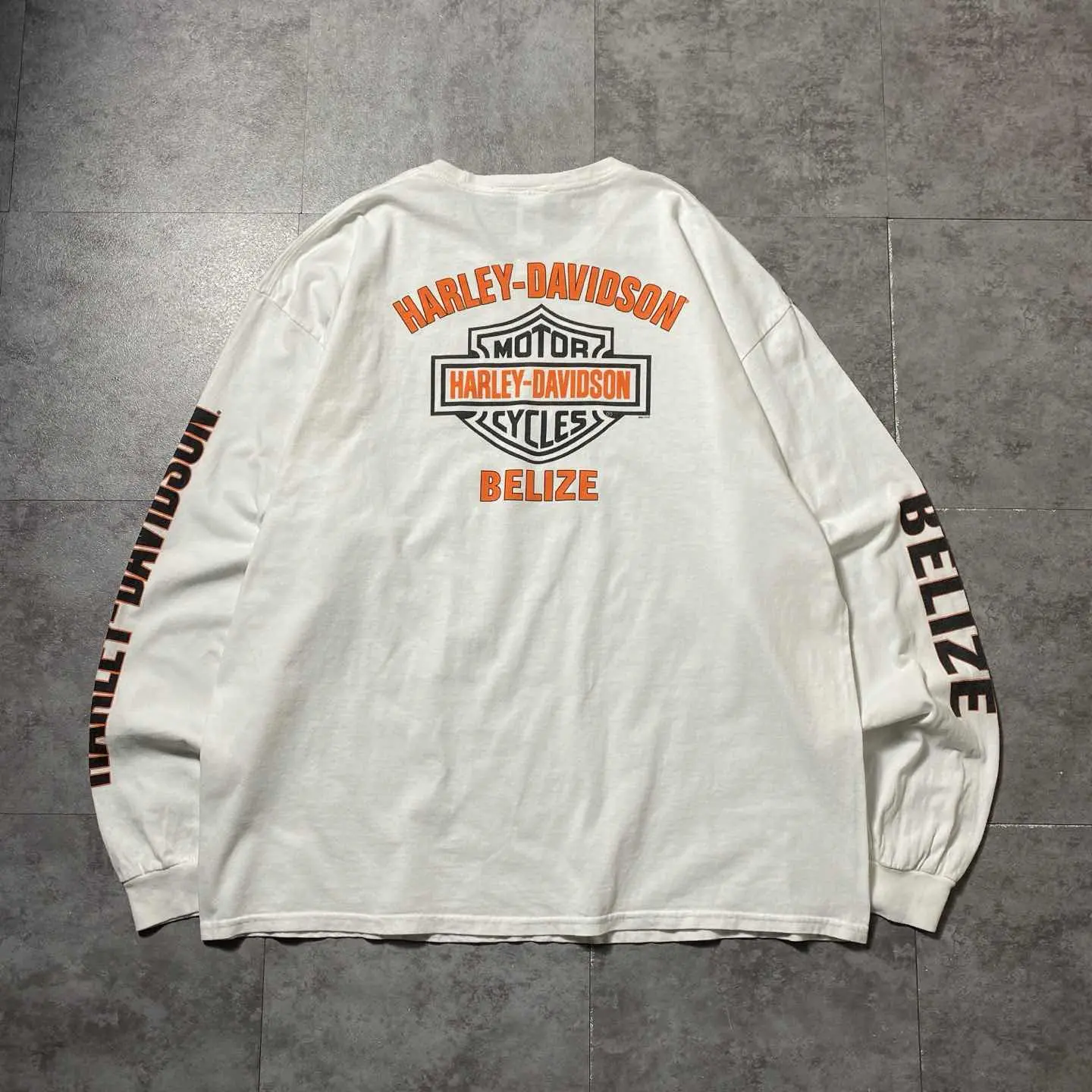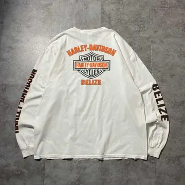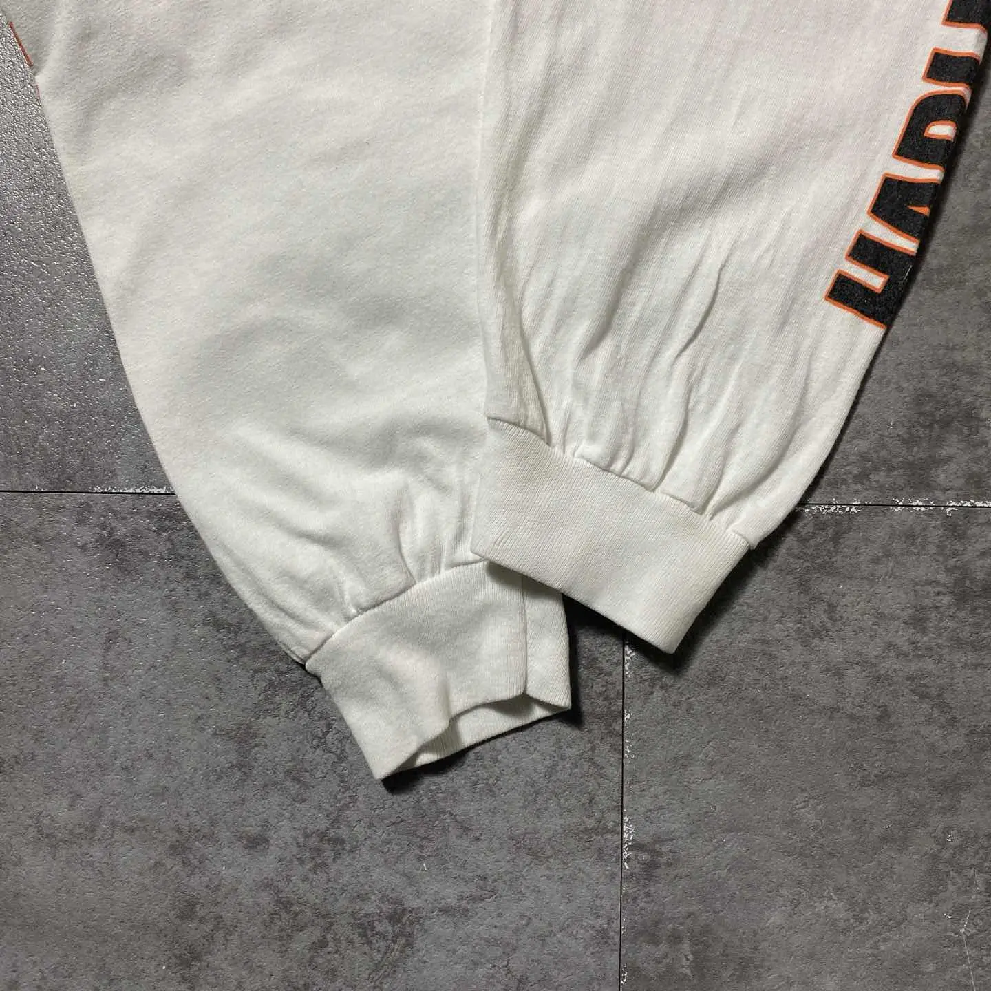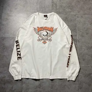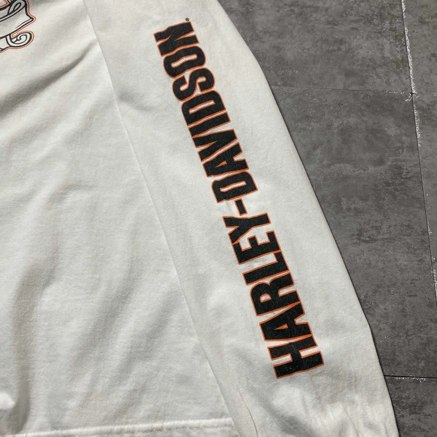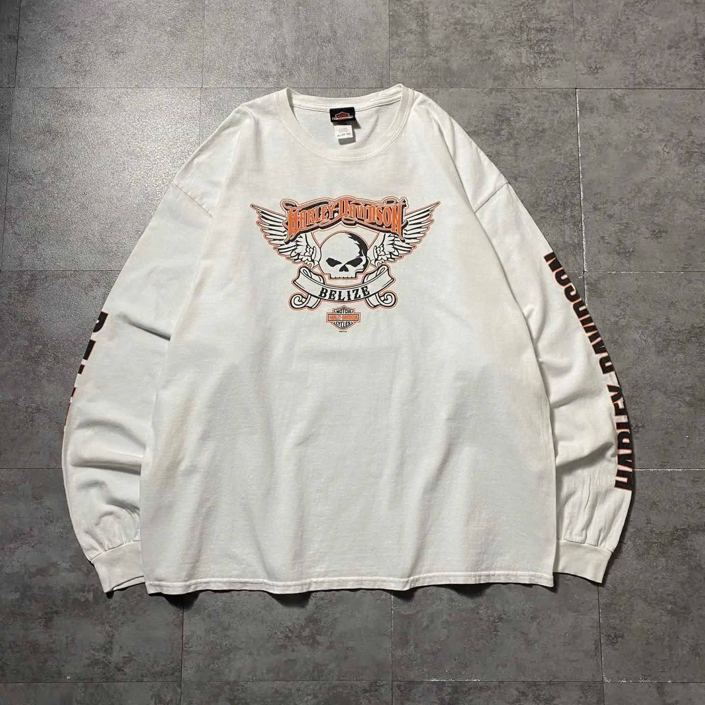 00s ハーレーダビッドソン スカル センター刺繍ロゴ 白 Tシャツ ロンT