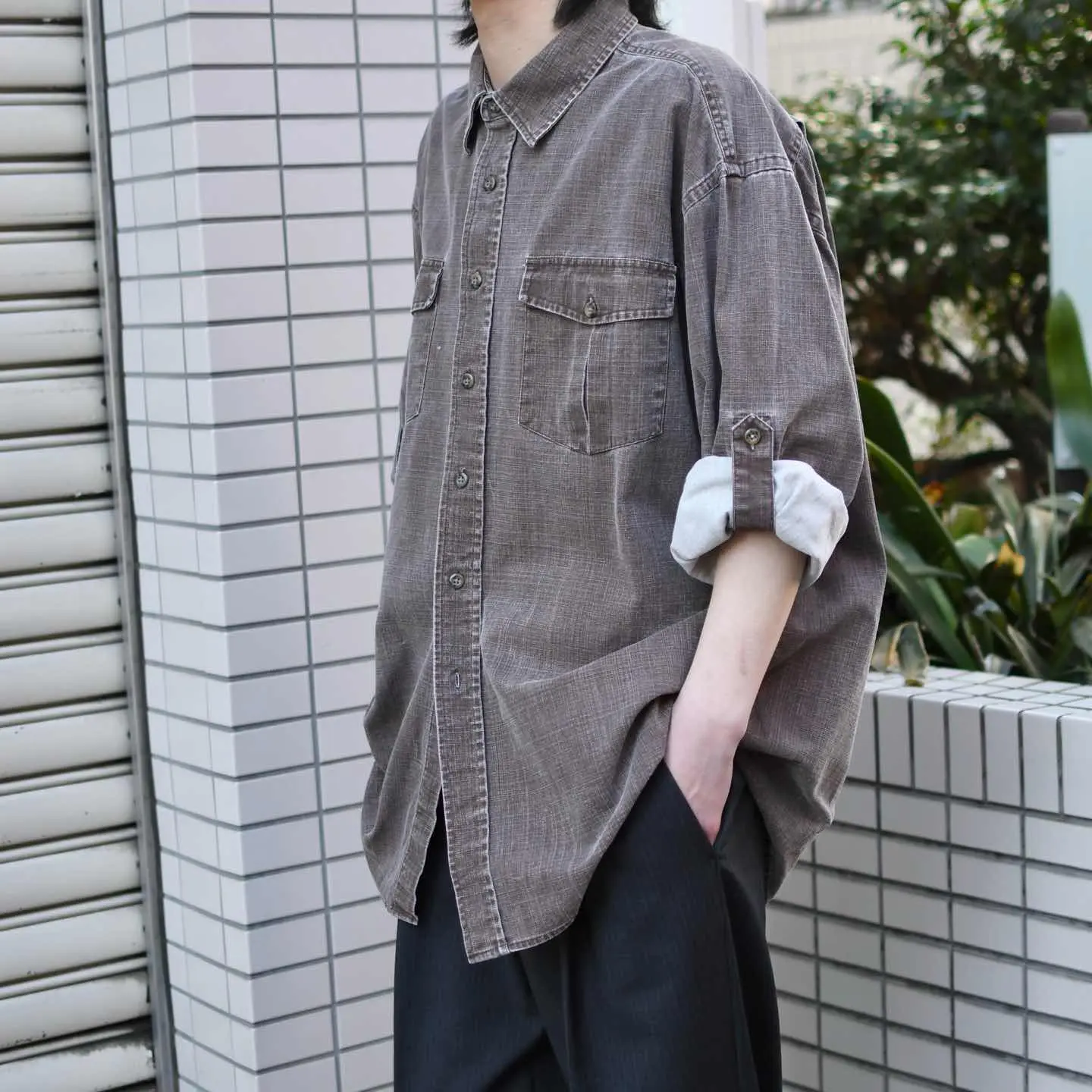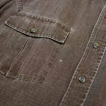 SIZE:XL-REG 着丈81cm 肩幅56cm 身幅68cm 袖丈61cm fabric/cotton 着用画像 173cm/58kg がしっとしたキャンバス地をシャツに落とし込み、 袖を捲り、留めることが出来るロールアップタブが 施されたシャツ。 程よく使い込まれたことで、生地から生まれる 雰囲気も昇華し、シャツとしてだけでなく Tシャツの上からガバッと羽織る ライトアウター代わりとしても活躍してくれるのでは ないでしょうか。 コーデが単調になりやすい薄手の季節、 シャツとして、羽織りとして、ハーフパンツと。 色々なコーデに落とし込んでみてはどうでしょう。 ※色味につきましては、物撮りを参考に お願いいたします。 ※フロントに軽度の汚れあり。 ※撮影状況により、実物と多少色が異なる場合が ございます。 ※古着を取り扱っているため、気づかない汚れや ほつれ等がある場合がございます。 ※サイズは着用感で選んでおり、 表記サイズは説明欄の最初に記載しております。 オーバーサイズ old vintage ヴィンテージ used 80's 90's アメリカ古着 ユーロ古着 POLO RALPH LAUREN Eddie Bauer OLD GAP LANDS' END ランズエンド LLBean エルエルビーン オールドギャップ エディーバウアー ラルフローレン ブルックスブラザーズ Brooks Brothers ワークシャツ 茶色 などがお好きな方 #vintage #オーバーサイズ #old #used #90s #80s #古着 #ヴィンテージ #LLBean #エルエルビーン #EddieBauer #エディーバウアー #oldgap #オールドギャップ #LANDSEND #NAUTICA #ノーティカ #ラルフローレン #POLORALPHLAUREN #BrooksBrothers #ワークシャツ #シャツ #長袖シャツ