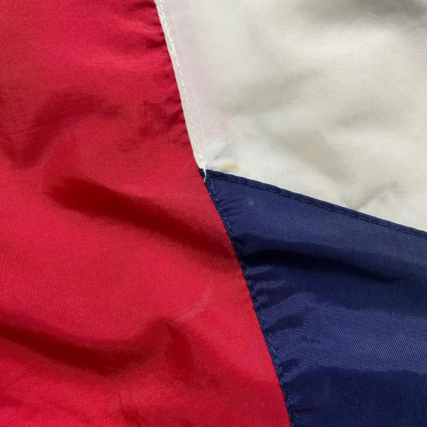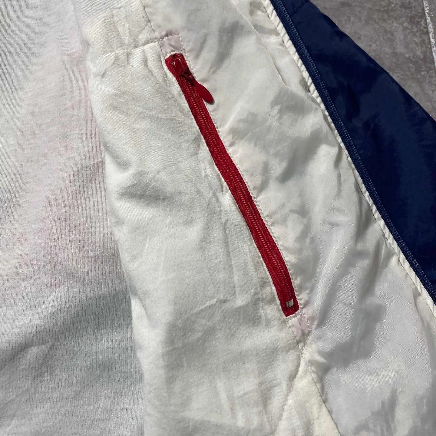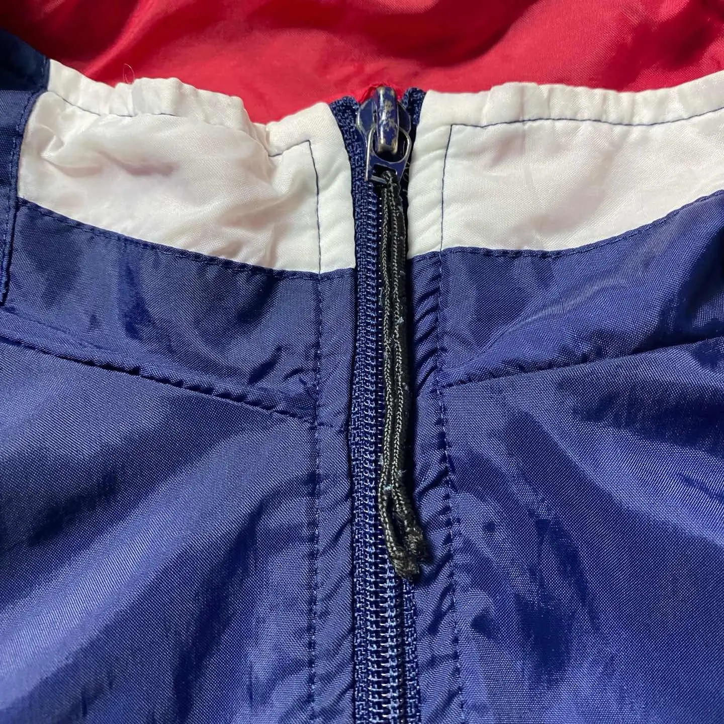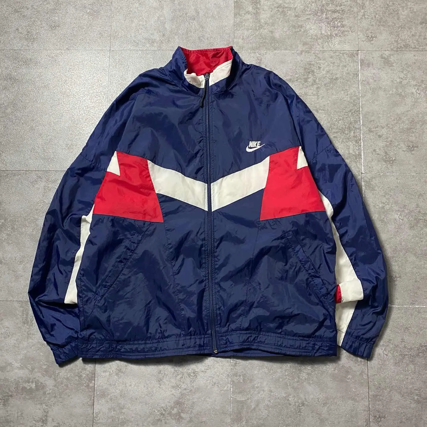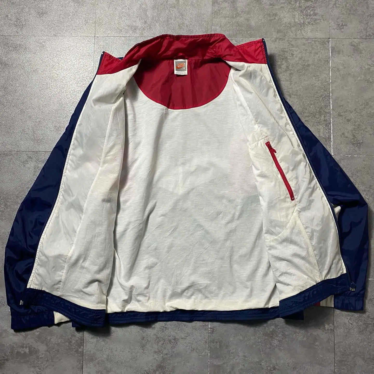 ○Size○ 表記→M ・着丈66 ・身幅65 ・肩幅76 ・袖丈51.5 (cm) ○Color○ ・ネイビー、レッド、ホワイト ○Material○ ・表面→100%ナイロン ・裏地→65%ポリエステル 35%コットン ○Condition○ ・フロント一部汚れ箇所あり ○Caution○ 当店で取り扱っている商材は全て『古着』となっております。 そのため、多少の状態難(ほつれ、傷、汚れ、リブの伸び、使用感、擦れ、色あせ、etc)がある場合がございます。 新品同様の完璧なお品物をお求めの方は当店でのお買い物を控えて頂きますよう宜しくお願いします。 また、購入された商品に関しましては、購入日時から起算して『72時間以内に』発送手続きの方を取らせて頂きます。 お急ぎの場合は購入前に当店オンラインストアの方にお問い合わせ頂きますよう宜しくお願いします。 26/695