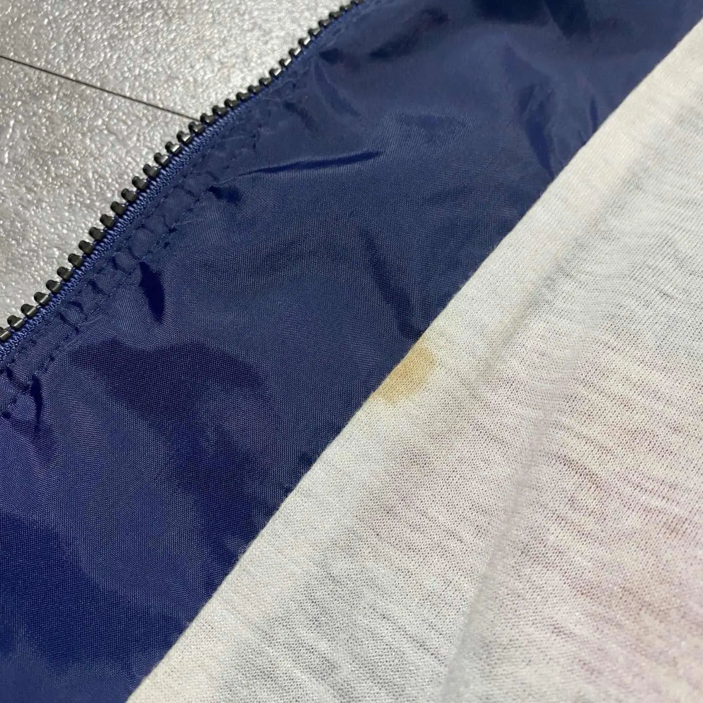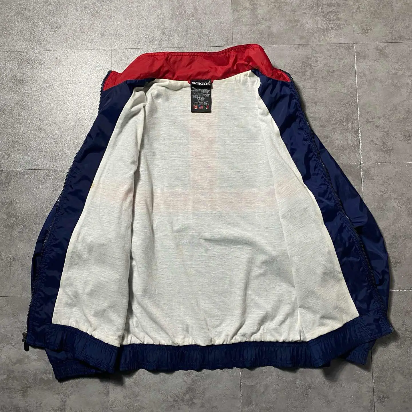 ○Size○ 表記→US.L ・着丈70 ・身幅70 ・袖丈85(ラグランスリーブ) (cm) ○Color○ ・ネイビー、レッド、ホワイト ○Material○ ・表面→100%ナイロン ・裏地→65%ポリエステル 35%コットン ○Condition○ ・裏地一部汚れ箇所あり ○Caution○ 当店で取り扱っている商材は全て『古着』となっております。 そのため、多少の状態難(ほつれ、傷、汚れ、リブの伸び、使用感、擦れ、色あせ、etc)がある場合がございます。 新品同様の完璧なお品物をお求めの方は当店でのお買い物を控えて頂きますよう宜しくお願いします。 また、購入された商品に関しましては、購入日時から起算して『72時間以内に』発送手続きの方を取らせて頂きます。 お急ぎの場合は購入前に当店オンラインストアの方にお問い合わせ頂きますよう宜しくお願いします。 26/681