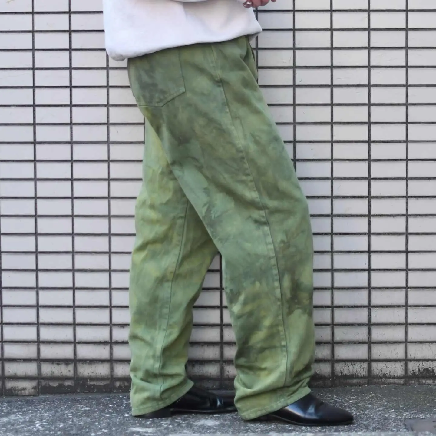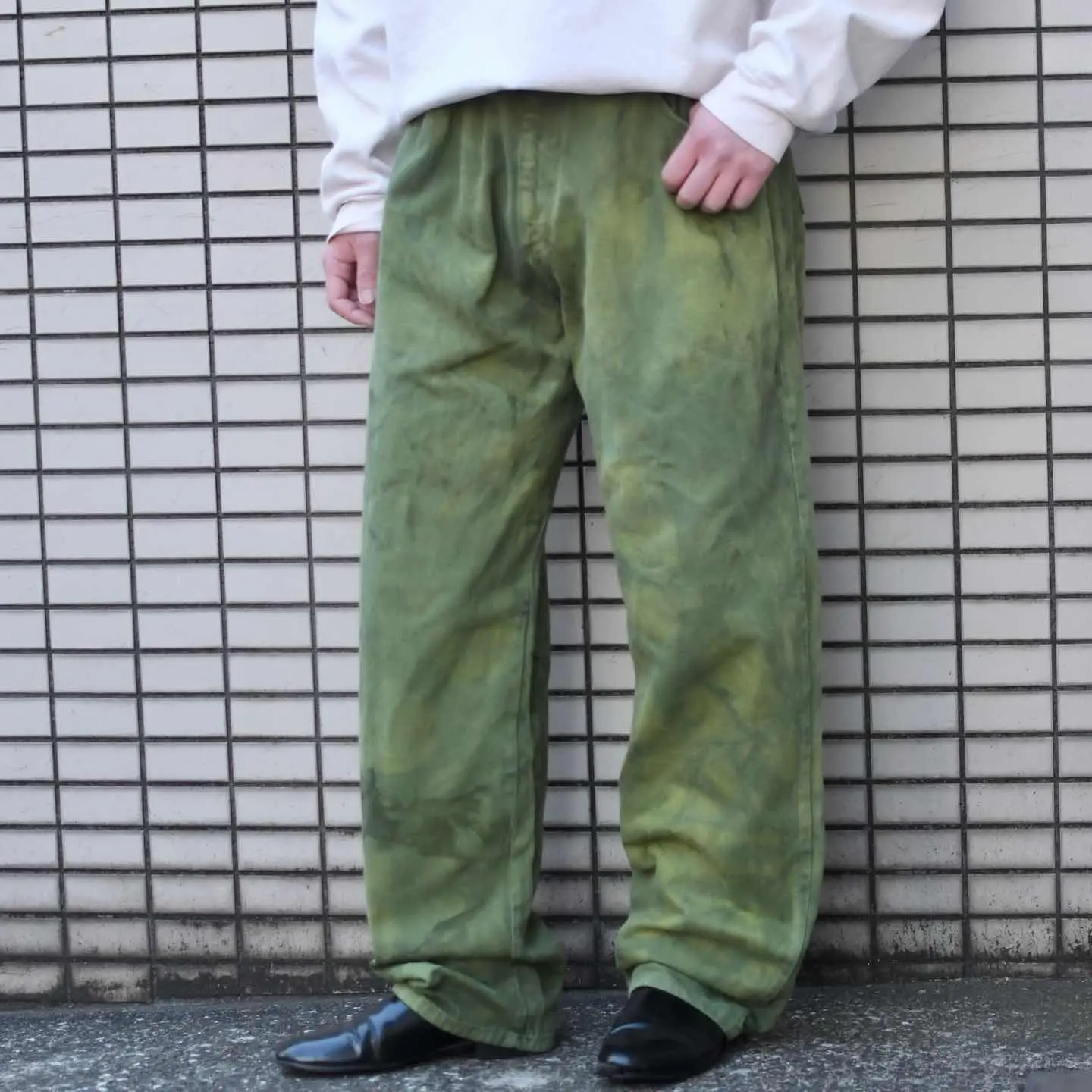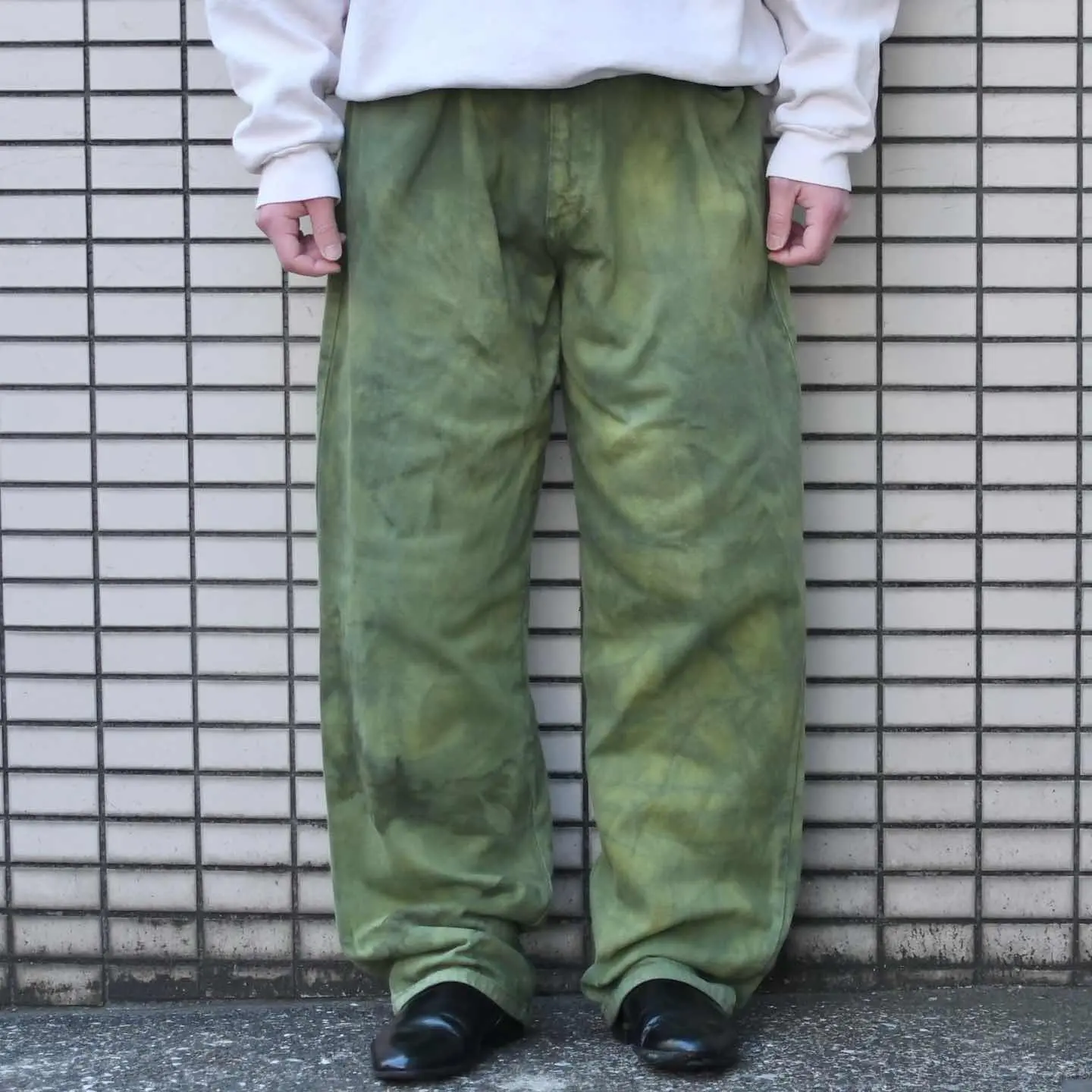 古着 後染め デニムパンツ デニム ワイドパンツ 緑 グリーン