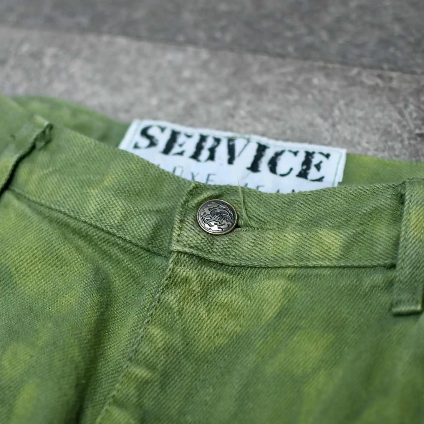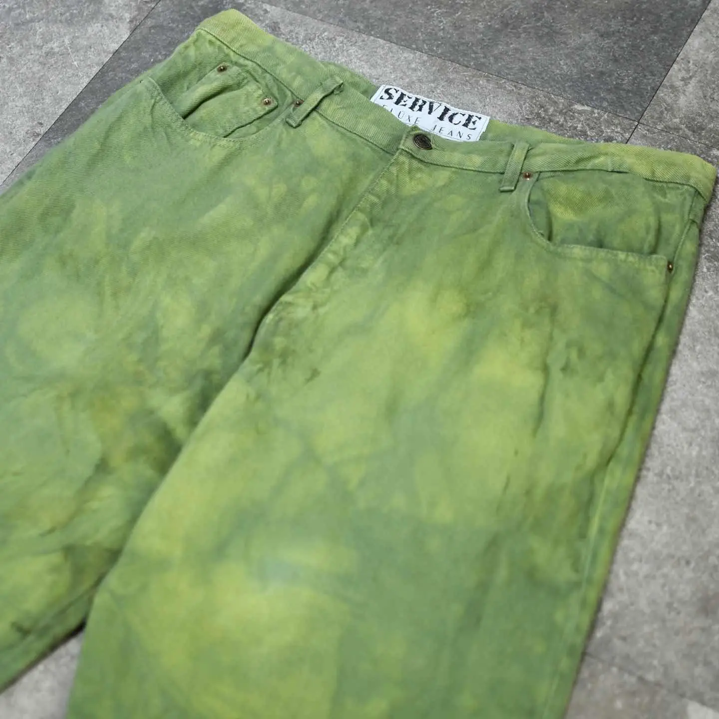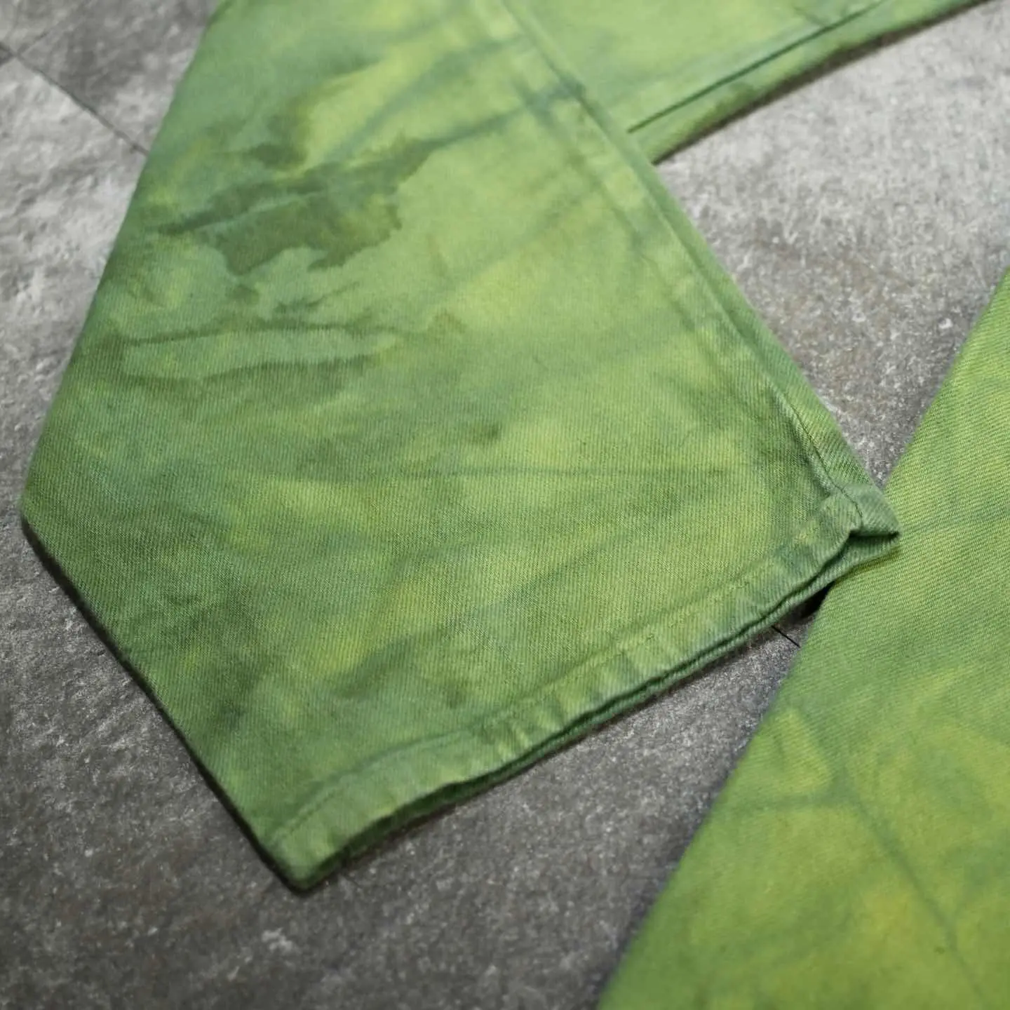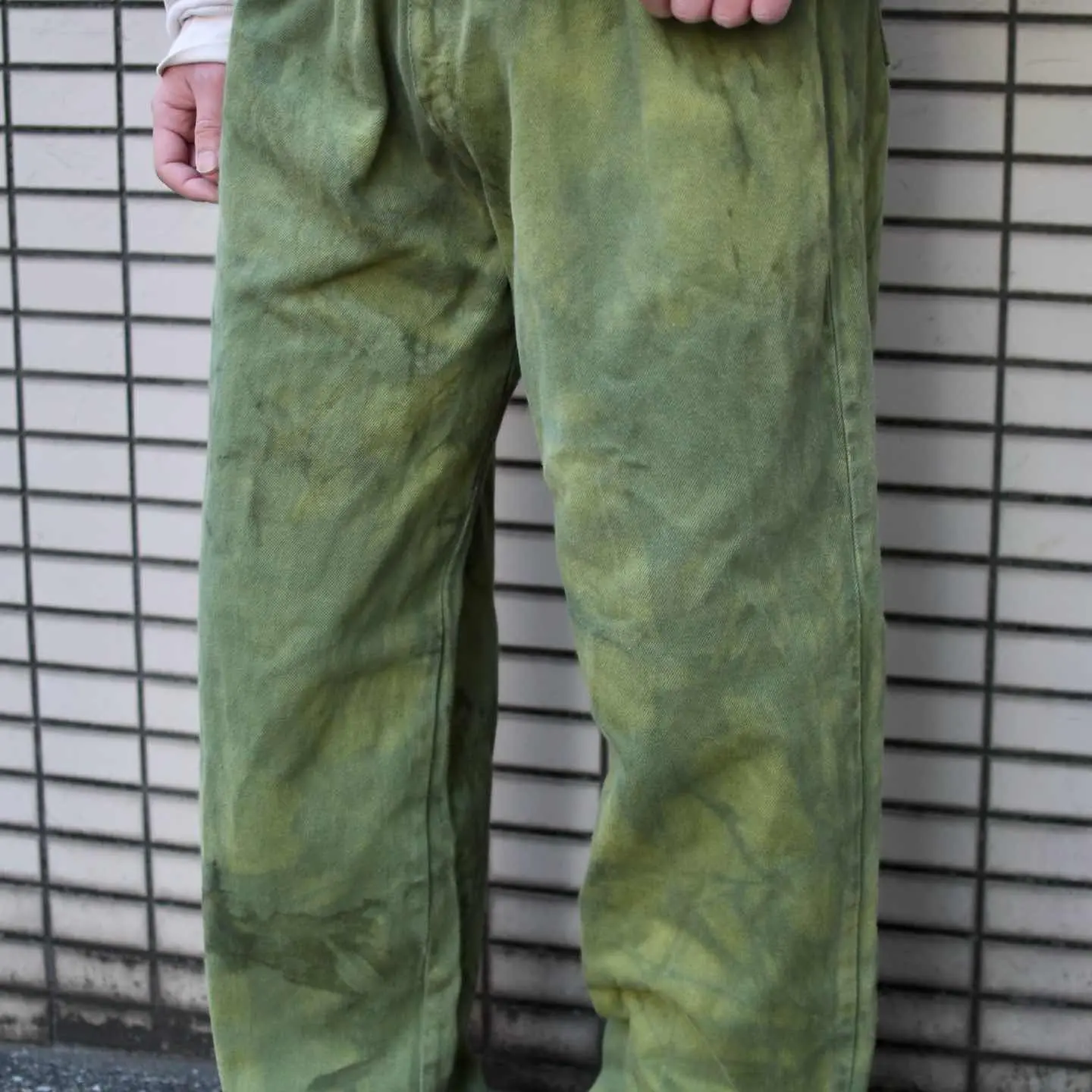 古着 後染め デニムパンツ デニム ワイドパンツ 緑 グリーン