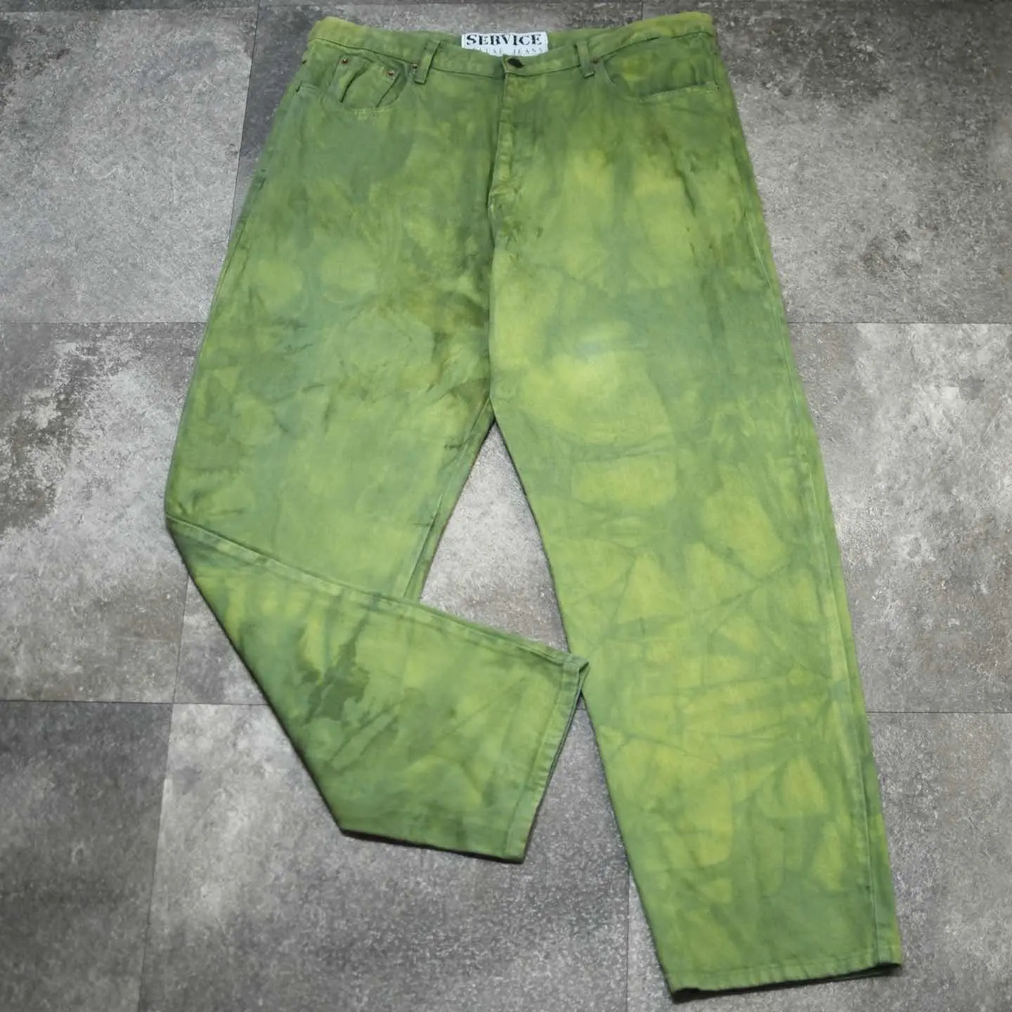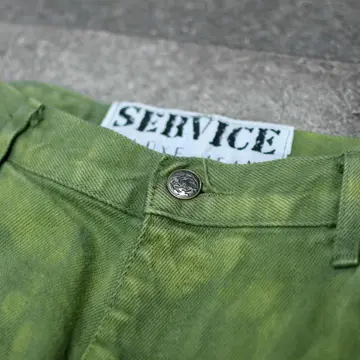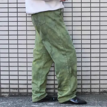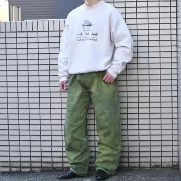 SIZE:36 ウエスト98cm 総丈115cm 股下83cm わたり40cm 裾幅23cm fabric/cotton 着用画像 177cm/68kg アメリカのデニムブランド”Service Deluxe Jeans”のデニムを後染めした一本。 あえてムラが生まれるように染めたのでしょう。 そのおかげで、より雰囲気を纏う個体へと 昇華しています。 さらにストリート寄りのブランドならではの 図太いシルエット◎ 長めのレングスですが、ロールアップでも 裾に溜めても様になるアイテムです。 薄手の季節になる程、コーデに物足りなさを 感じがちですが、こんなパンツが手元にあれば そんな悩みも無くなるのではないでしょうか。 ※裾上げ等のレングス直しにつきましては、 購入前に、必ずご連絡お願い致します。 ※撮影状況により、実物と多少色が異なる 場合がございます。 ※古着を取り扱っているため、気づかない汚れや ほつれがある場合がございます。 ※サイズは着用感で選んでおり、 表記サイズは説明欄の最初に記載しております。 old vintage ヴィンテージ used 80's 90's アメリカ古着 ユーロ古着 POLO RALPH LAUREN Eddie Bauer OLD GAP LANDS' END ランズエンド LLBean エルエルビーン オールドギャップ エディーバウアー ラルフローレン ブルックスブラザーズ Brooks Brothers などがお好きな方 #vintage #old #used #90s #80s #古着 #ヴィンテージ #LLBean #エルエルビーン #EddieBauer #エディーバウアー #oldgap #オールドギャップ #LANDSEND #ランズエンド #NAUTICA #ラルフローレン #POLORALPHLAUREN #BrooksBrothers #デニムパンツ #デニム #ワイドパンツ #後染め