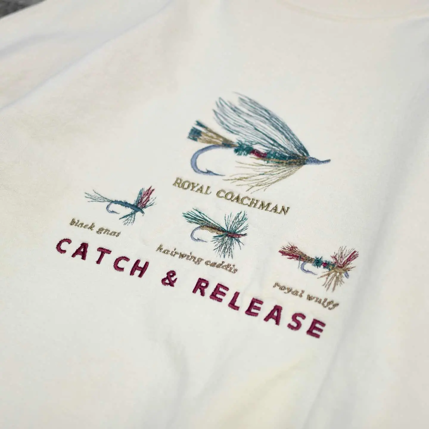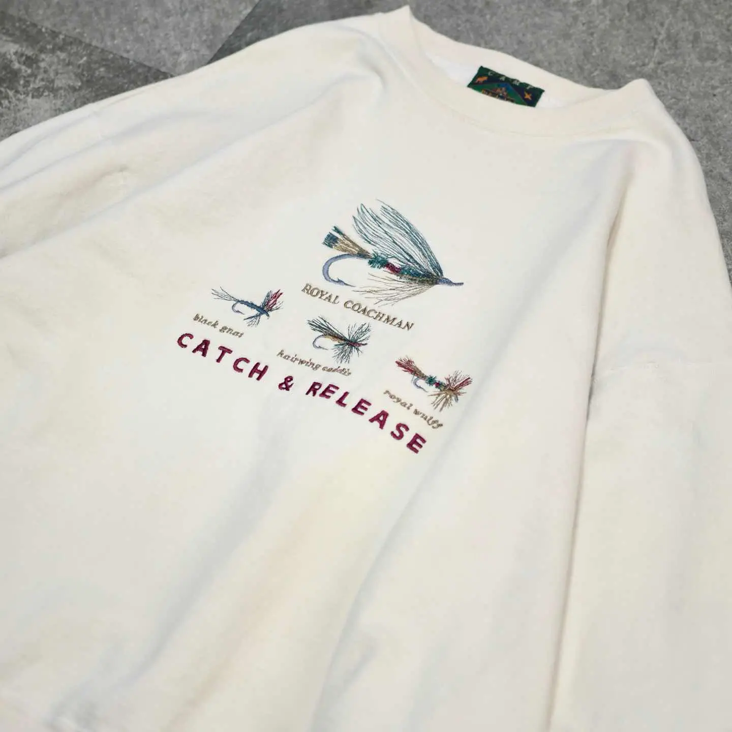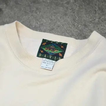 古着 毛鉤 刺繍 デザインスウェット アイボリー スウェット トレーナー