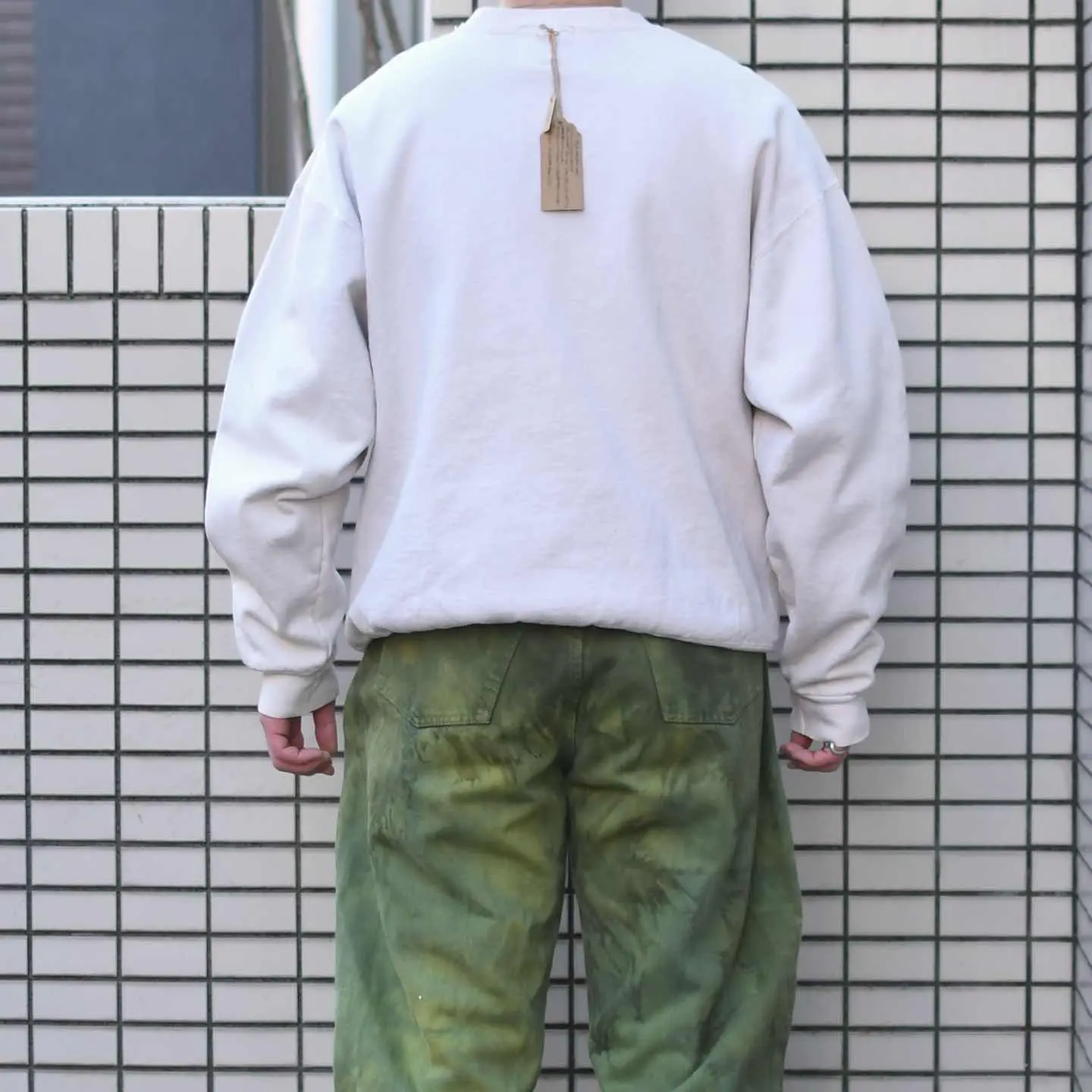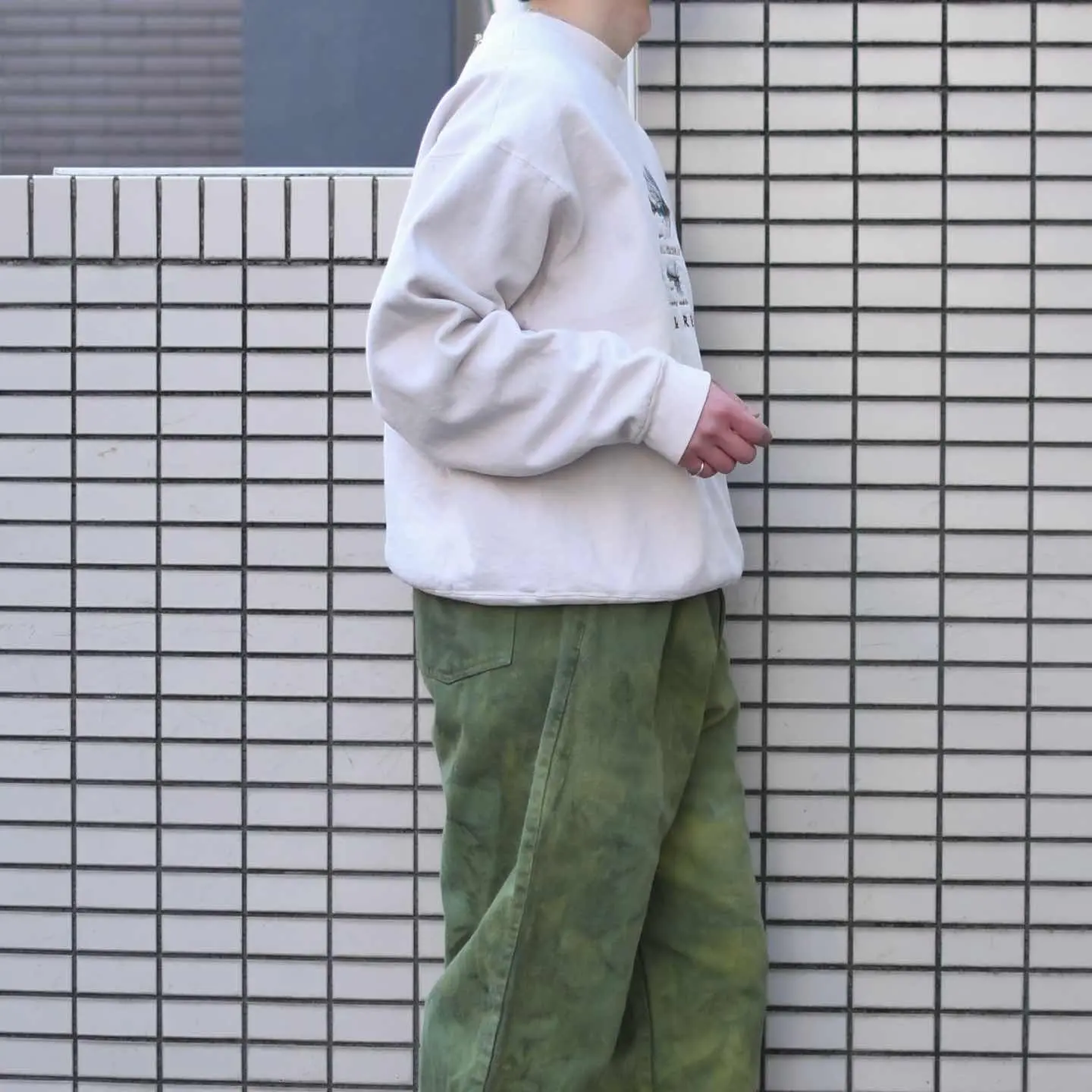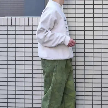 古着 後染め デニムパンツ デニム ワイドパンツ 緑 グリーン